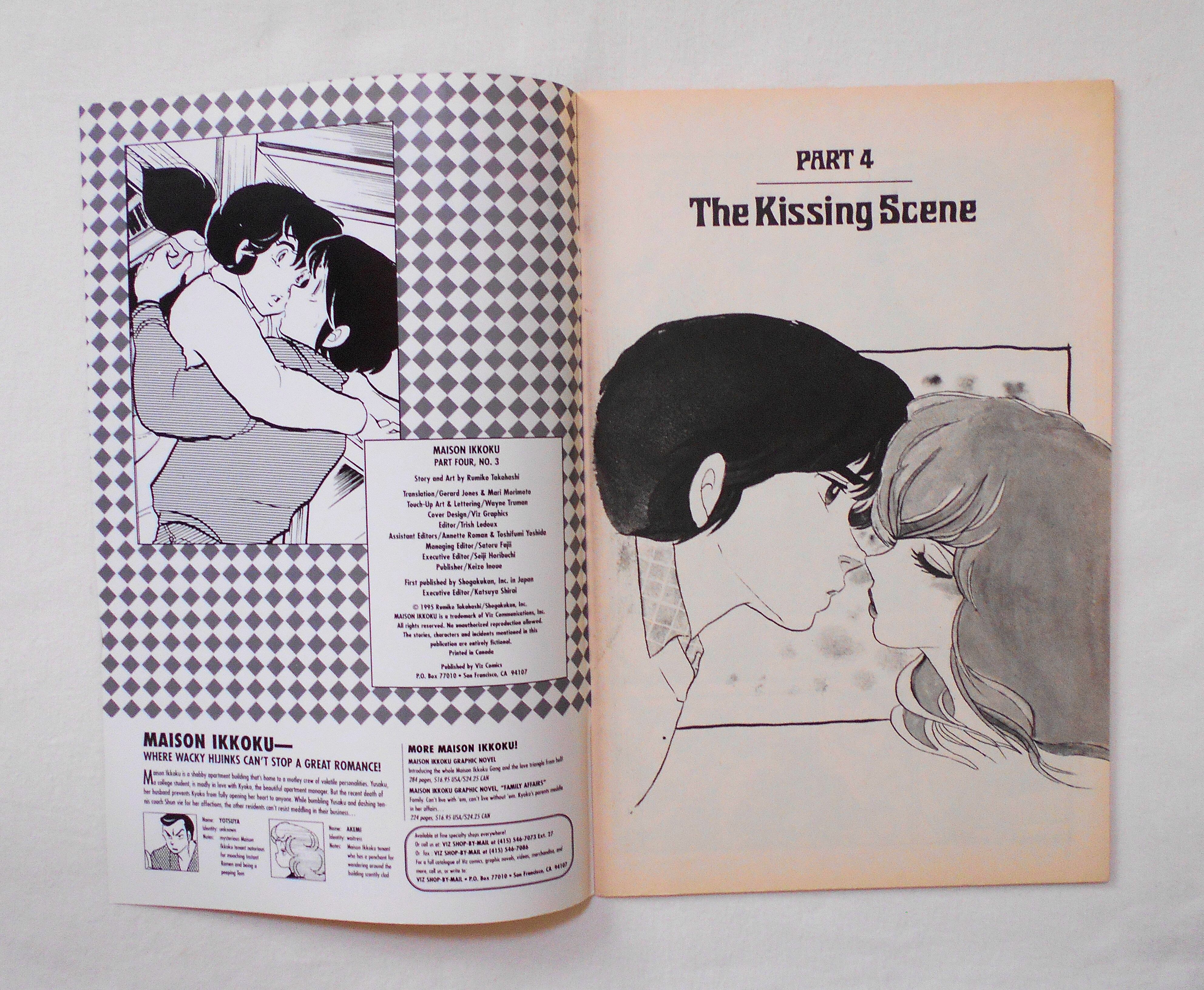 【MAISON IKKOKU めぞん一刻】 PART FOUR, NO.3◆中古アメリカン・コミック。英文表記の洋書となります。◆高橋留美子作品『めぞん一刻』のアメリカ版コミック。翻訳版アメコミにありがちなカラーリングは施されず、白黒のまま、文字は全て英文に変更され、左右の開きが逆になっています。収録タイトル:PART 4: THE KISSING SCENE◆32ページ 白黒 大きさ約26×17センチ◆COPYRIGHT 1995 RUMIKO TAKAHASHI (高橋留美子)/SHOGAKUKAN, INC.(小学館) ◆VIZ COMICS