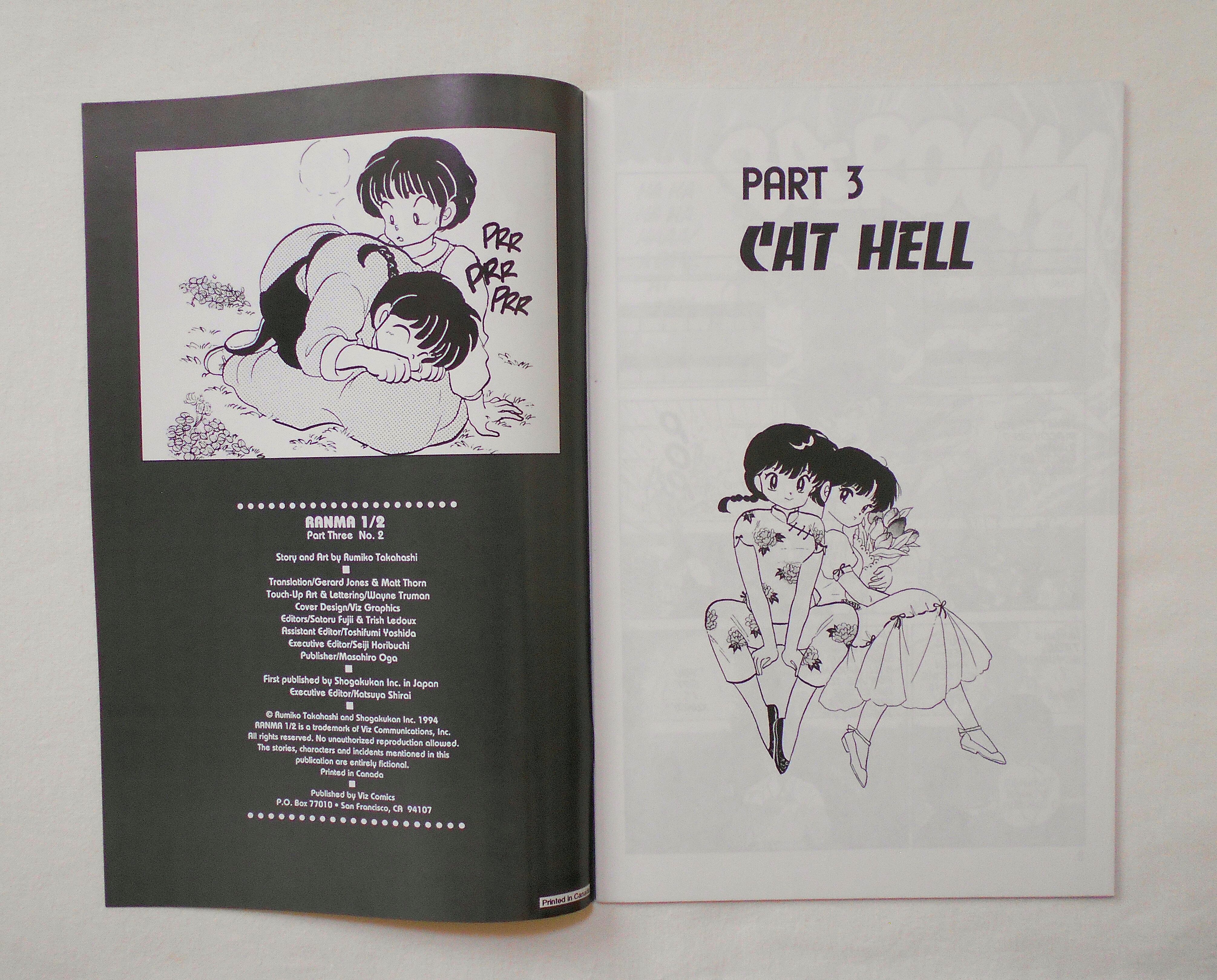 【RANMA 1/2 らんま1/2】 PART THREE, NO.2◆中古アメリカン・コミック。英文表記の洋書となります。◆高橋留美子作品『らんま1/2』のアメリカ版コミック。翻訳版アメコミにありがちなカラーリングは施されず、白黒のまま、文字は全て英文に変更され、左右の開きが逆になっています。収録タイトル:PART 3: CAT HELL PART 4: CAT-FU◆32ページ 白黒 大きさ約26×17センチ◆COPYRIGHT RUMIKO TAKAHASHI (高橋留美子)/SHOGAKUKAN, INC.(小学館) 1994◆VIZ COMICS