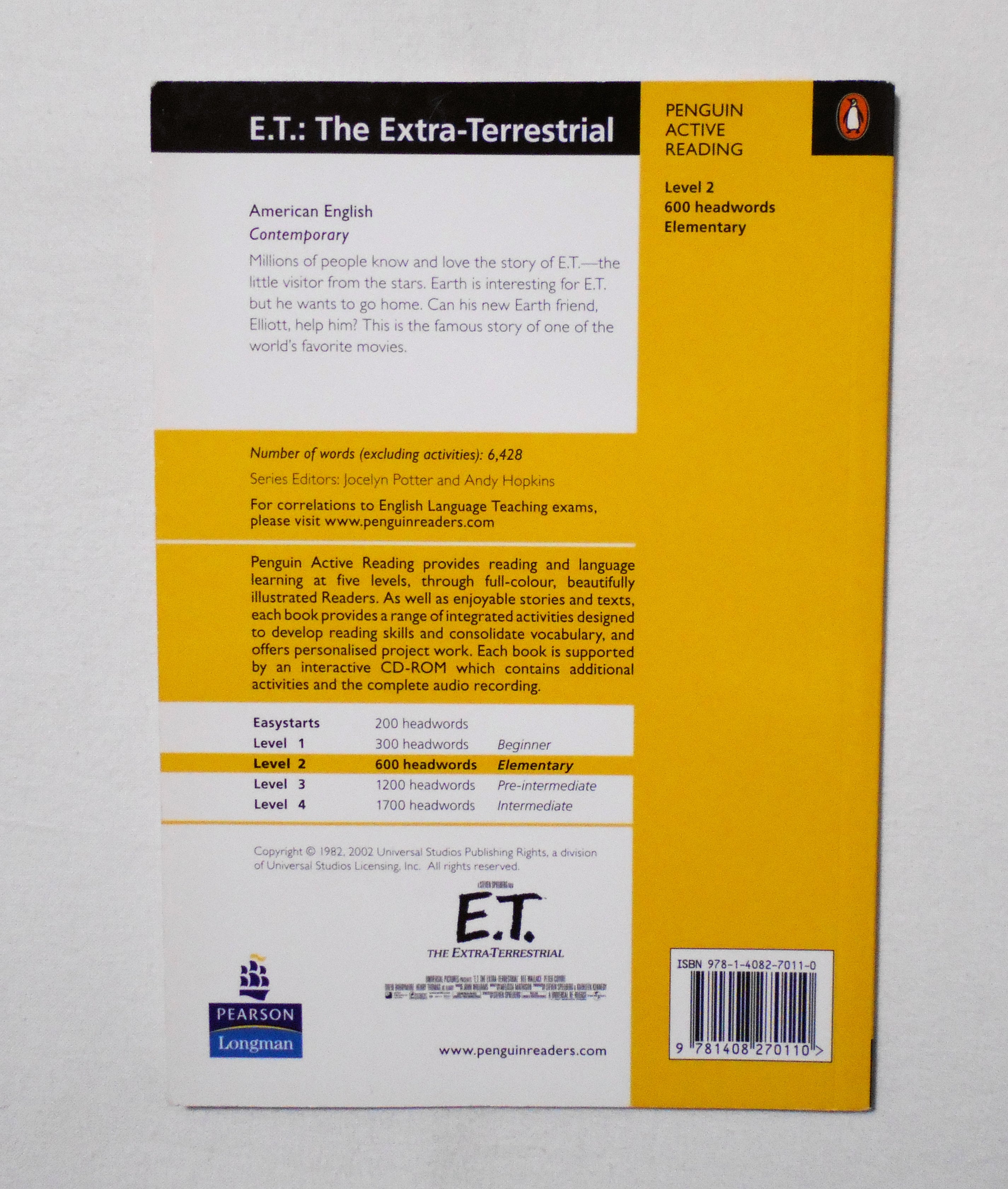 【E.T.: THE EXTRE-TERRESTRIAL PENGUIN ACTIVE READING LEVEL 2】 ◆英文表記の洋書となります。◆ペーパーバック ページ数表記60ページ カラー 大きさ約21×15センチ◆FIRST PUBLISHED in USA by BERKELEY BOOKS 1982, FIRST PENGUIN READERS EDITION PUBLISHED 2002, THIS EDITION PUBLISHED 2009◆COPYRIGHT 1982, 2002 UNIVERSAL STUDIOS