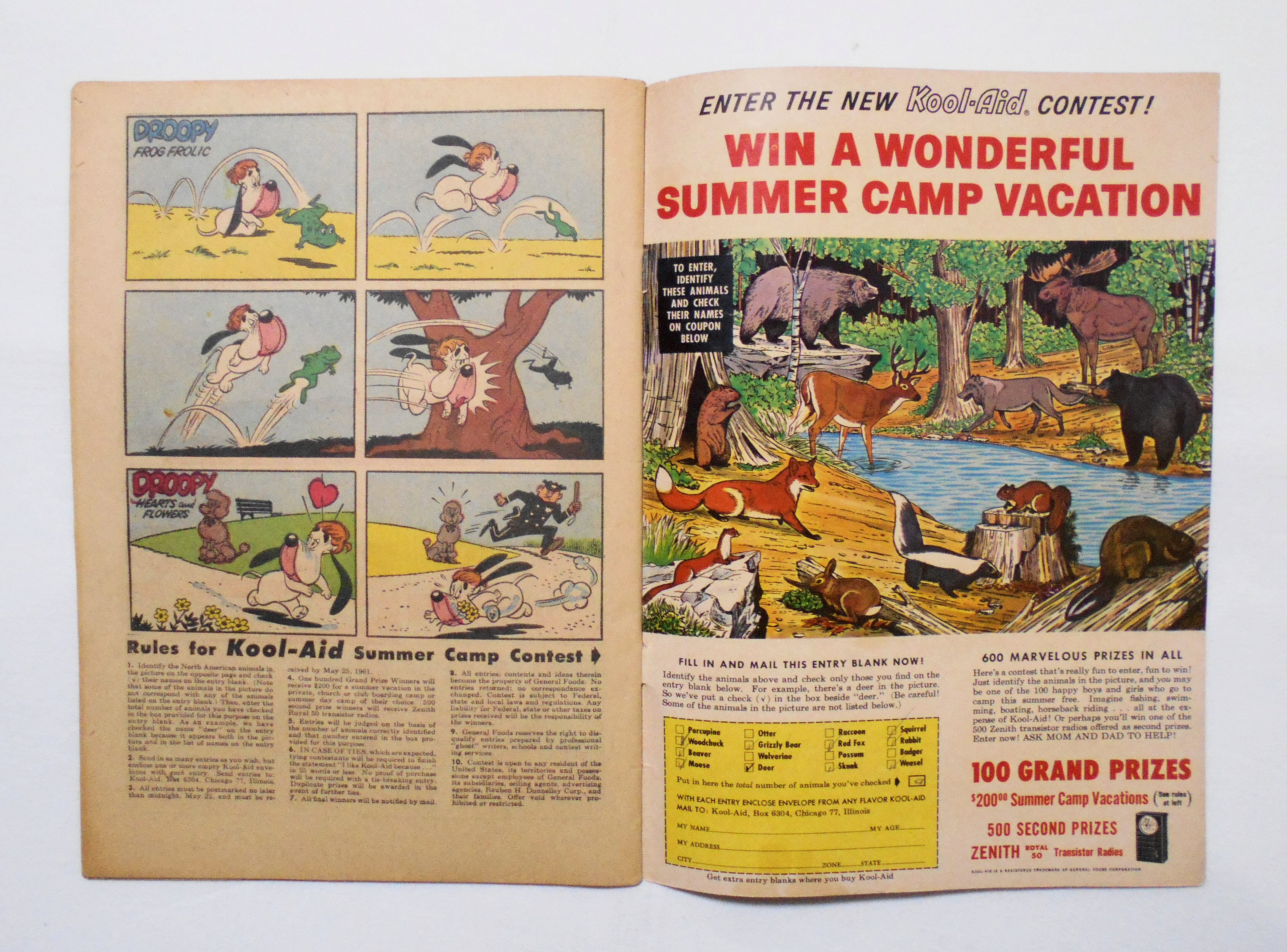 多少の擦れやシワ、黄ばみ、角や端の傷みや折れ等があり、表紙の傷みが多少目立ち、経年に伴う使用感はやや強めの印象ですが、1960年代の輸入中古コミックですので、その点を考慮頂ければと思います。中は多少黄ばんでいますが、目立った汚れやシミ等はなく、おおむねきれいな状態ですので、読むのに支障はございません。新品同様の美品をお求めの方や、古書にご理解を頂けない方にお薦めは出来ません。