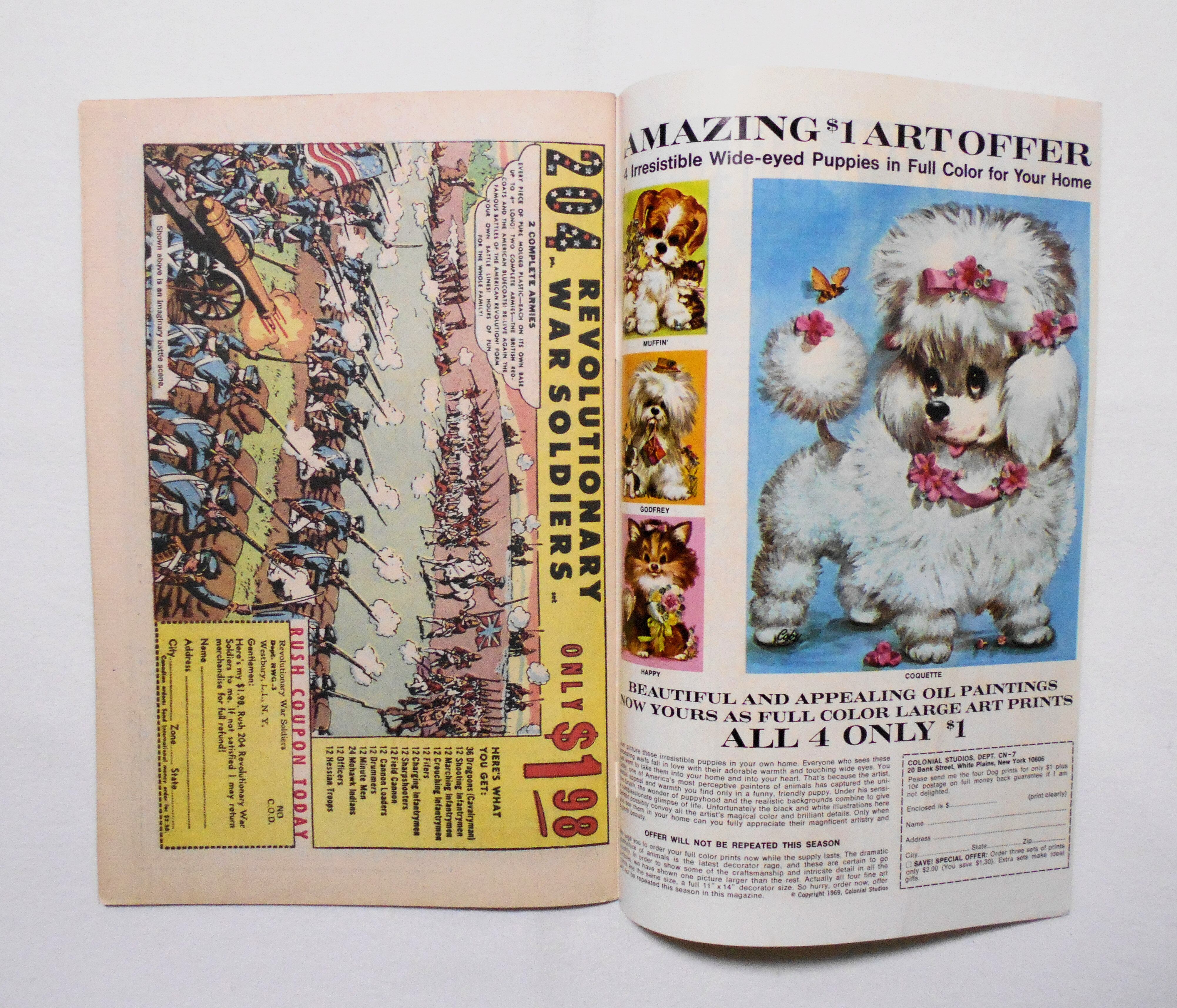 多少の擦れやシワ、黄ばみ、角や端の傷みや折れ等があり、経年に伴う使用感は否めませんが、1960年代の輸入中古コミックですので、その点を考慮頂ければと思います。中は目立った汚れやシミ等はなく、おおむねきれいな状態ですので、読むのに支障はございません。新品同様の美品をお求めの方や、中古品にご理解が頂けない方にはお薦め出来ません。