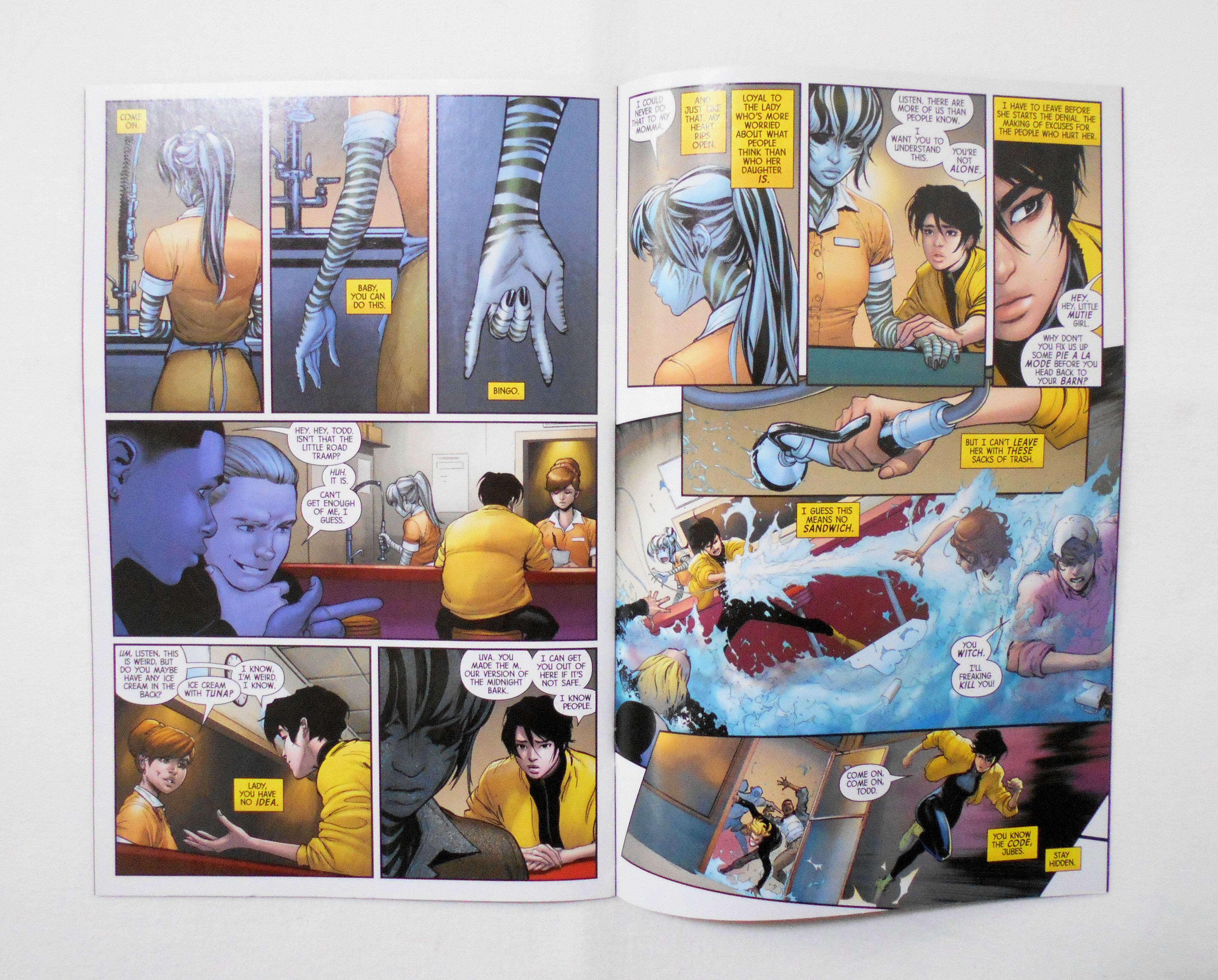 背から内側へ約1センチ縦方向に軽く折れ目がついています。他、多少の擦れやシワ、角や端の傷みや折れ等があり、使用感は否めませんが、目立った汚れやシミ等はなく、普通程度~おおむねきれいな状態だと思います。ただ一度人の手に渡った輸入中古コミックですので、その点を考慮頂ければと思います。新品同様の美品をお求めの方や、中古品にご理解が頂けない方にはお薦め出来ません。