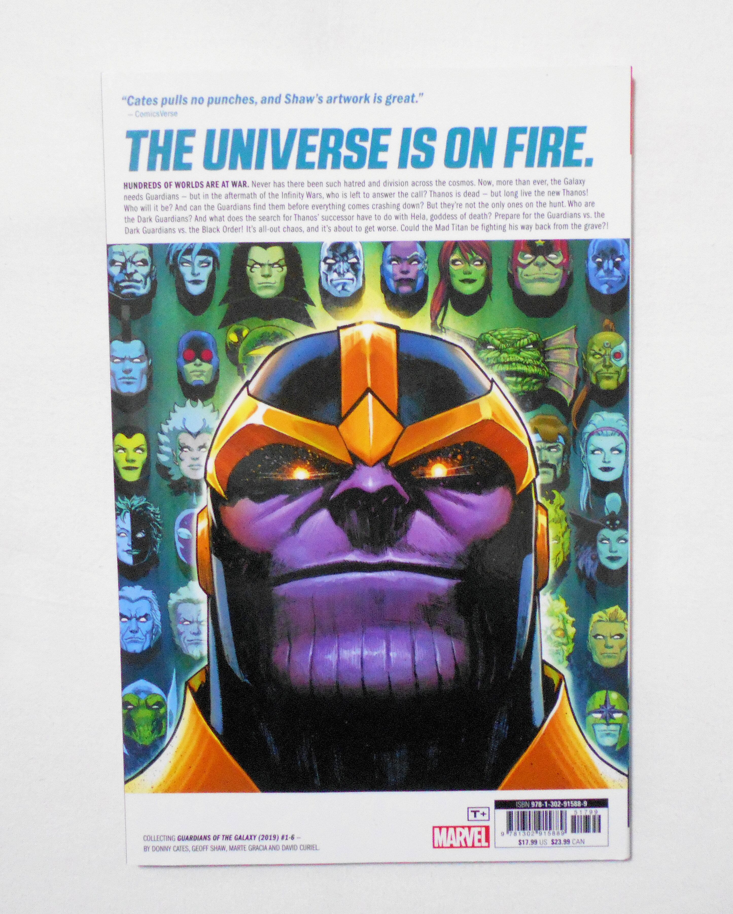 【GUARDIANS OF THE GALAXY VOL.1: THE FINAL GAUNTLET】FIRST PRINTING 2019◆ORIGINALLY PUBLISHED in magazine form as GUARDIANS OF THE GALAXY #1-6◆中古アメリカン・コミック。英文表記の洋書となります。◆ページ数表記なし カラー 大きさ約26×17センチ◆MARVEL WORLDWIDE, INC.◆ISBN 978-1-302-91588-9