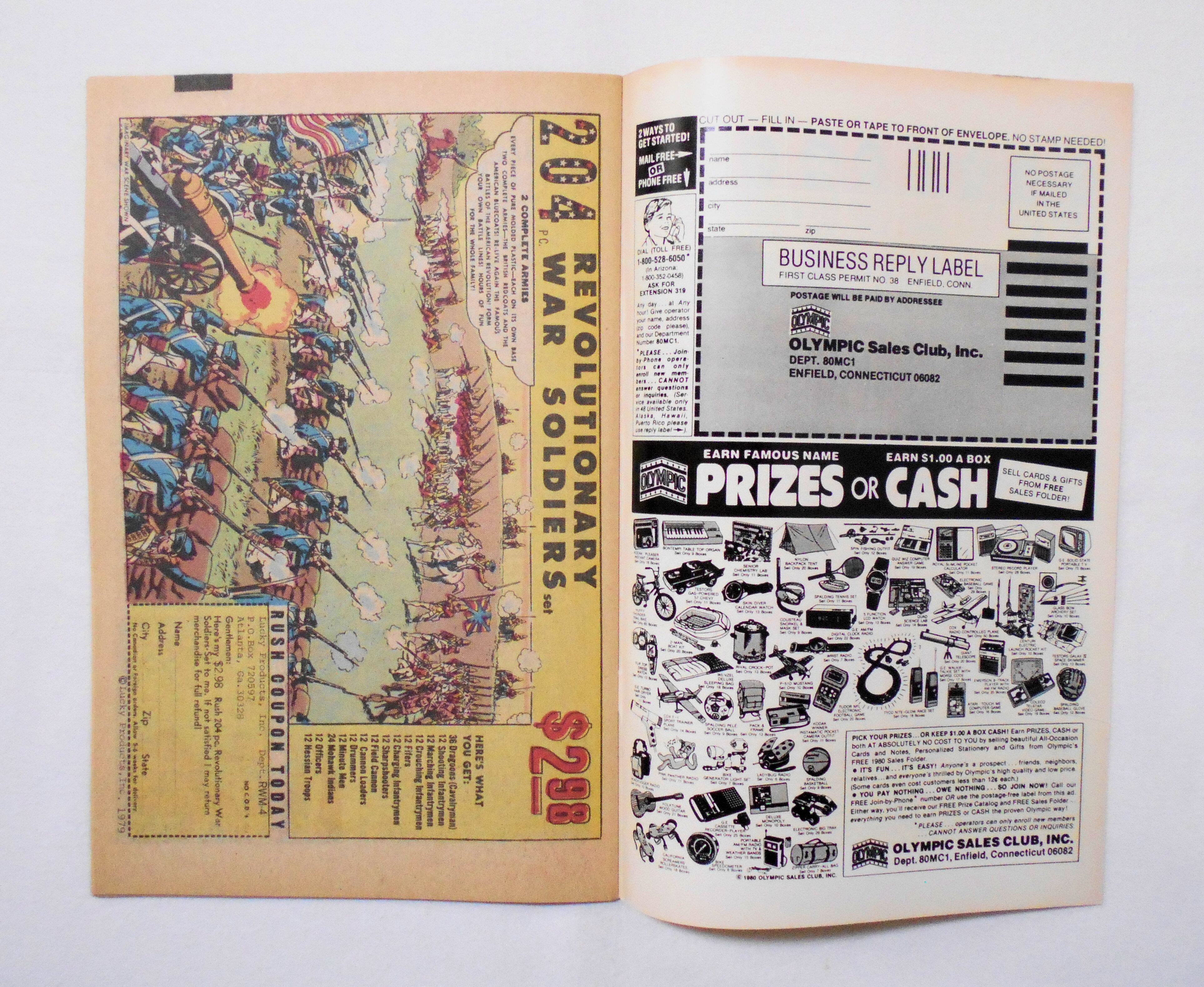 背から内側へ約1センチ縦方向に軽く折れ目が付いています(多少反っている程度です)。他、多少の擦れやシワ、黄ばみ、角や端の傷み等があり、経年に伴う使用感は否めませんが、目立った汚れやシミ等はなく、1980年代の輸入中古コミックですので、その点を考慮頂ければ、普通程度~おおむねきれいな状態だと思います。新品同様の美品をお求めの方や、中古品にご理解が頂けない方にはお薦め出来ません。