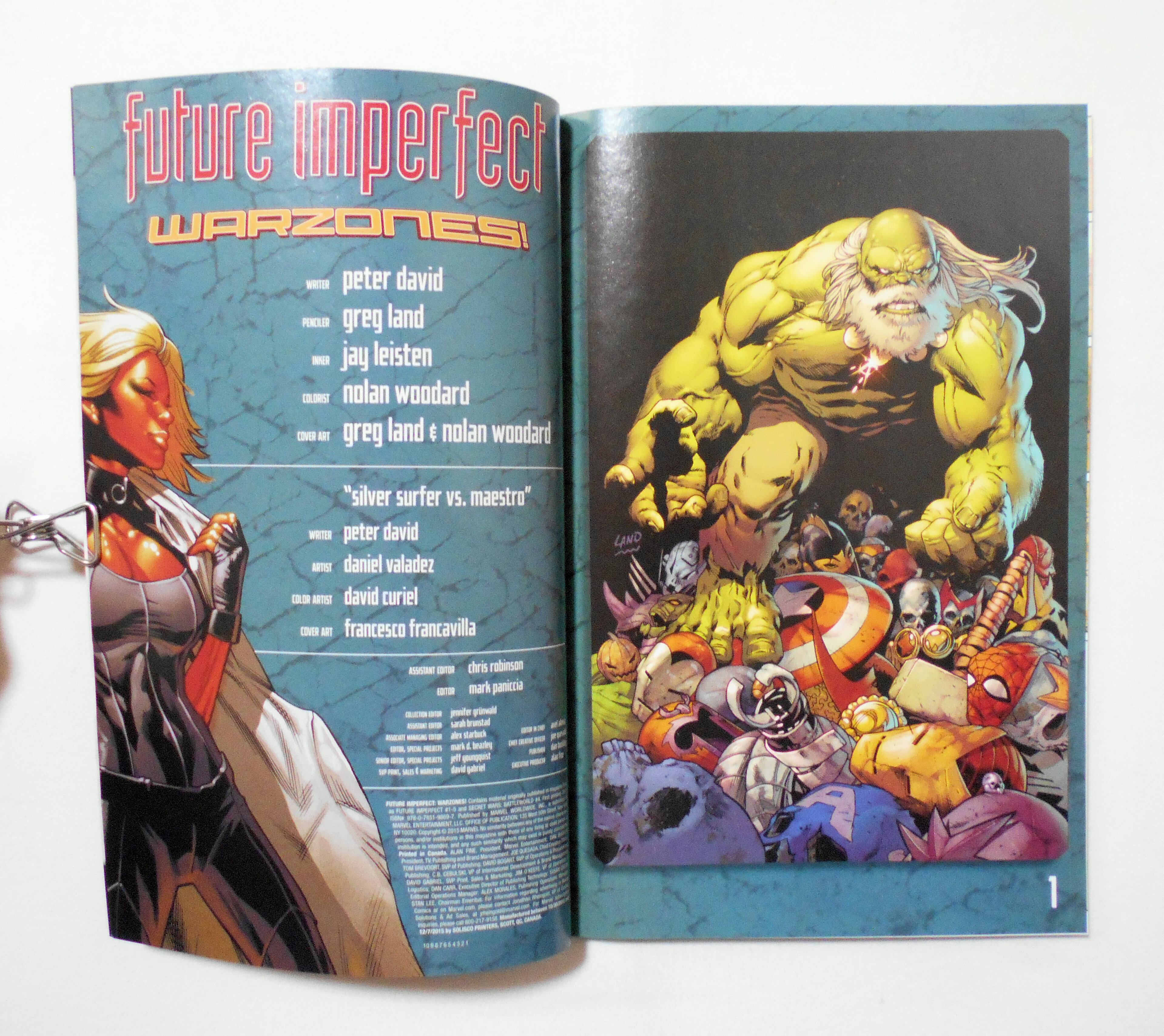 【FUTURE IMPERFECT: WARZONES!】 TPB FIRST PRINTING 2015◆ORIGINALLY PUBLISHED in magazine form as FUTURE IMPERFECT #1-5 & SECRET WARS: BATTLEWORLD #4◆中古アメリカン・コミック。英文表記の洋書となります。◆ページ数表記なし フルカラー 大きさ約26×17センチ◆MARVEL WORLDWIDE, INC.◆ISBN 978-0-7851-9869-7