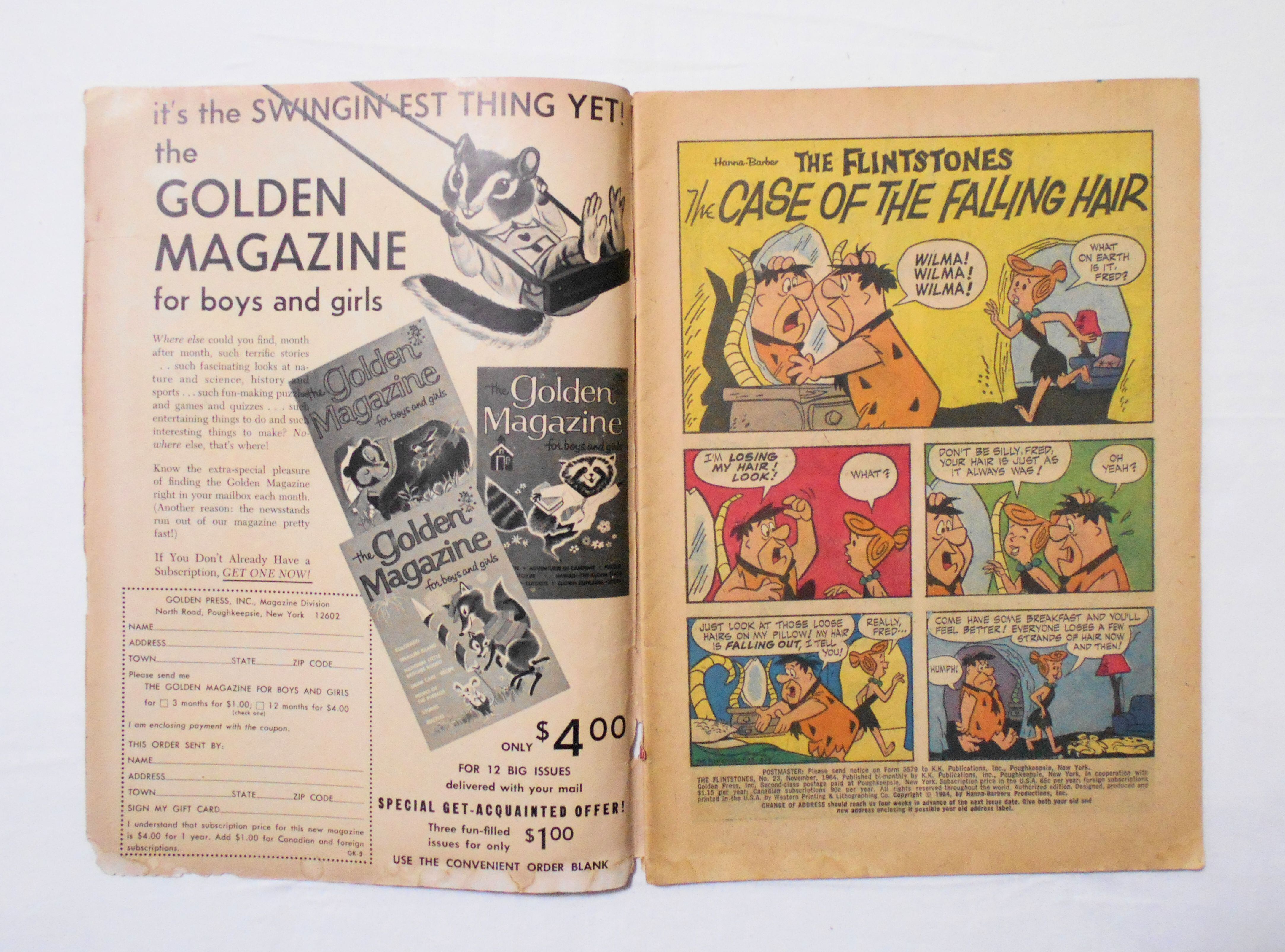 【HANNA BARBERA THE FLINTSTONES with PEBBLES & BAMM-BAMM】 NO.23 NOV. 1964◆中古アメリカン・コミック。英文表記の洋書となります。◆32ページ フルカラー 大きさ約26×18センチ◆K.K.PUBLICATIONS, INC.◆WESTERN PRINTING & LITHOGRAPHING CO.◆COPYRIGHT 1964 by HANNA-BARBERA PRODUCTIONS, INC.