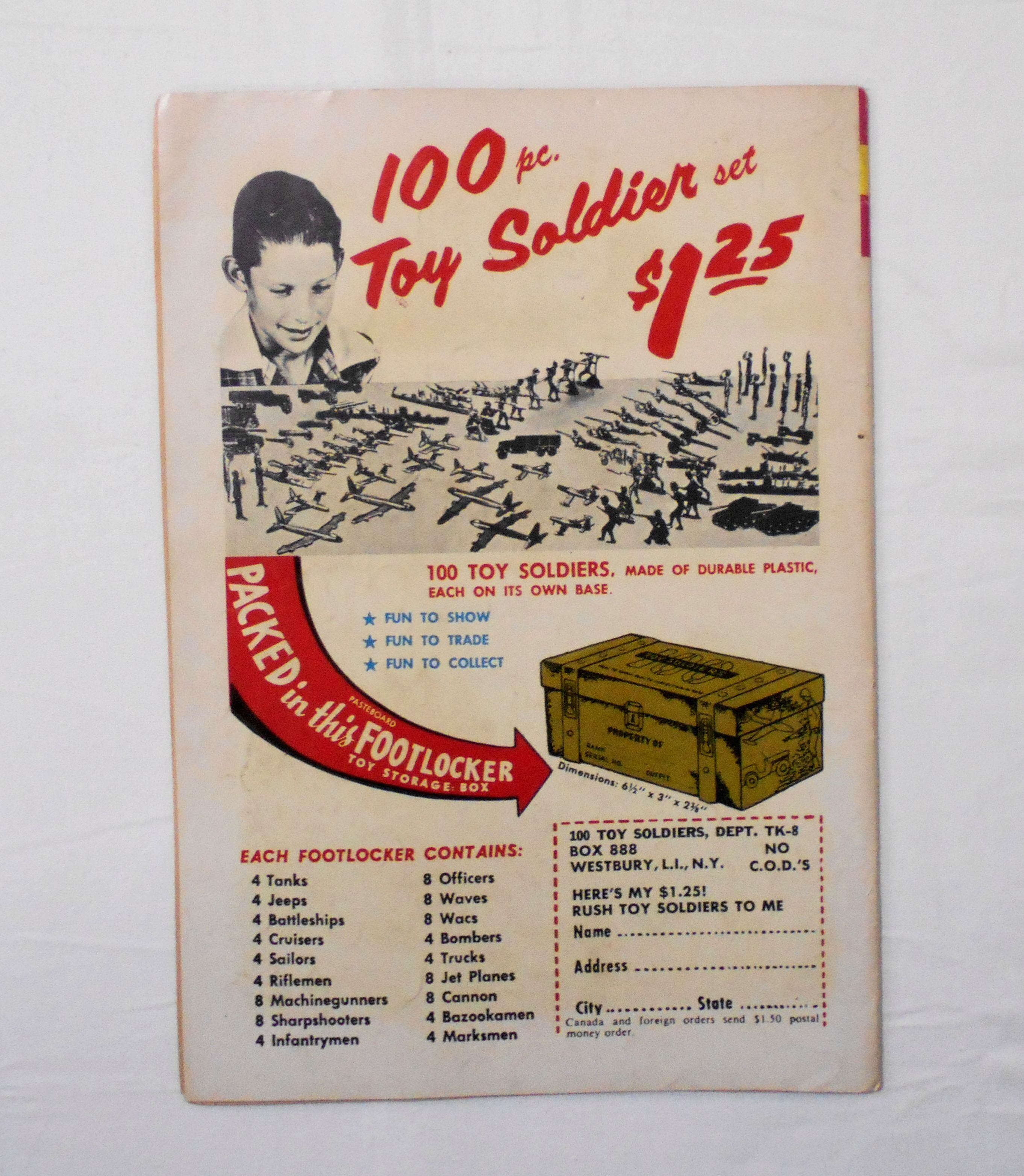 表紙が黄ばんでいます。他、多少の擦れやシワ、黄ばみ、角や端の傷みや折れ、微破れ等があり、経年に伴う使用感は強めと言えますが、1960年代の輸入中古コミックですので、その点を考慮頂ければ、普通程度~おおむね良好と言える保存状態だと思います。。中は多少黄ばんでいますが、目立った汚れやシミ等はなく、おおむねきれいですので、読むのに支障はございません。新品同様の美品をお求めの方や、古書にご理解を頂けない方にお薦めは出来ません。