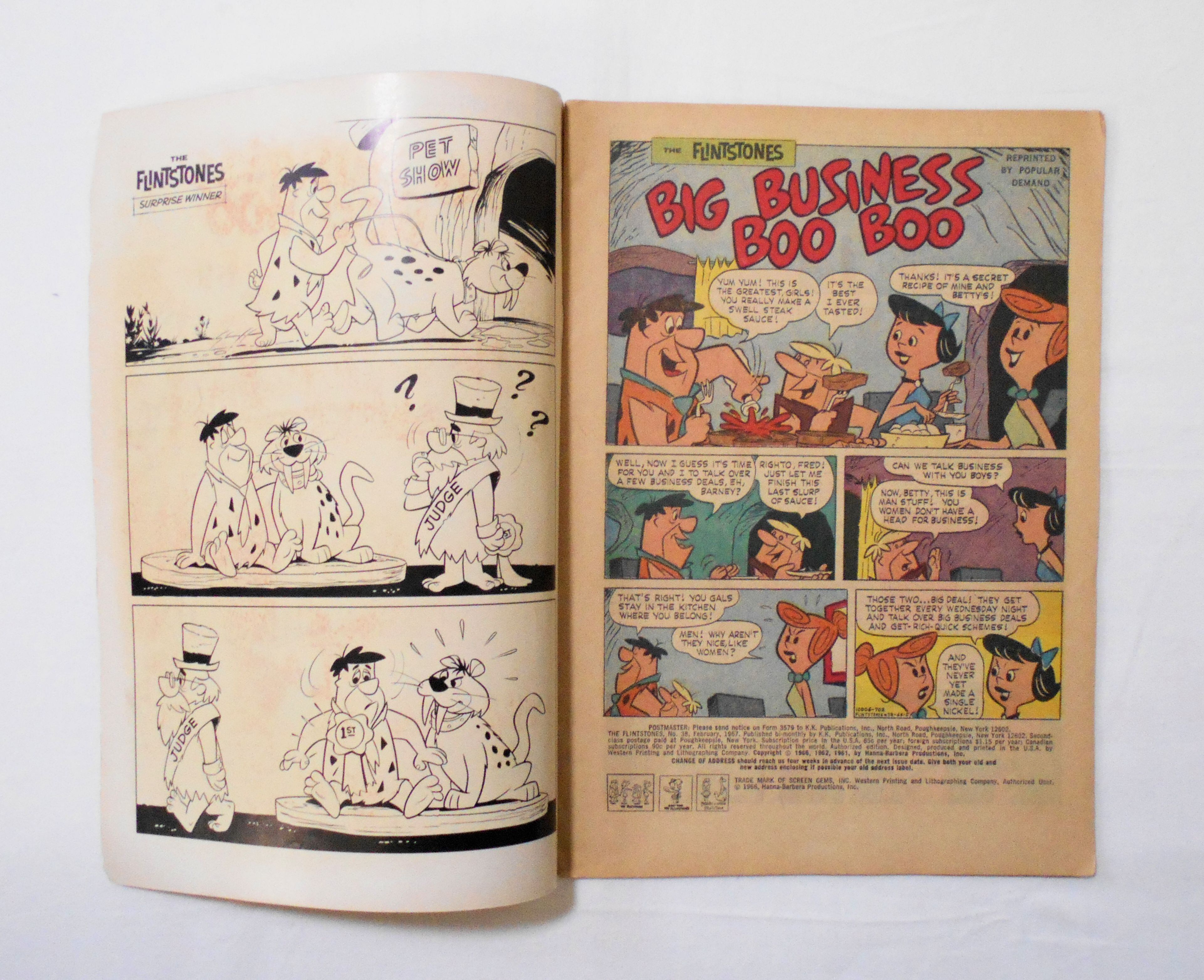 【HANNA BARBERA THE FLINTSTONES】 NO.38 FEB. 1967◆中古アメリカン・コミック。英文表記の洋書となります。◆32ページ フルカラー 大きさ約26×18センチ◆K.K.PUBLICATIONS, INC.◆WESTERN PRINTING & LITHOGRAPHING CO.◆COPYRIGHT 1966 by HANNA-BARBERA PRODUCTIONS, INC.