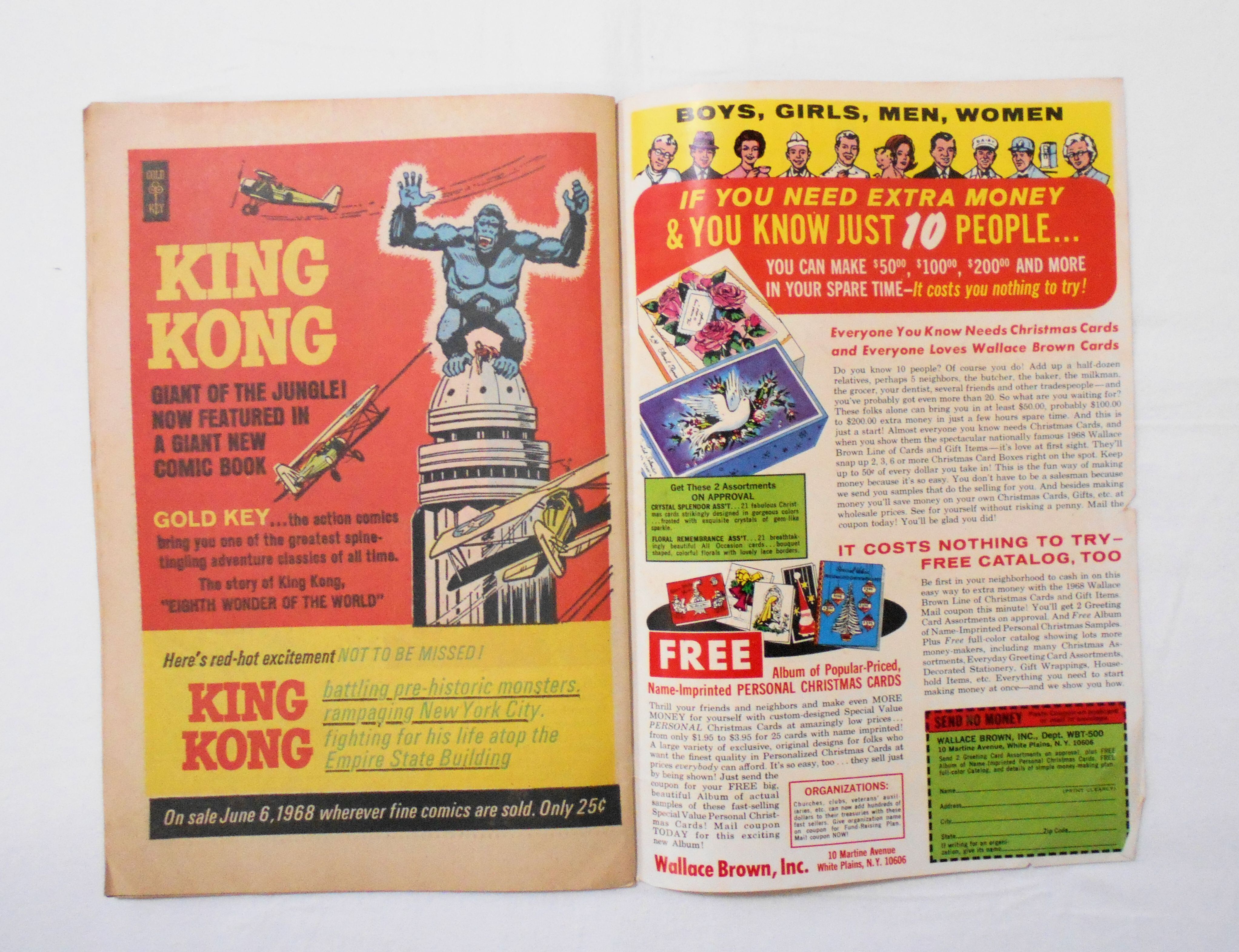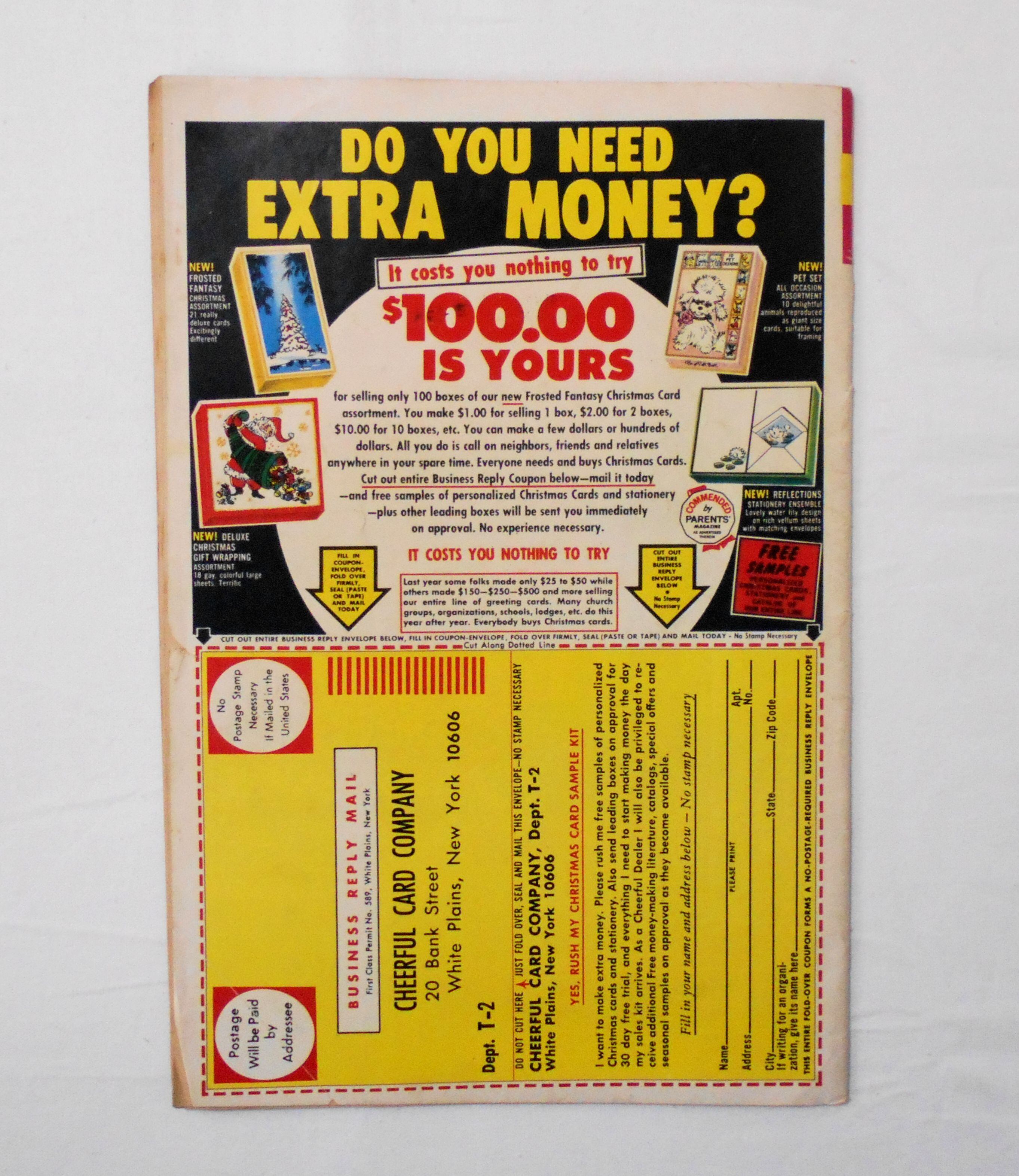 表紙の上あたりに薄いシミ汚れがあり、小口にも多少の薄いシミ跡アリ。他、多少の擦れやシワ、黄ばみ、紙ジミ、角や端の傷みや折れ、破れ等があり、経年に伴う使用感は否めませんが、1960年代の輸入中古コミックですので、その点を考慮頂ければと思います。中は多少黄ばんでいますが、目立った汚れやシミ等はなく、おおむねきれいですので、読むのに支障はございません。新品同様の美品をお求めの方や、古書にご理解を頂けない方にお薦めは出来ません。