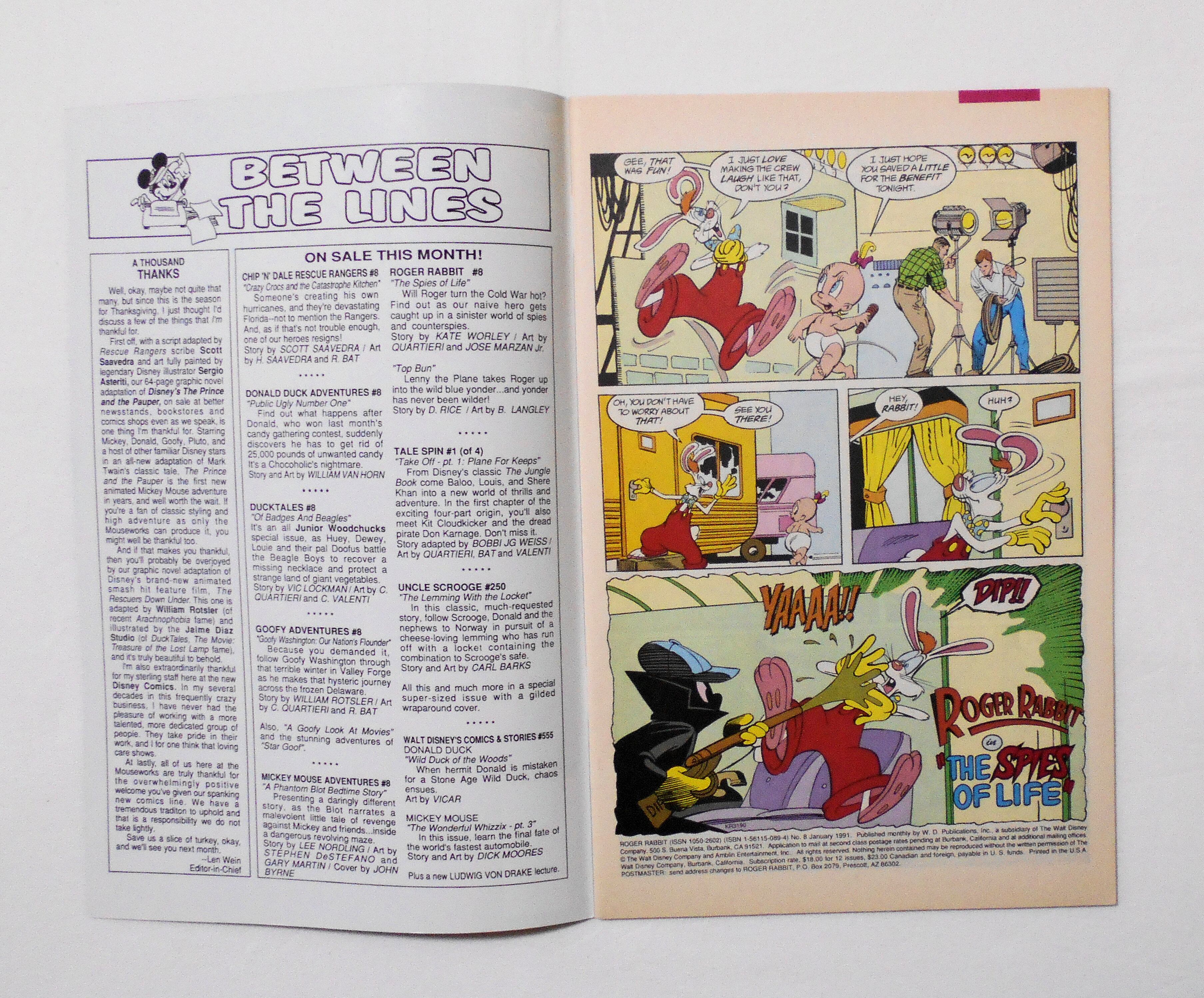 【ROGER RABBIT ロジャー・ラビット】 NO.8 JAN. 1991◆中古アメリカン・コミック。英文表記の洋書となります。◆32ページ カラー 大きさ約26×17センチ◆WALT DISNEY PUBLICATIONS, INC.◆THE WALT DISNEY COMPANY & AMBLIN ENTERTAINMENT, INC.