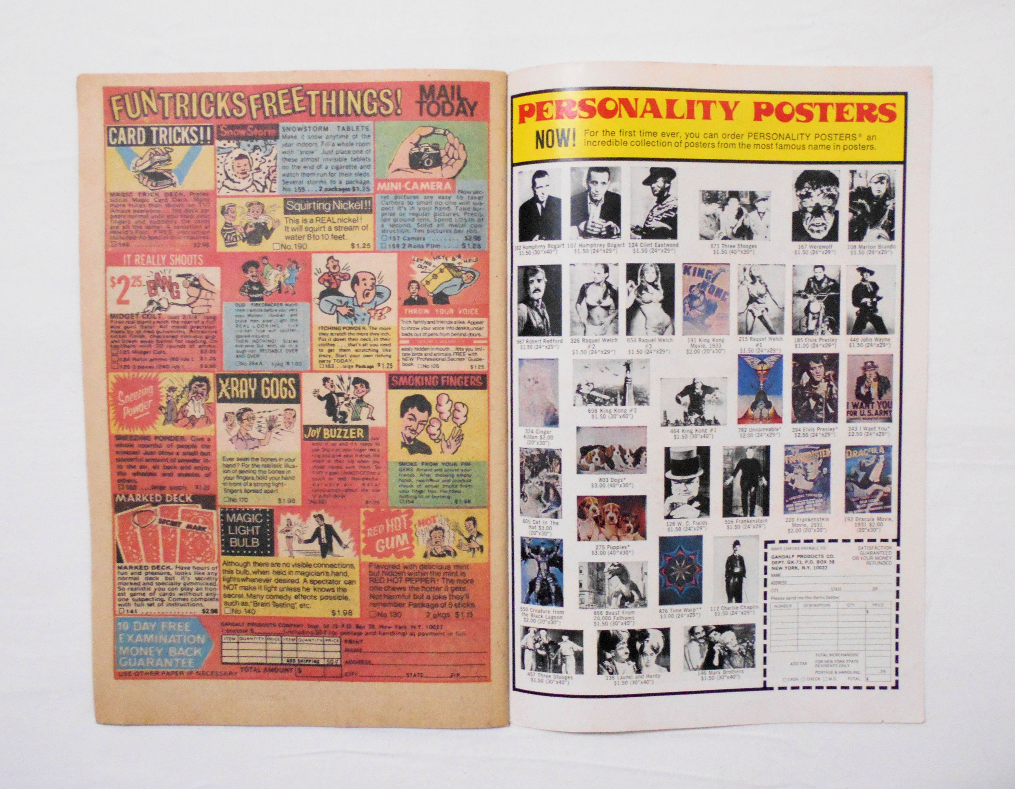 多少の擦れやシワ、黄ばみ、紙ジミ、角や端の傷みや折れ等があり、経年に伴う使用感は否めませんが、中は目立った汚れやシミ等はなく、1970年代の輸入中古コミックですので、その点を考慮頂ければ、普通程度~おおむねきれいな状態だと思います。新品同様の美品をお求めの方や、古書にご理解を頂けない方にお薦めは出来ません。