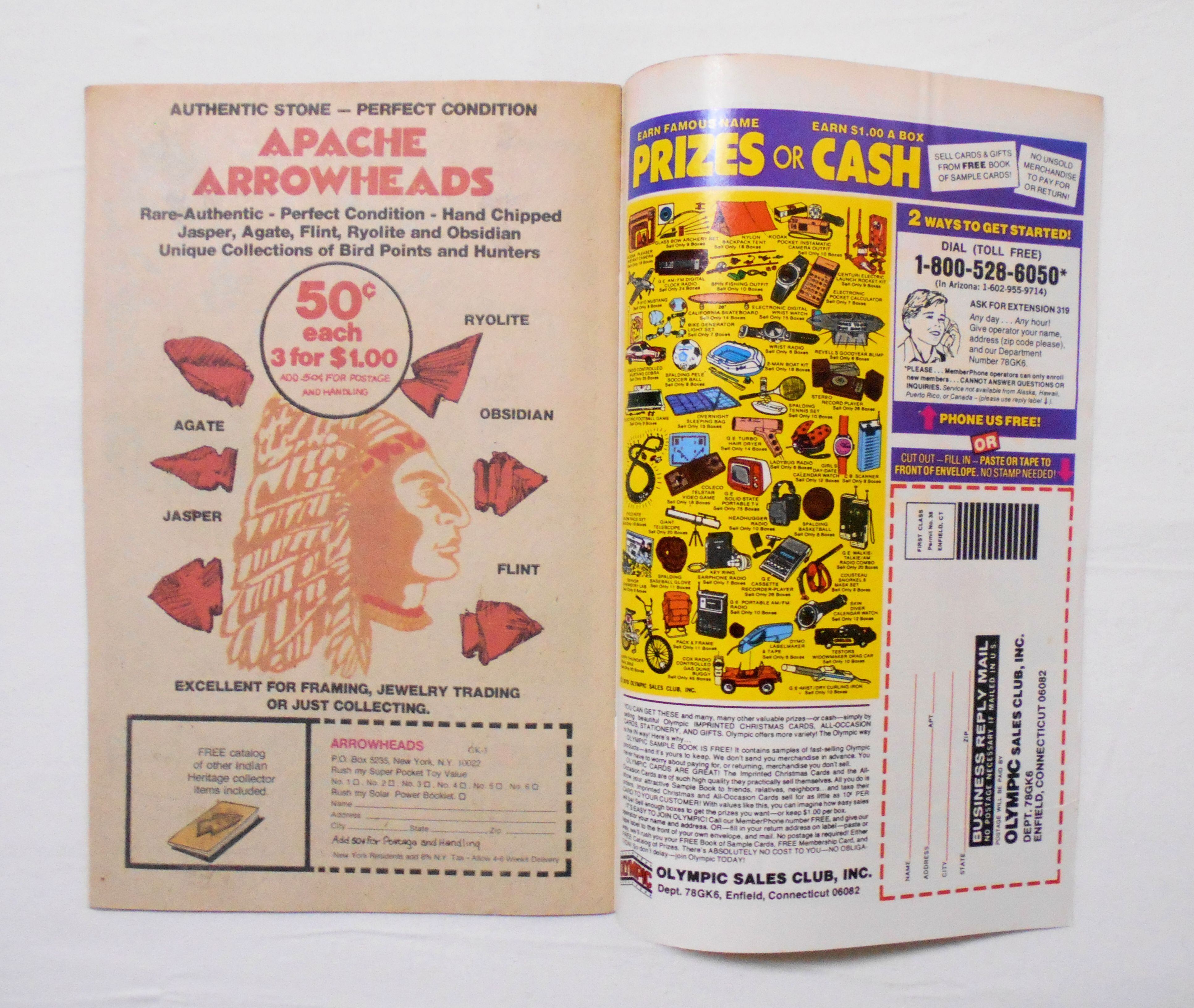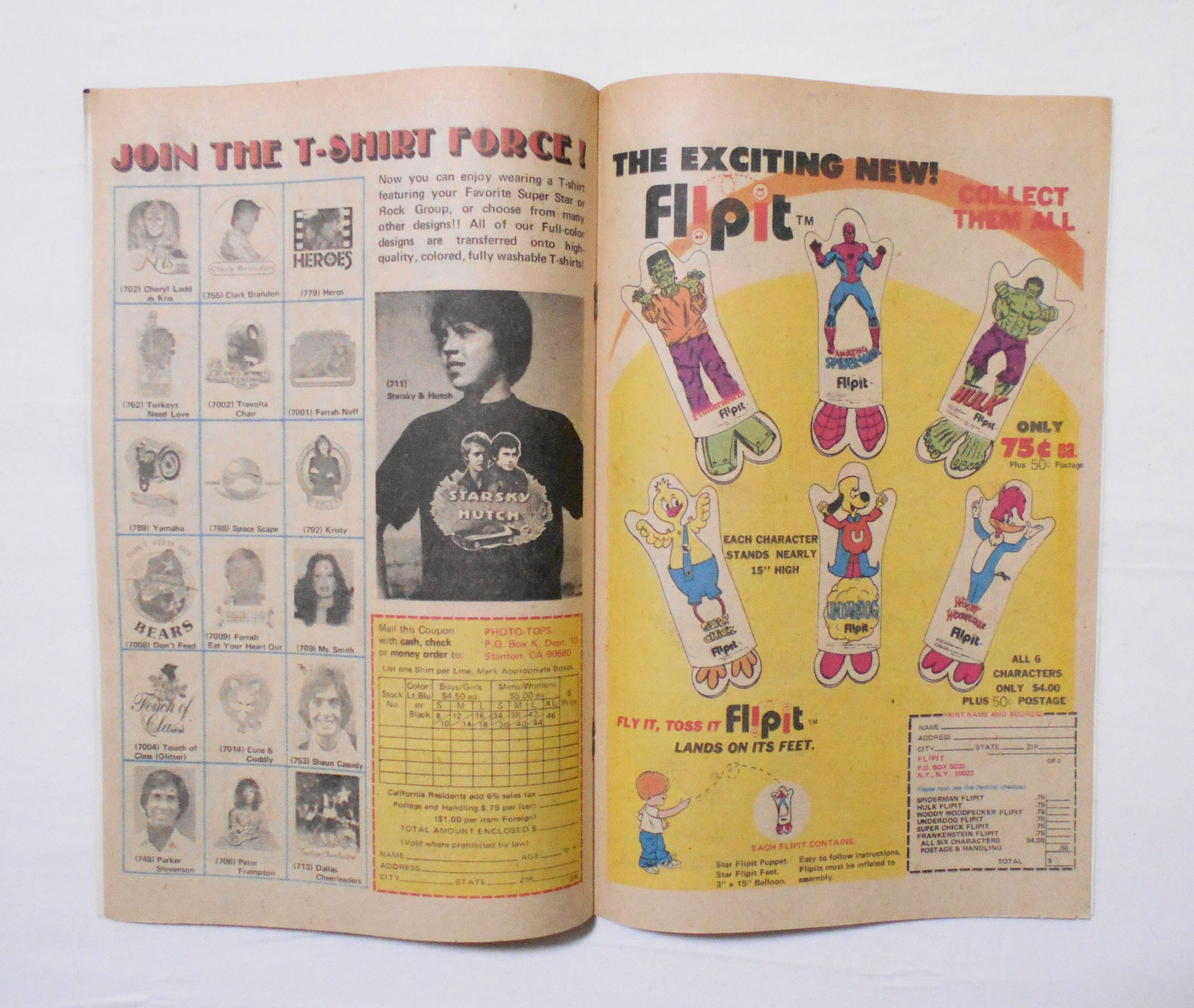 裏表紙の左上角に鉛筆で数字の書き込みがあります。他、多少の擦れやシワ、黄ばみ、紙ジミ、角や端の傷みや折れ等があり、経年に伴う使用感は否めませんが、中は目立った汚れやシミ等はなく、1970年代の輸入中古コミックですので、その点を考慮頂ければ、普通程度~おおむねきれいな状態だと思います。新品同様の美品をお求めの方や、古書にご理解を頂けない方にお薦めは出来ません。