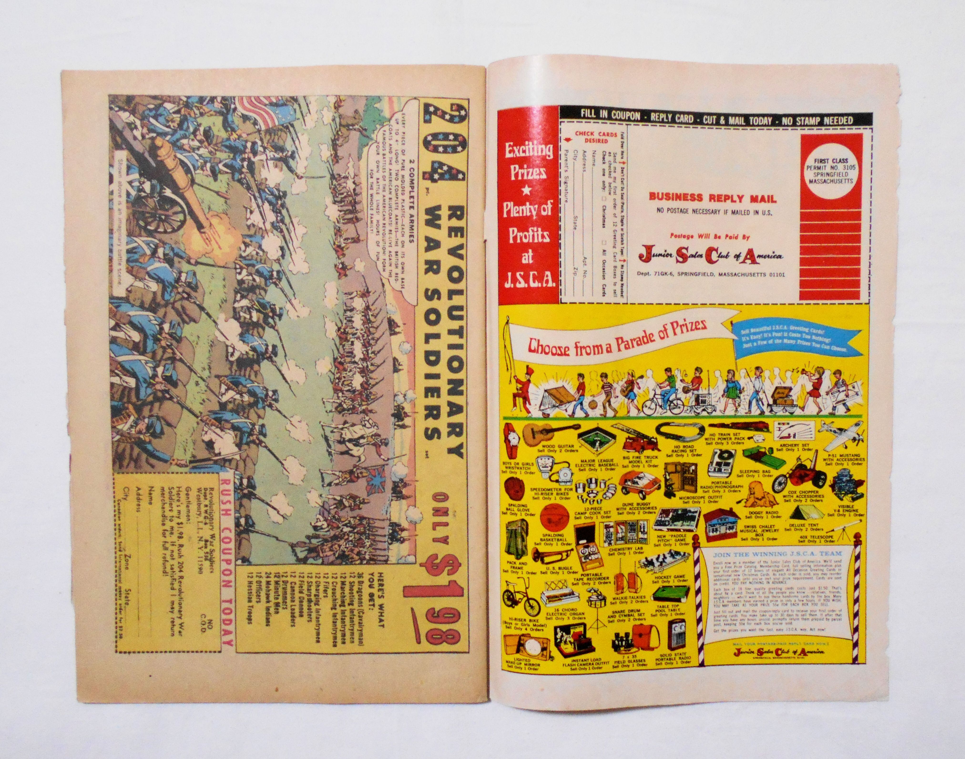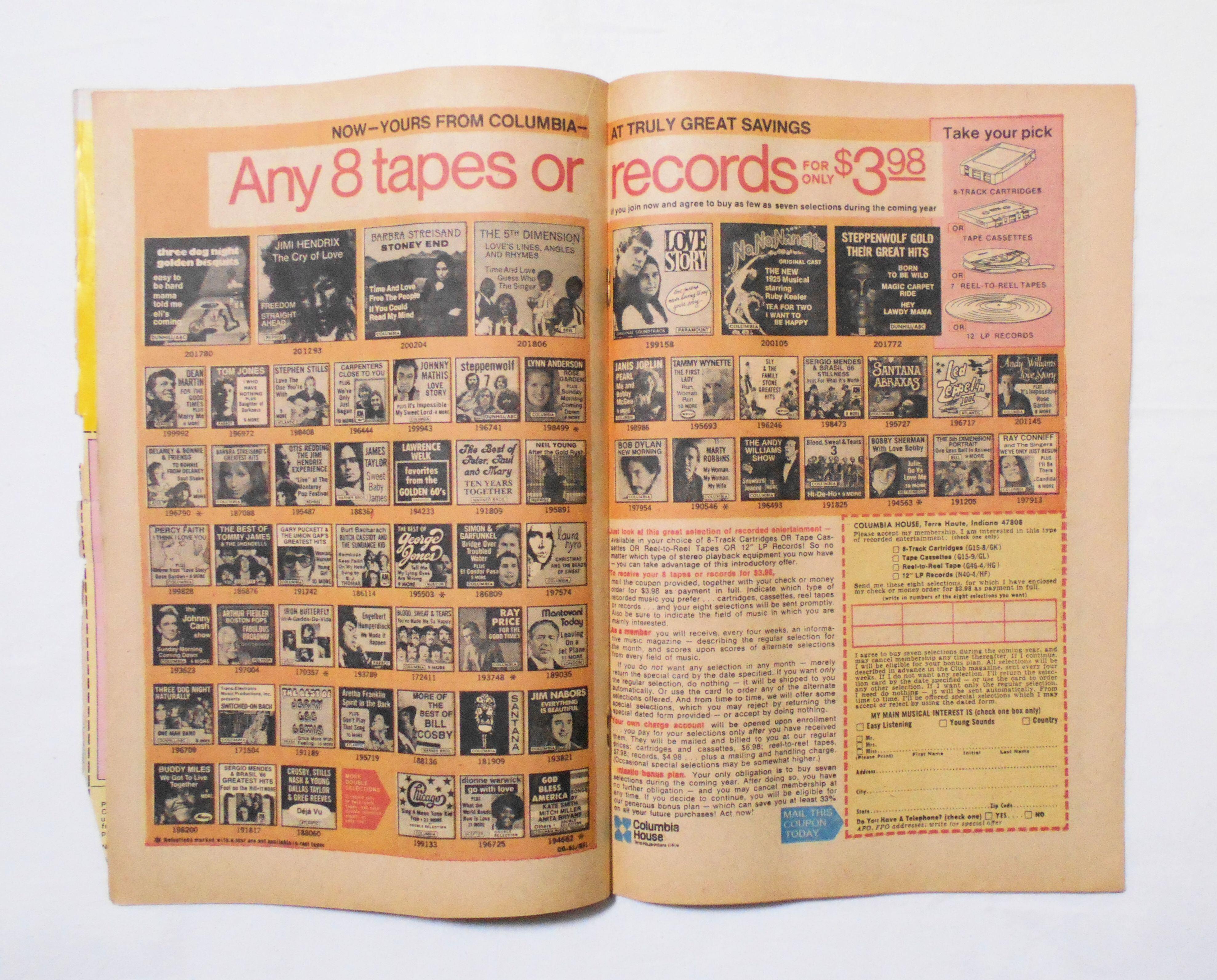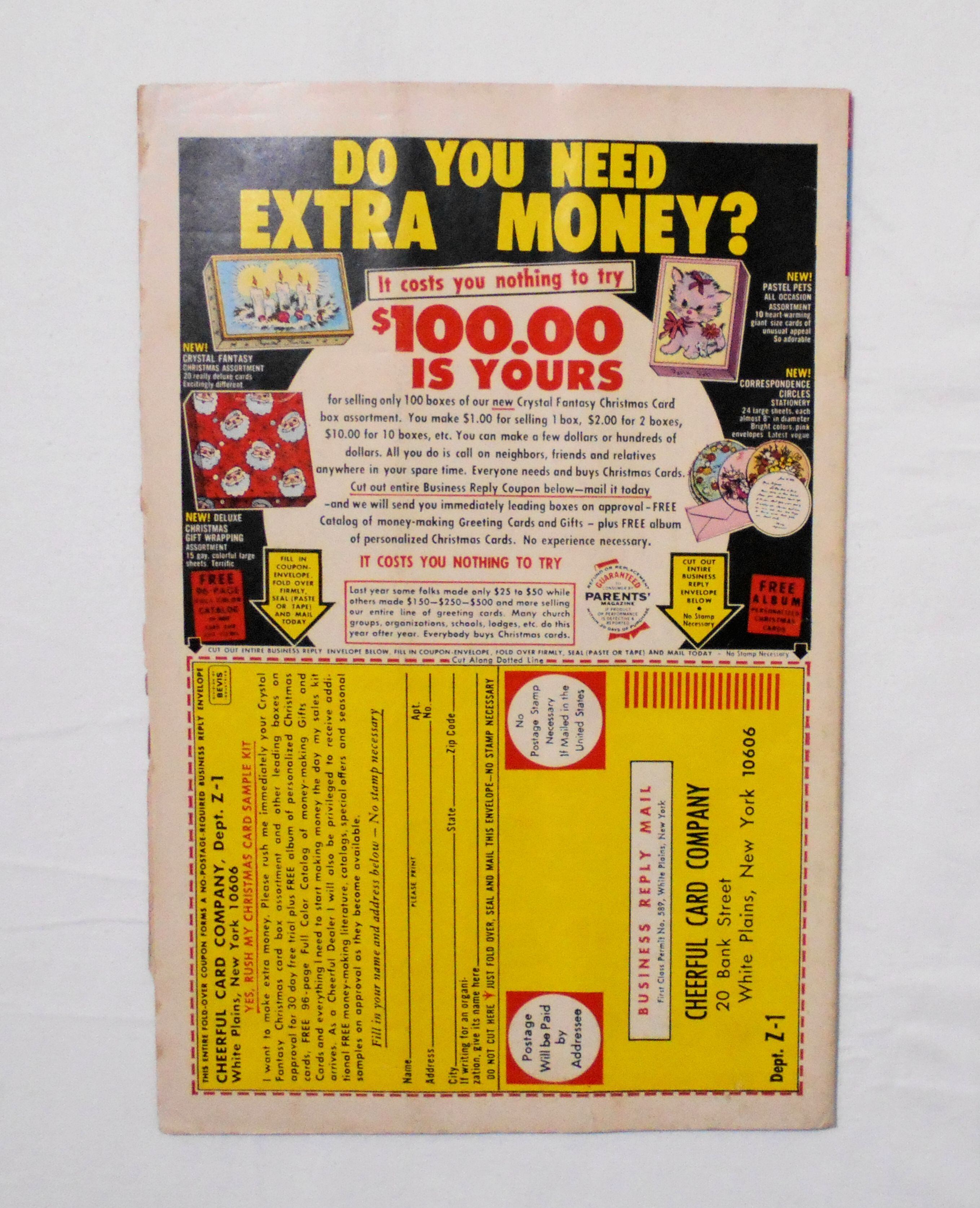 表紙に書き込みがあります。背から内側へ約7センチ縦方向に、本全体に折れめがついています。他、擦れやシワ、黄ばみ、黒ずみ、紙ジミ、角や端の傷みや折れ等があり、小口の傷みがかなり目立ち、経年に伴う使用感は強めです。1970年代の輸入中古コミックですので、その点を考慮頂ければ、普通程度と言える保存状態だと思います。中は黄ばんでいますが、目立った汚れやシミ等はなく、読むのに支障はございません。美品をお求めの方や、古書にご理解を頂けない方にお薦めは出来ません。