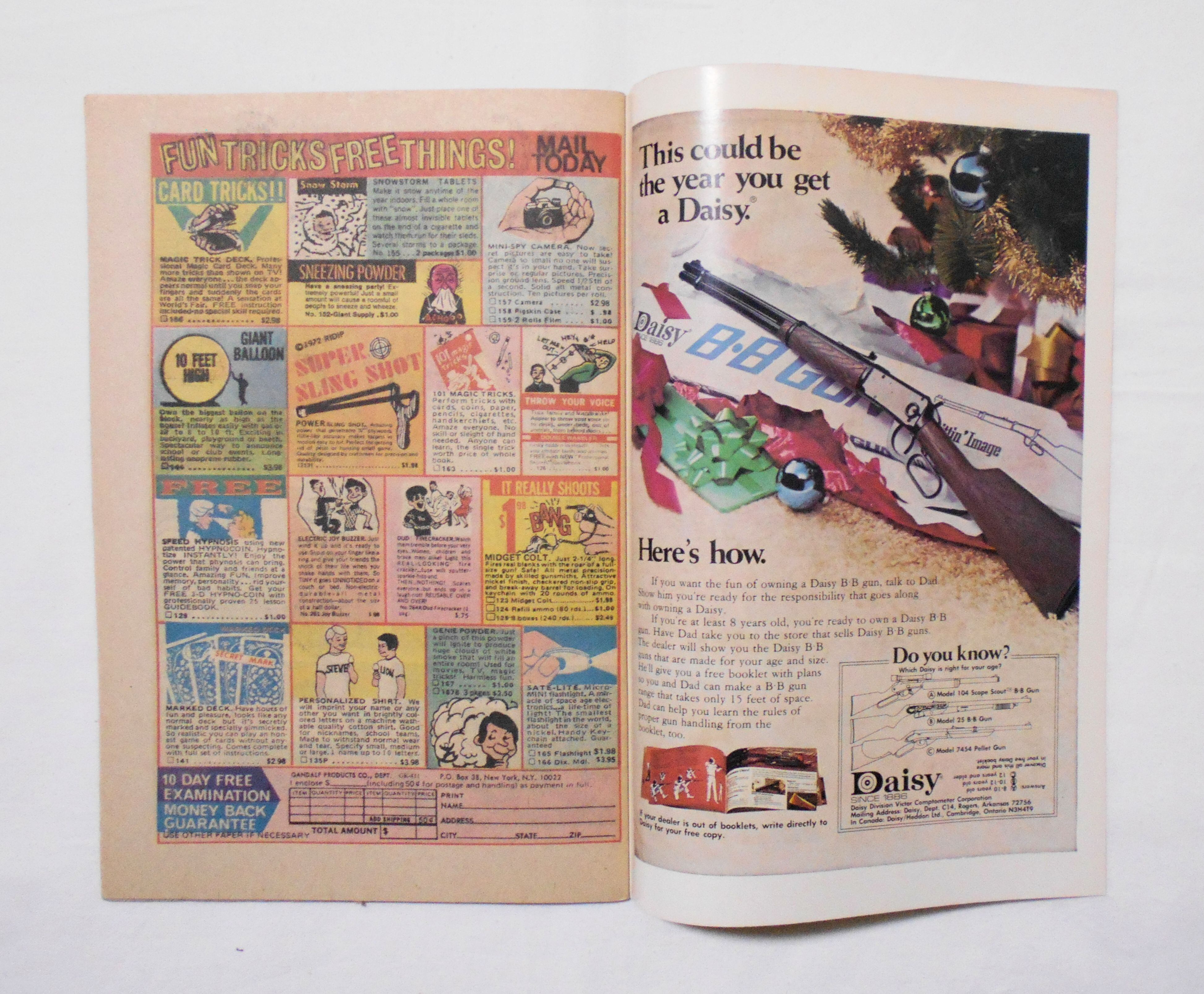 多少の擦れやシワ、黄ばみ、角や端の傷みや折れ等があり、経年に伴う使用感は否めませんが、目立った汚れやシミ等なく、1970年代の輸入中古コミックですので、その点を考慮頂ければ、普通程度~おおむねきれいな状態だと思います。新品同様の美品をお求めの方や、古書にご理解を頂けない方にお薦めは出来ません。