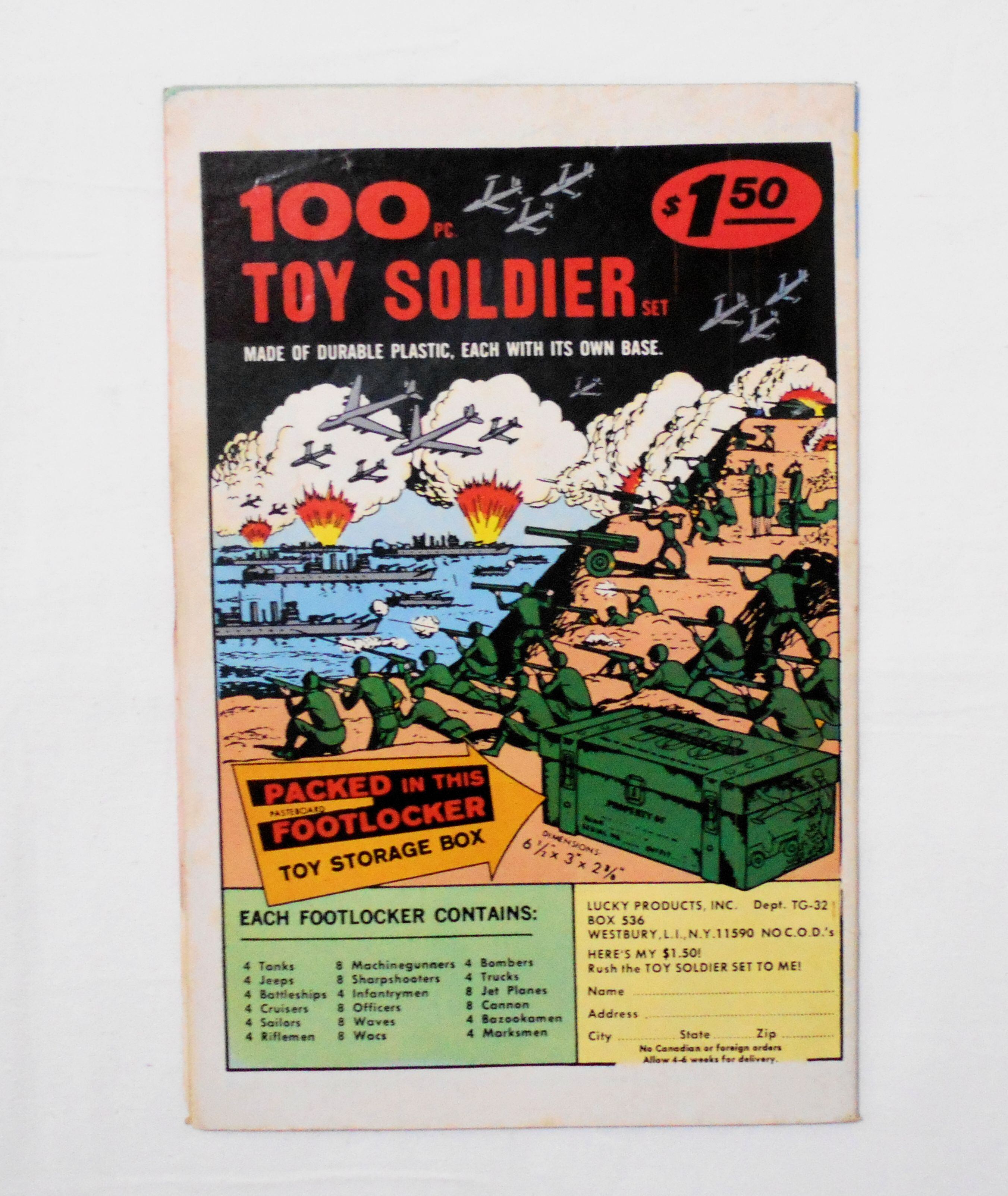 裏表紙の上端(天)1ミリ~左角先に青いペイント汚れあり。1ページ目の下余白にコミック店のスタンプが押されています。他、多少の擦れやシワ、黄ばみ、黒ずみ、紙ジミ、角や端の傷みや折れ等があり、経年に伴う使用感はやや強めと言えますが、中は目立った汚れやシミ等なく、1970年代の輸入中古コミックですので、その点を考慮頂ければ、普通程度~おおむねきれいな状態だと思います。新品同様の美品をお求めの方や、古書にご理解を頂けない方にお薦めは出来ません。