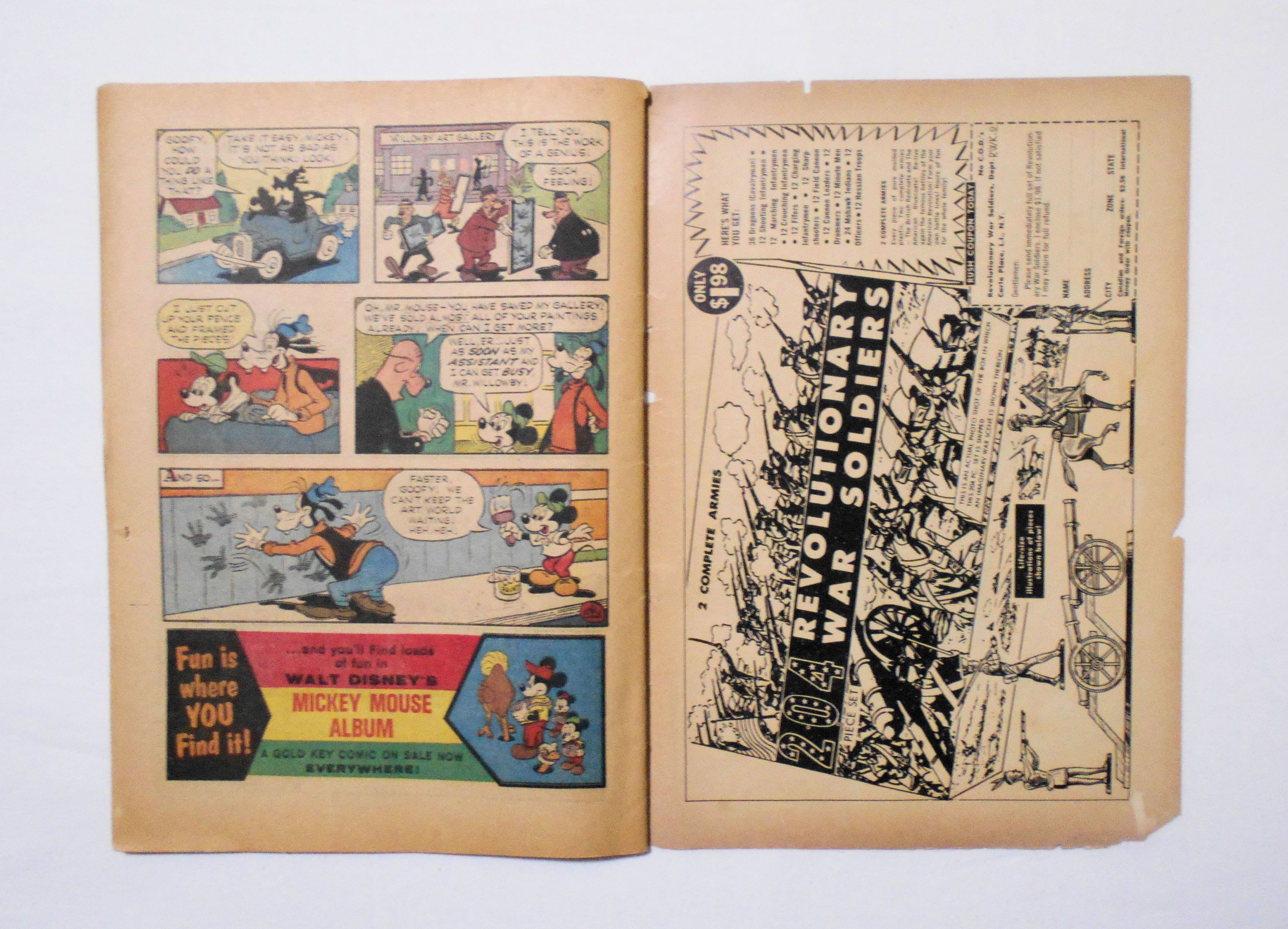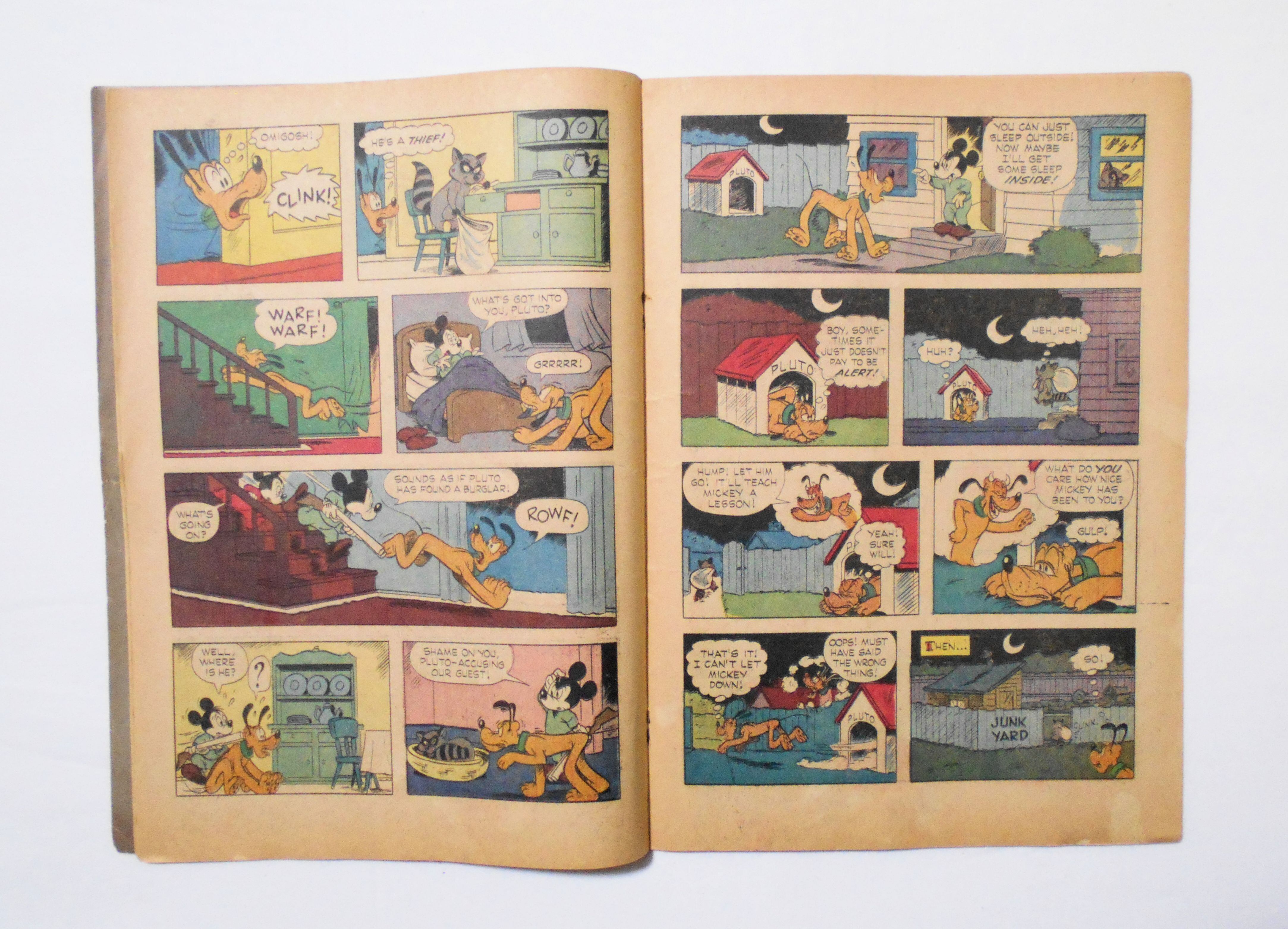 コミックの上下端が濡れたようで、他よりもやや黄ばんでいます。背の傷み(破れ等)が目立ちます。他、多少の擦れやシワ、黄ばみ、角や端の傷みや折れ、破れ等があり、経年に伴う使用感はやや強めと言えますが、1960年代の輸入中古コミックですので、その点を考慮頂ければ、普通程度と言える保存状態だと思います。中は黄ばんでいますが、目立った汚れやシミ等はなく、おおむねきれいですので、読むのに支障はございません。新品同様の美品をお求めの方や、古書にご理解を頂けない方にお薦めは出来ません。