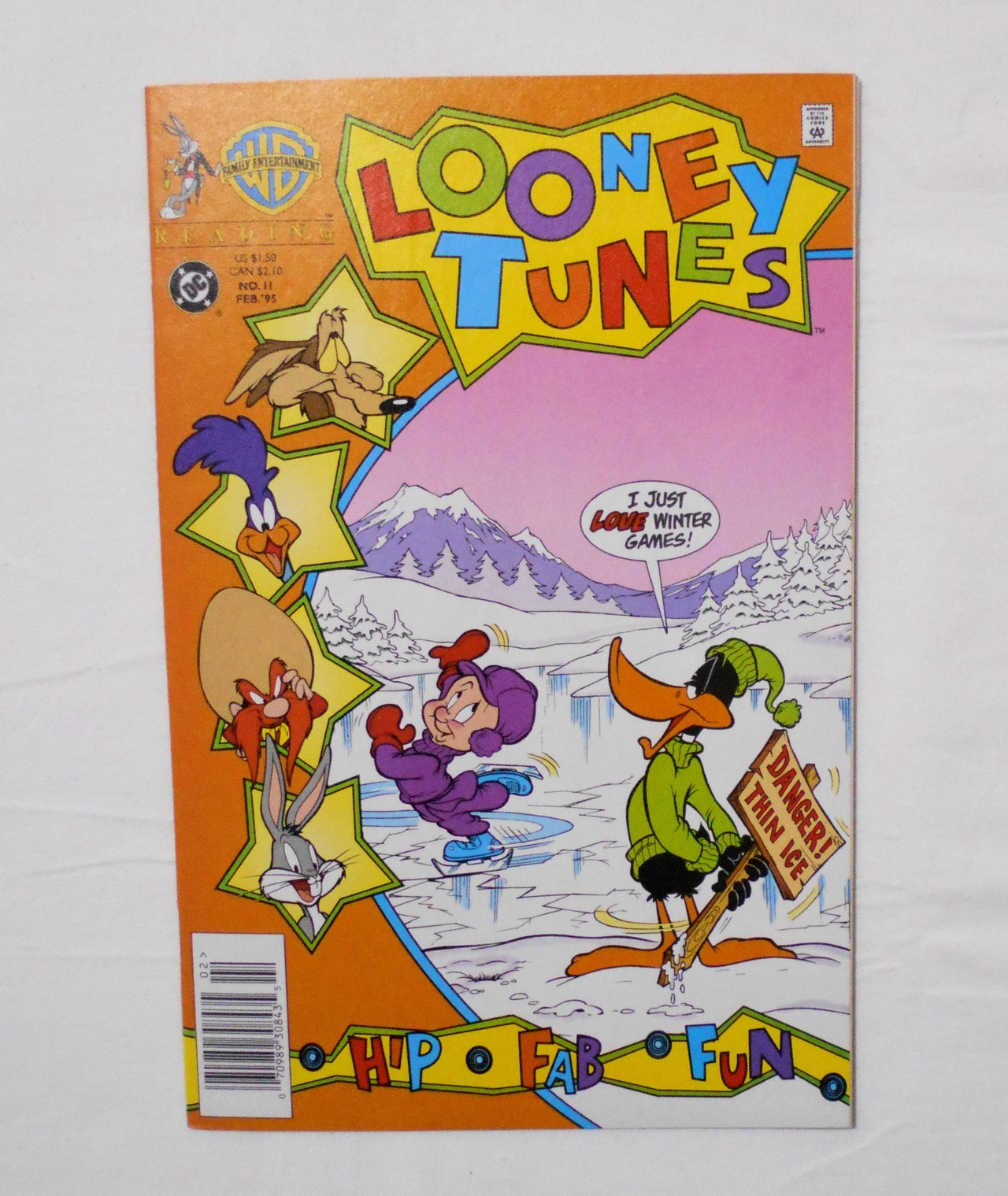 【LOONEY TUNES ルーニーテューンズ】 #11 FEB. 1995◆中古アメリカン・コミック。英文表記の洋書となります。◆32ページ フルカラー 約26×17センチ◆WARNER BROS. INC.◆DC COMICS◆表紙のダフィーダック、エルマー、ワイリーコヨーテ、ロードランナー、ヨセミテ・サム、バッグスバニーが登場します。4話収録(1ページの短編含め)。