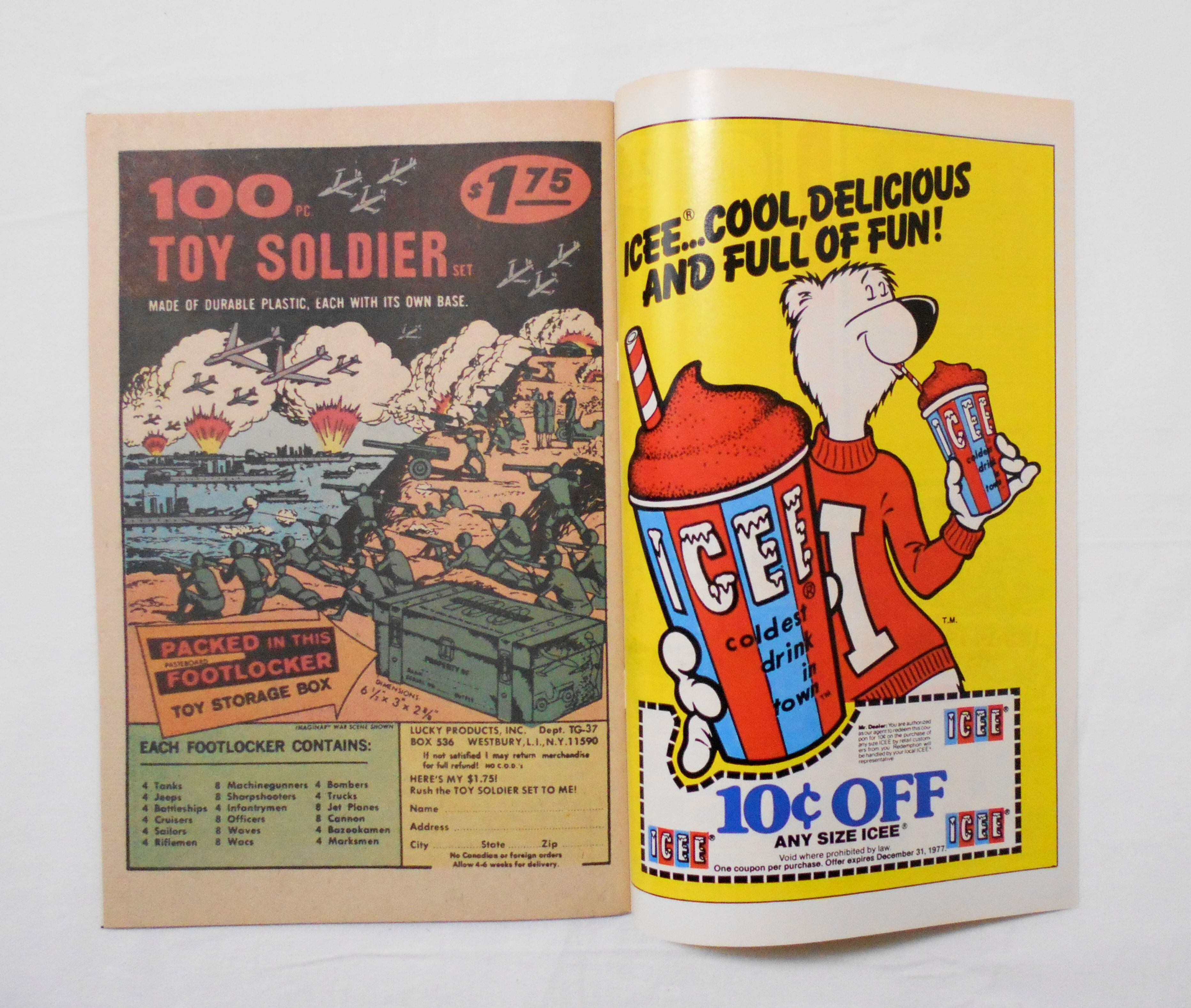 多少の擦れやシワ、黄ばみ、角や端の傷み等があり、経年に伴う使用感は否めませんが、目立った汚れやシミ等はなく、1970年代の輸入中古コミックですので、その点を考慮頂ければ、普通程度~おおむねきれいな状態だと思います。新品同様の美品をお求めの方や、古書にご理解を頂けない方にお薦めは出来ません。