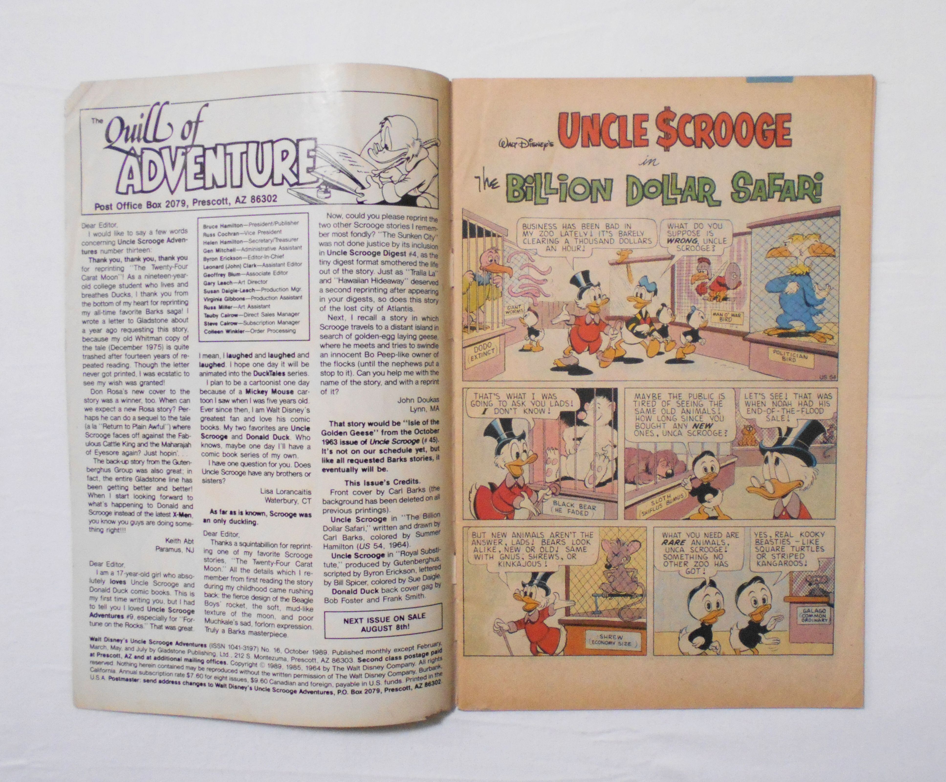 【アンクル・スクルージ・アドベンチャー WALT DISNEY'S UNCLE SCROOGE ADVENTURES】NO.16 OCT. 1989◆中古アメリカン・コミック。英文表記の洋書となります。◆32ページ フルカラー 大きさ約26×17センチ◆GLADSTONE PUBLISHING, INC.◆THE WALT DISNEY COMPANY