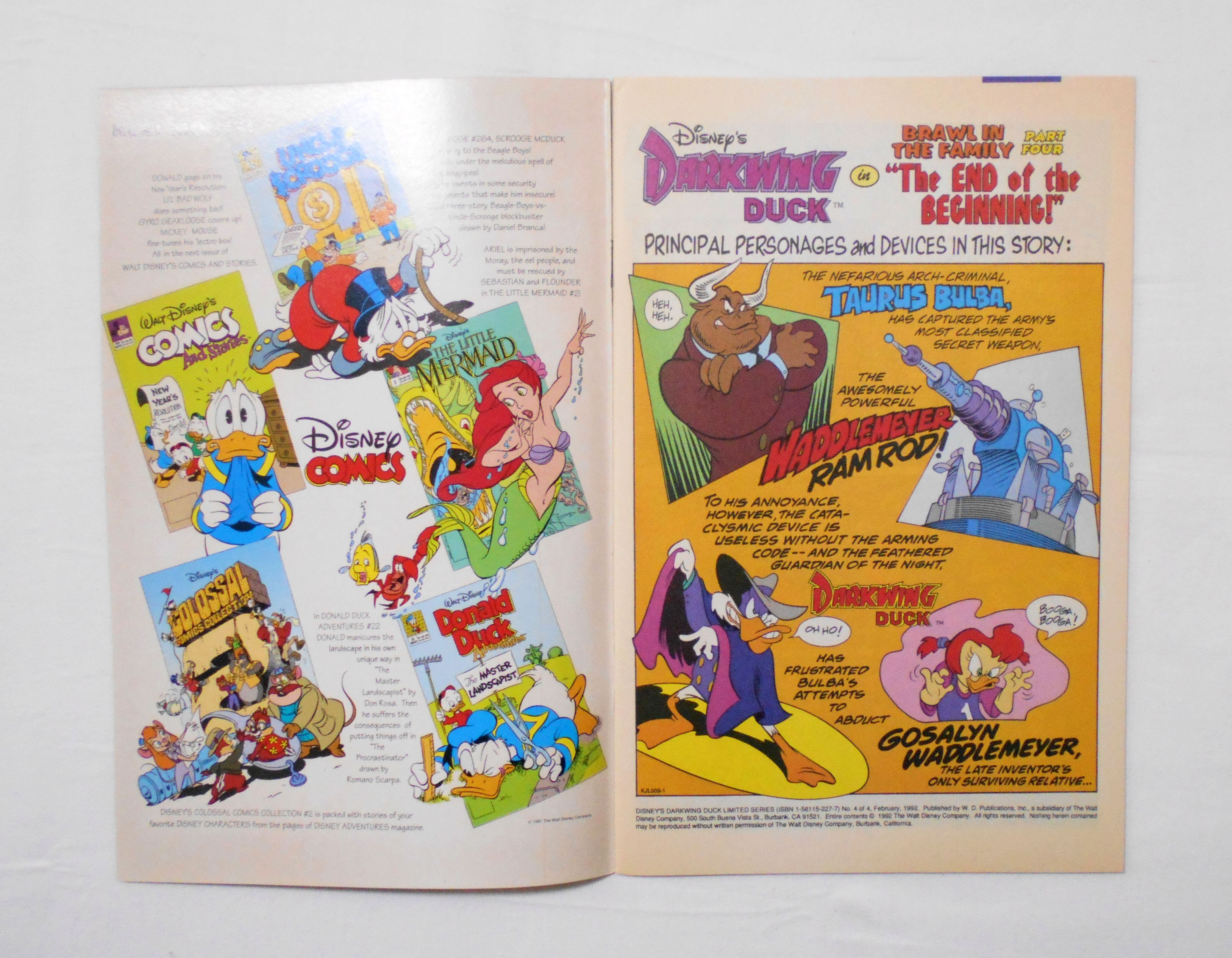 【ダックにおまかせ ダークウィング・ダック DISNEY'S DARKWING DUCK <A DISNEY COMICS LIMITED SERIES>】 #4 of 4 FEB. 1992◆中古アメリカン・コミック。英文表記の洋書となります。◆32ページ フルカラー 大きさ約26×17センチ◆W.D.PUBLICATIONS, INC.◆THE WALT DISNEY COMPANY
