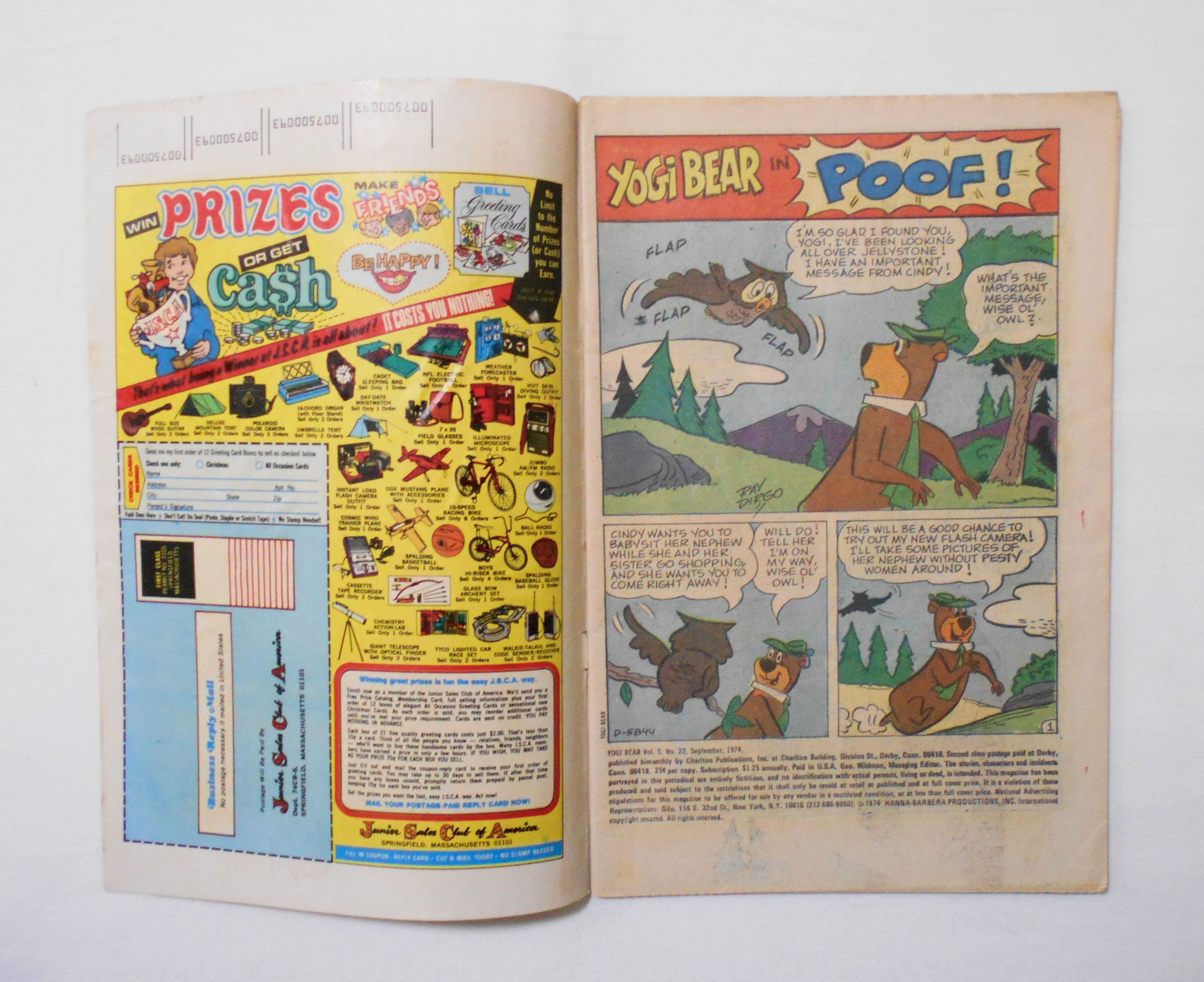 【A HANNA-BARBERA PRODUCTIONS YOGI BEAR】 VOL.5 NO.22 SEPT. 1974◆中古アメリカン・コミック。英文表記の洋書となります。◆カラー 32ページ 大きさ約26×17センチ◆CHARLTON PUBLICATIONS,INC◆HANNA-BARBERA PRODUCTIONS,INC.