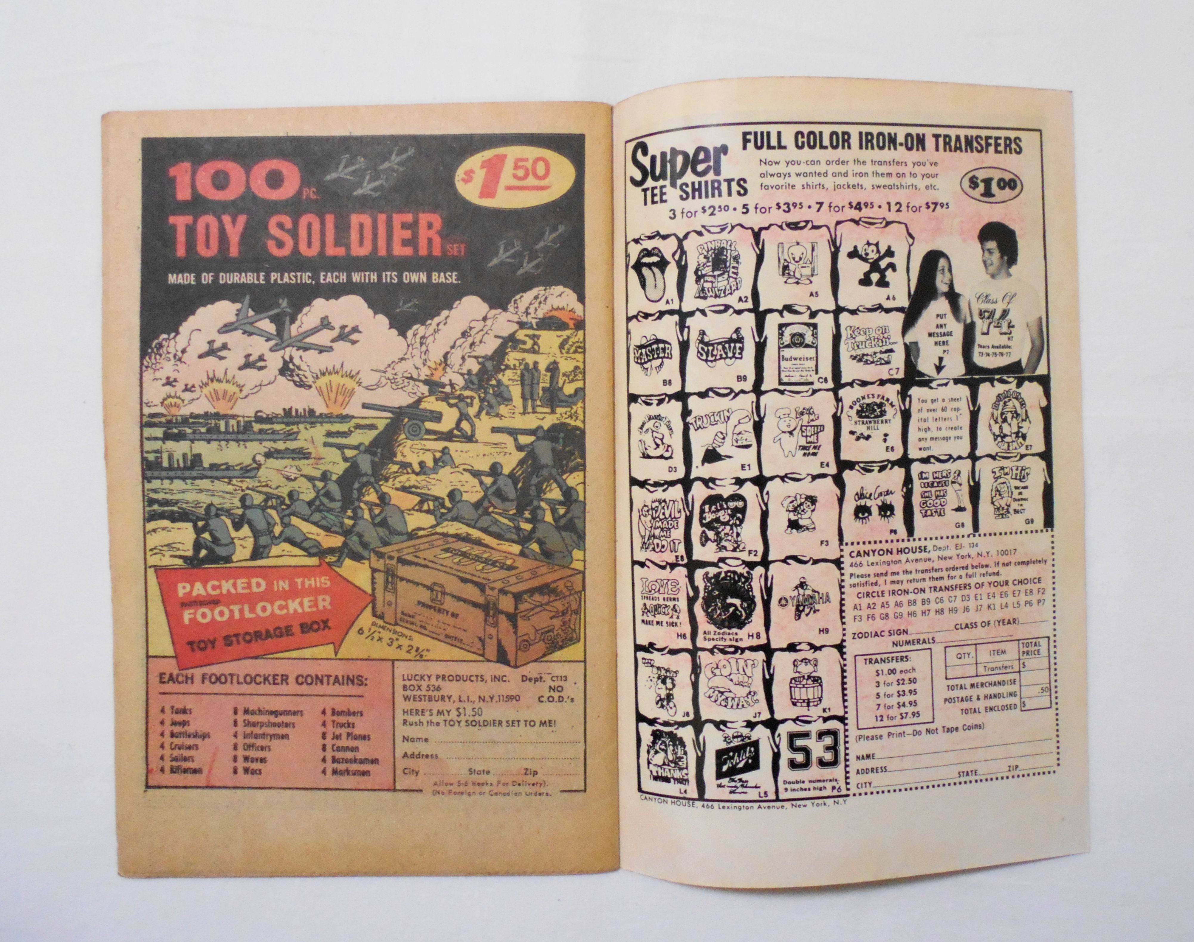 多少の擦れやシワ、黄ばみ、紙ジミ、シミ汚れ、角や端の傷みや折れ、破れ等があり、経年に伴う使用感はやや強めと言えますが、1970年代の輸入中古コミックですので、その点を考慮頂ければ、普通程度~おおむねきれいな状態だと思います。新品同様の美品をお求めの方や、古書にご理解を頂けない方にお薦めは出来ません。