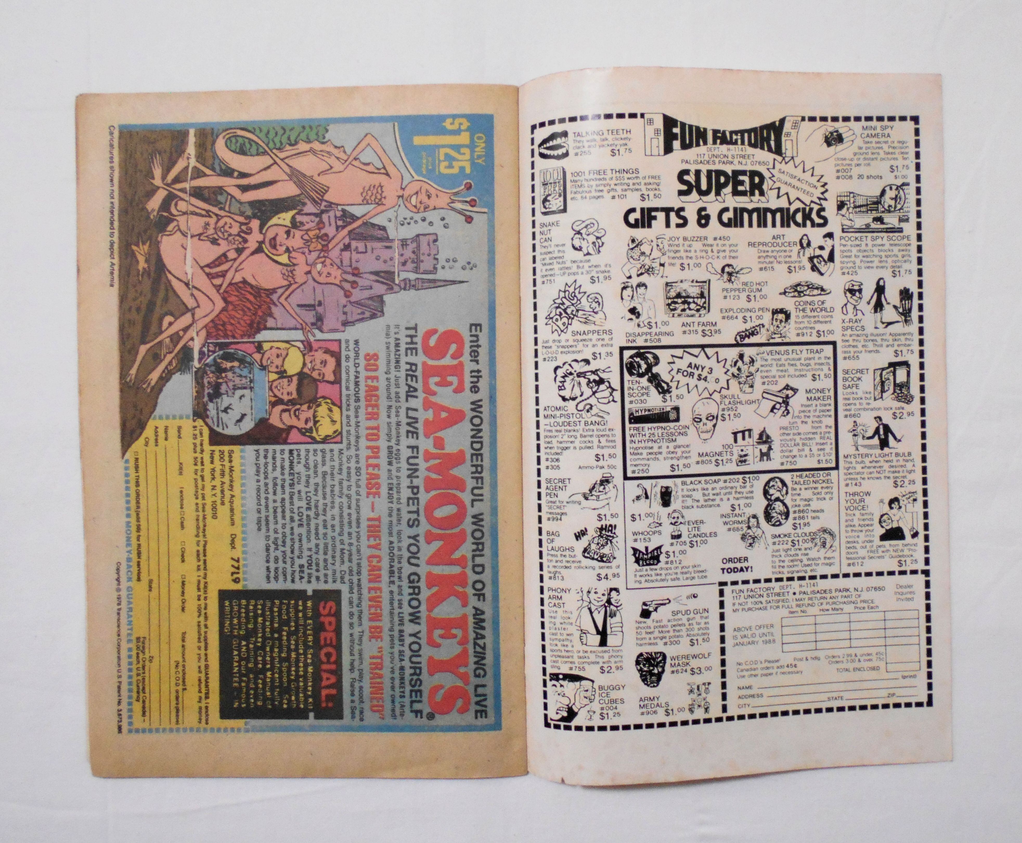 多少の擦れやシワ、黄ばみ、紙ジミ、角や端の傷みや折れ、破れ等があり、経年に伴う使用感は強めと言えますが、1970年代の輸入中古コミックですので、その点を考慮頂ければ、普通程度と言える保存状態だと思います。中は黄ばんでいますが、目立った汚れやシミ等はなく、おおむねきれいですので、読むのに支障はございません。新品同様の美品をお求めの方や、古書にご理解を頂けない方にお薦めは出来ません。