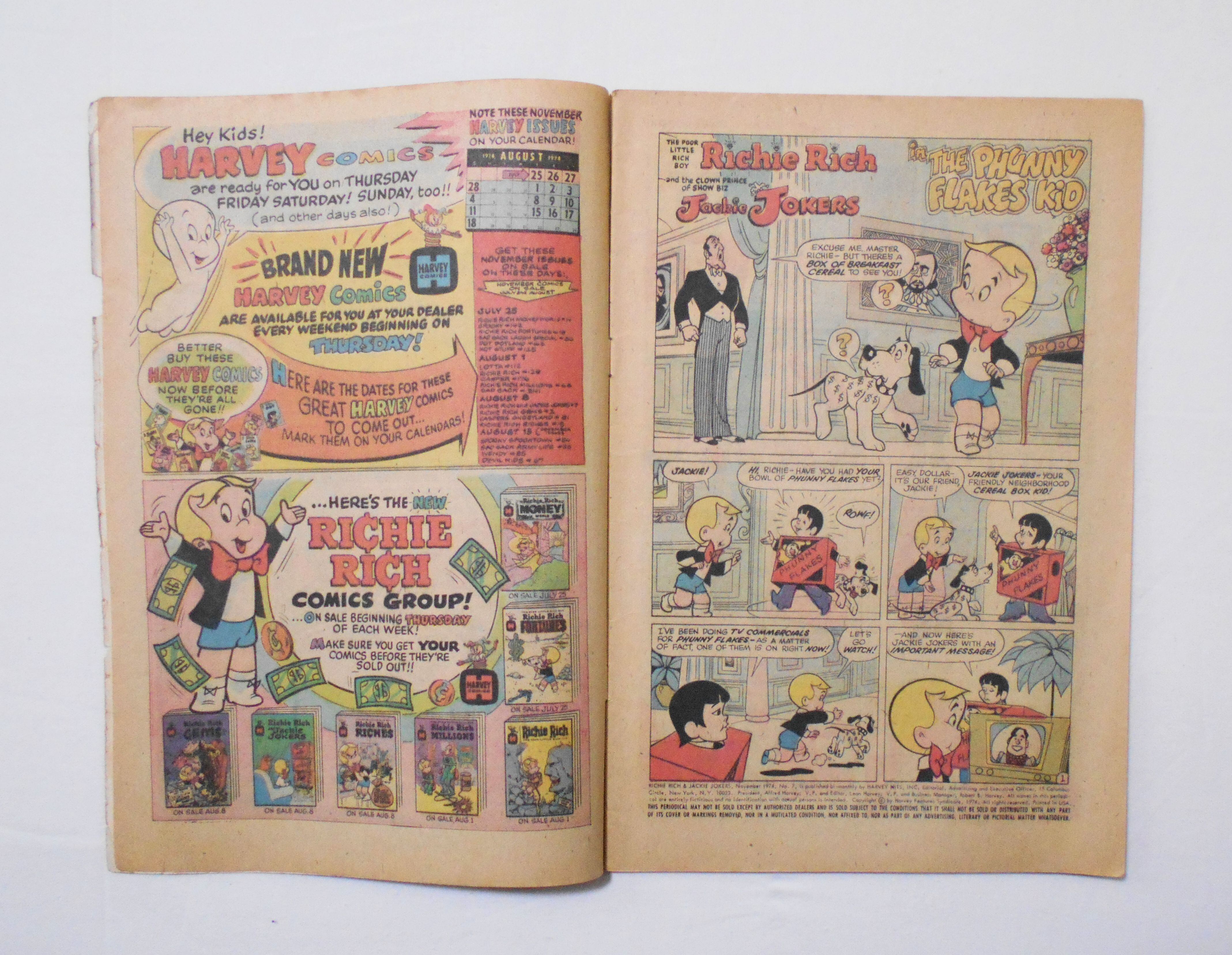 【RICHIE RICH & JACKIE JOKERS】NO.7 NOV. 1974◆中古アメリカン・コミック。英文表記の洋書となります。◆32ページ フルカラー 大きさ約26×17センチ◆HARVEY HITS, INC.◆COPYRIGHT HARVEY FEATURES SYNDICATE 1974