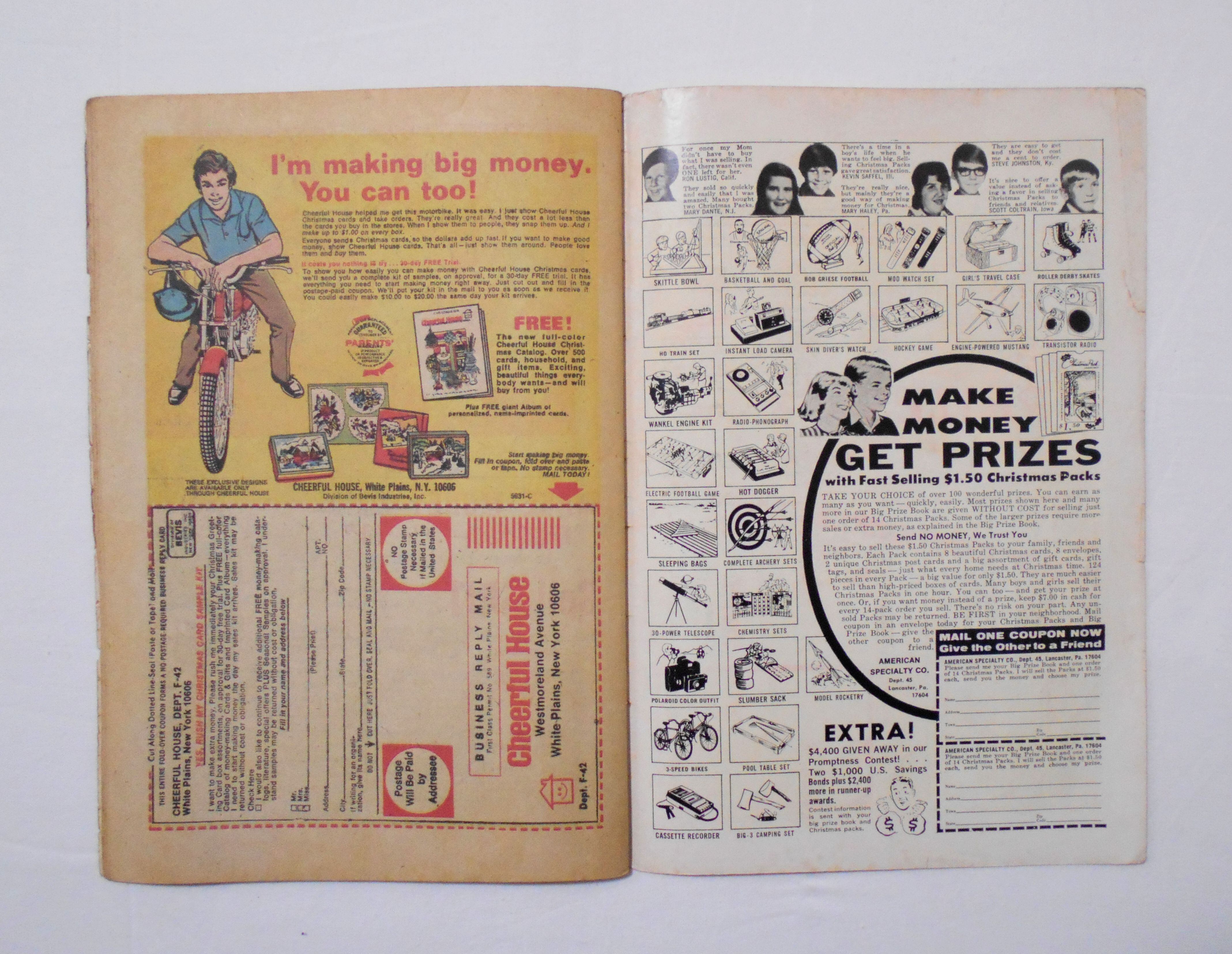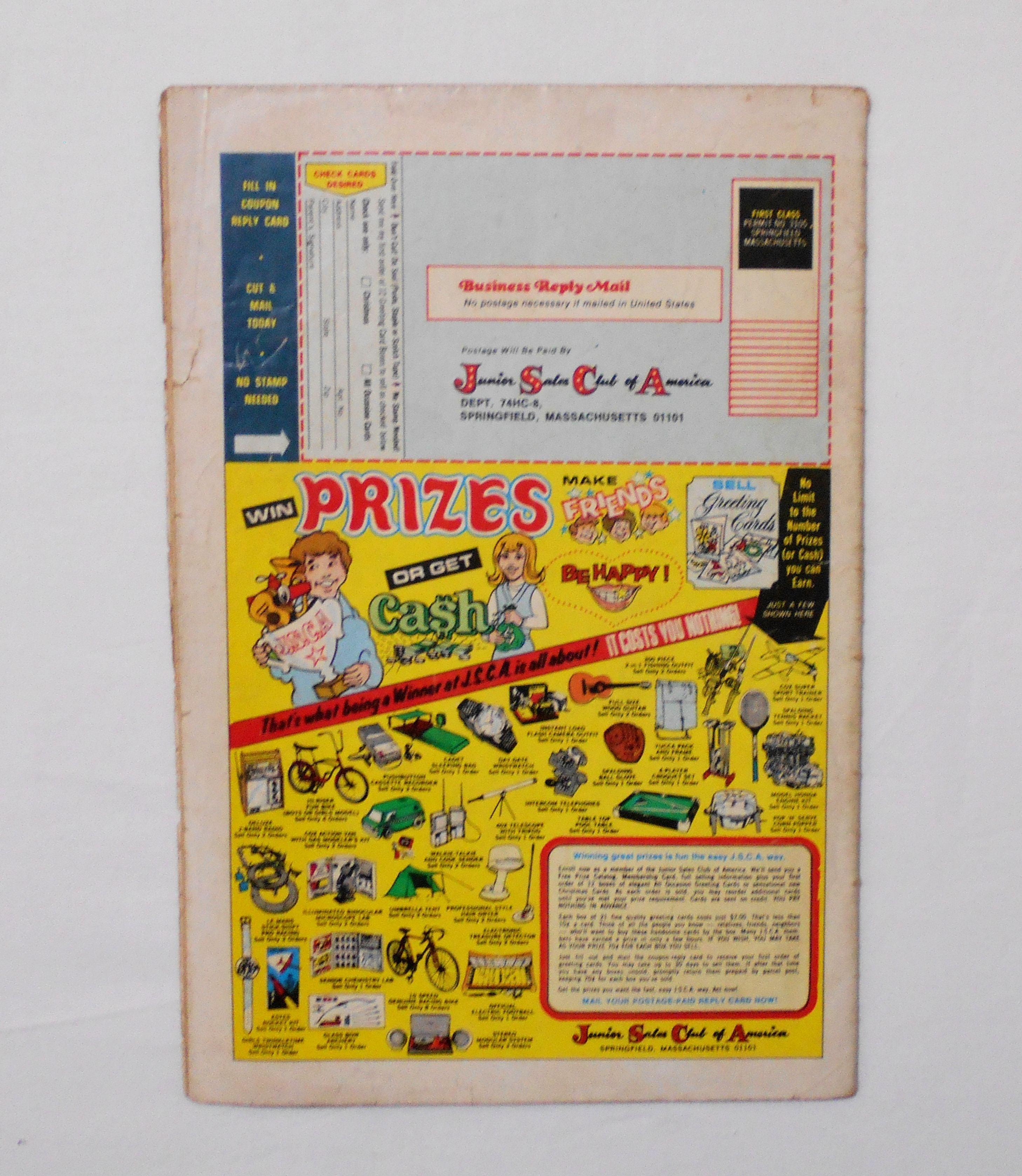 多少の擦れやシワ、黄ばみ、紙ジミ、角や端の傷みや折れ、破れ等があり、表紙の傷みが目立ち、経年に伴う使用感は強めと言えます。1970年代の輸入中古コミックですので、その点を考慮頂ければと思います。中は黄ばんでいますが、目立った汚れやシミ等はなく、おおむねきれいですので、読むのに支障はございません。新品同様の美品をお求めの方や、古書にご理解を頂けない方にお薦めは出来ません。