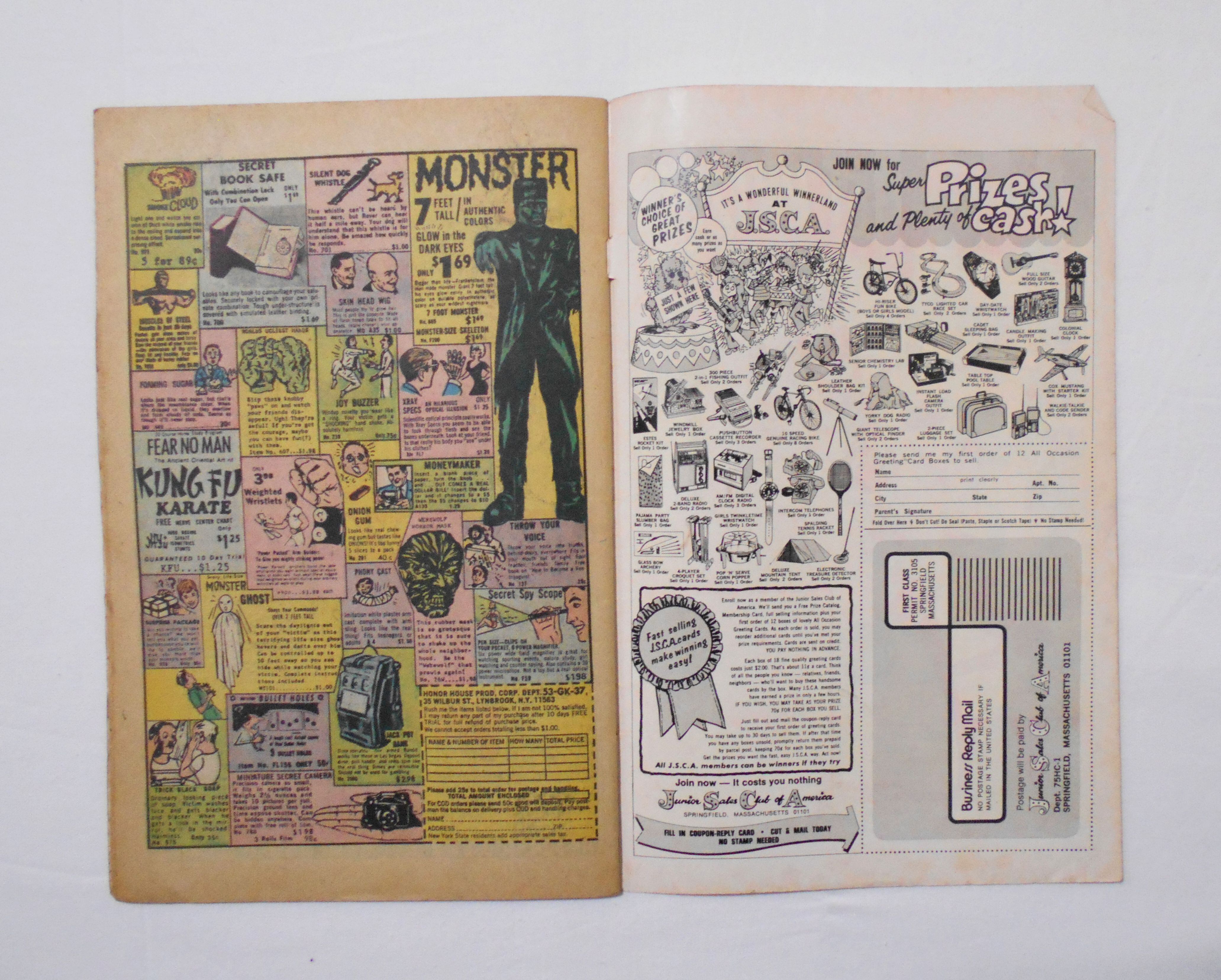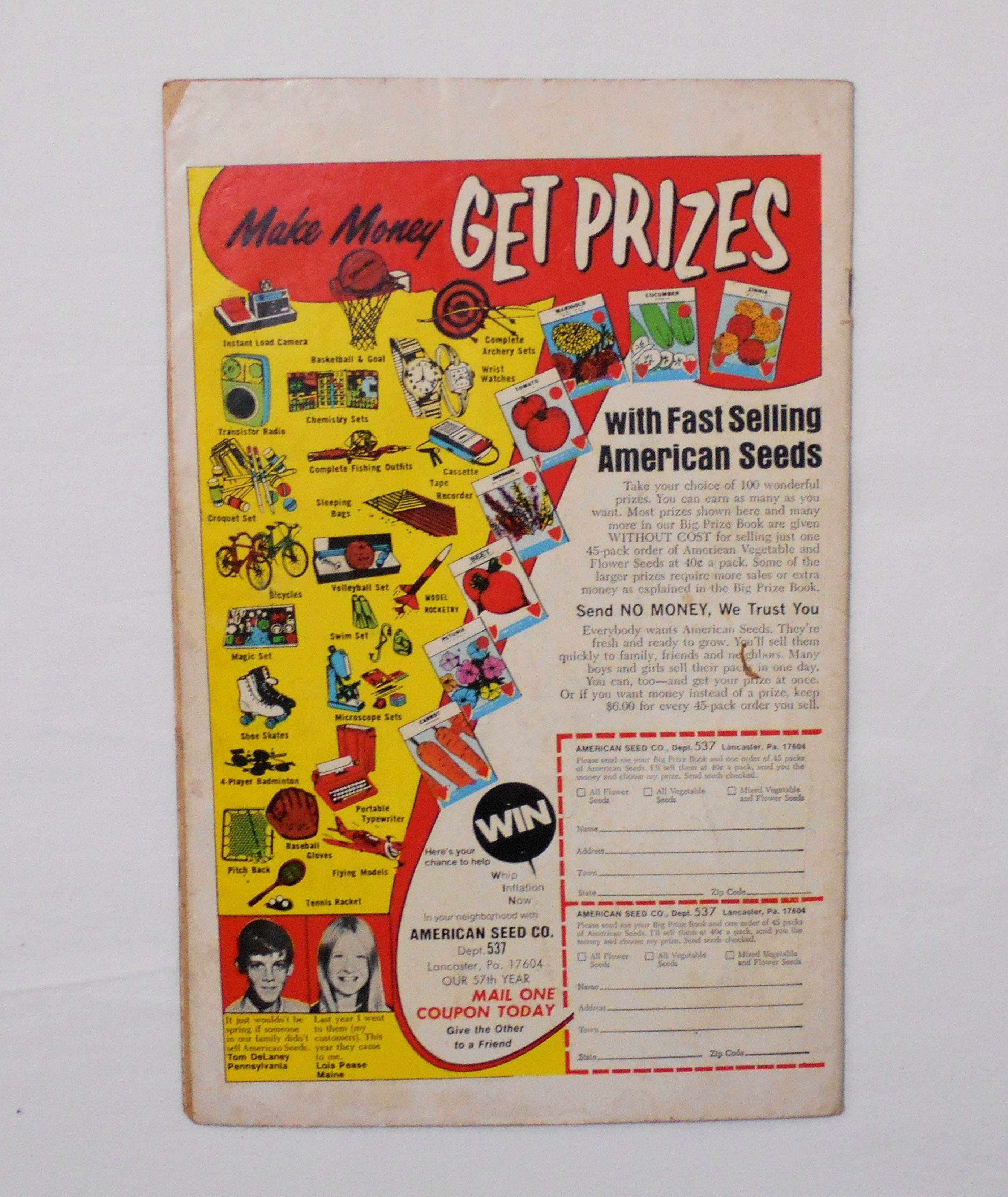 多少の擦れやシワ、黄ばみ、紙ジミ、角や端の傷みや折れ、微破れ等があり、経年に伴う使用感はやや強めと言えます。1970年代の輸入中古コミックですので、その点を考慮頂ければと思います。中は黄ばんでおり、端余白部分に汚れのあるページもございますが、ページの殆どは、目立った汚れやシミ等はなく、おおむねきれいですので、読むのに支障はございません。新品同様の美品をお求めの方や、古書にご理解を頂けない方にお薦めは出来ません。