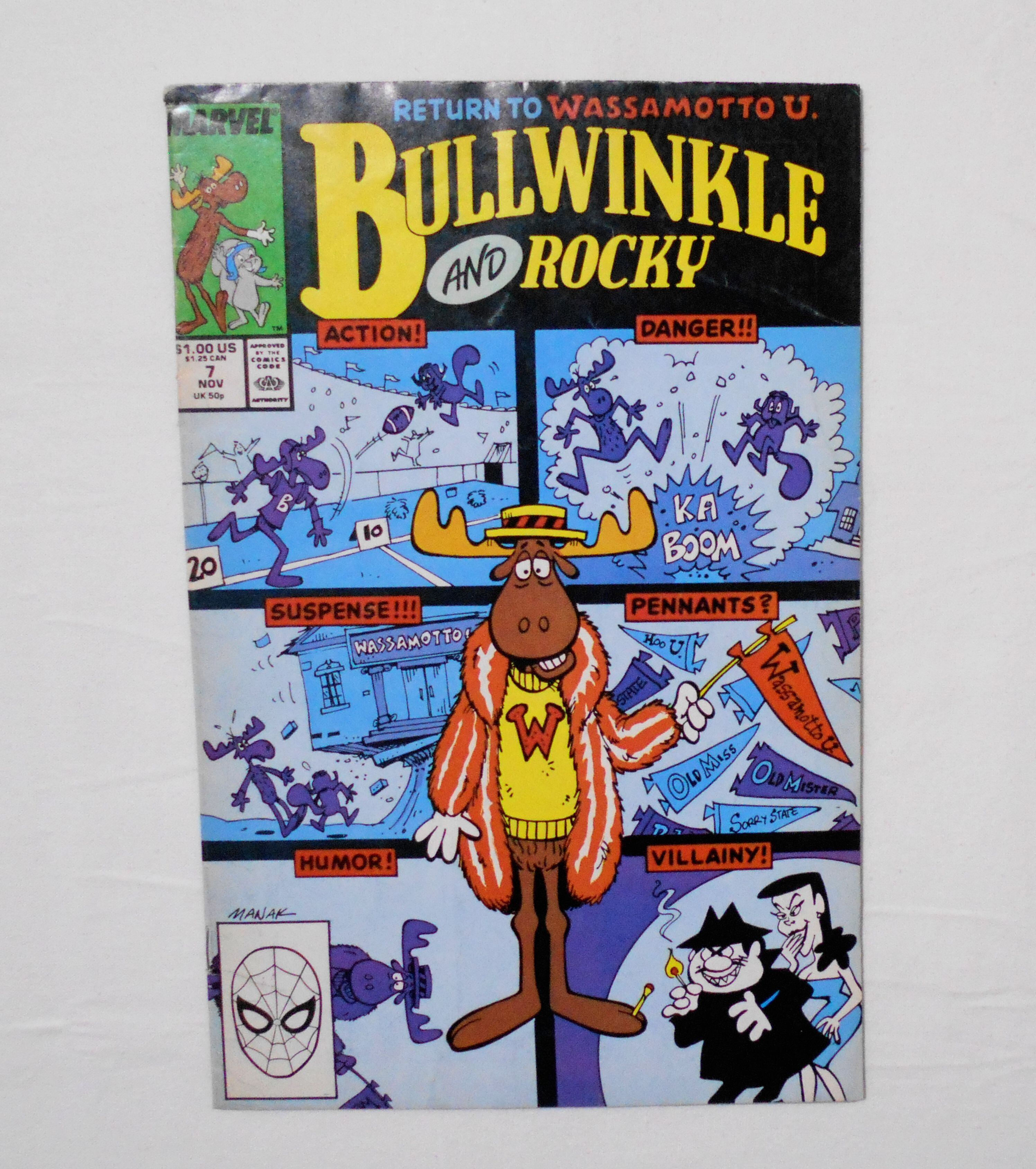 【BULLWINKLE AND ROCKY】 VOL.1 NO.7 NOV. 1988◆中古アメリカン・コミック。英文表記の洋書となります。◆カラー 32ページ 大きさ約26×17センチ◆MARVEL COMICS◆P.A.T. WARD