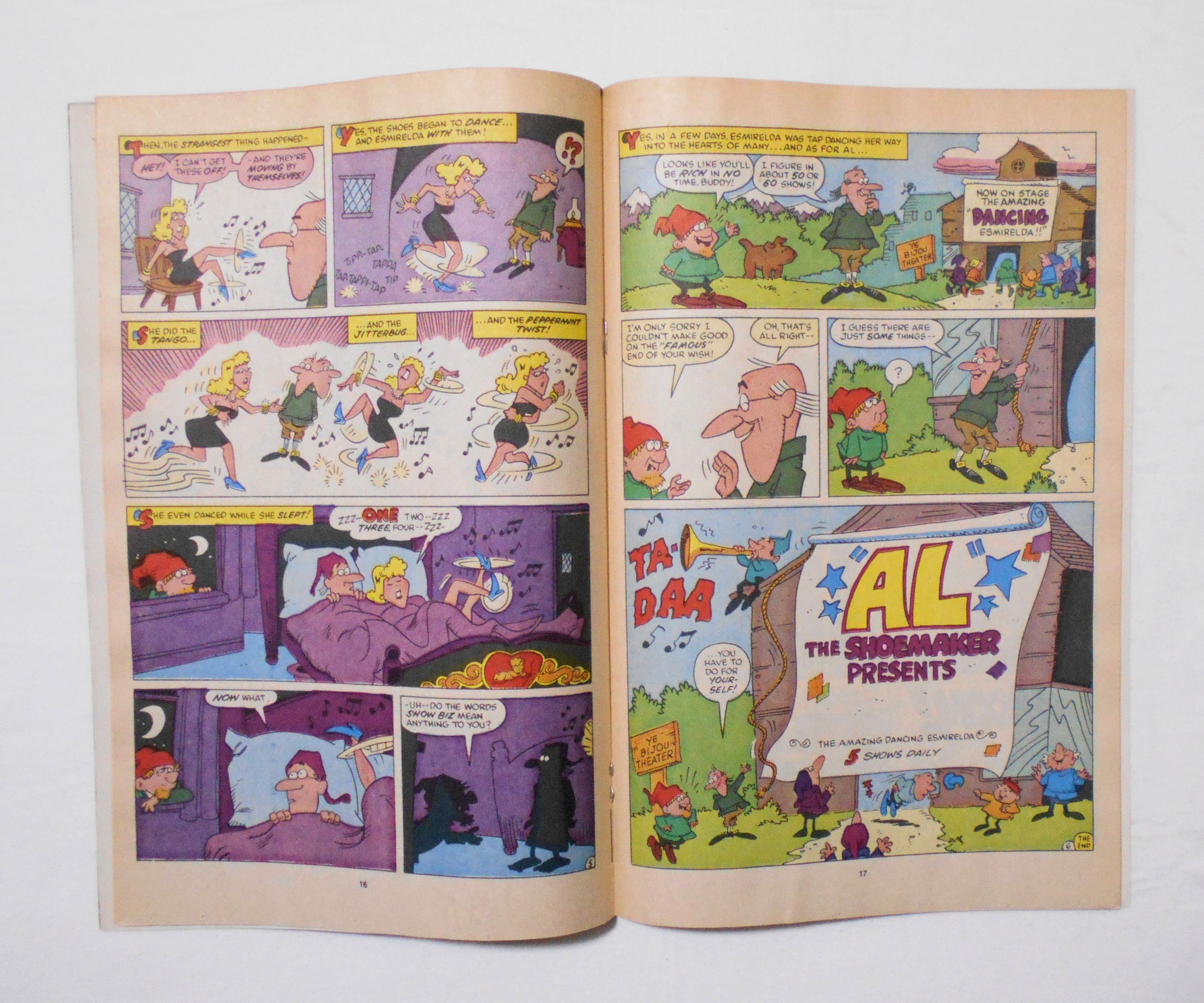 裏表紙の右上角に値札シールを剥がした粘着跡が残っており、表面が剥がれています。1ページ目の上端の余白部分(少しタイトル・バックにかかっていますが)にスタンプが押してあります。他、多少の擦れやシワ、黄ばみ、紙ジミ、角や端の傷みや折れ等があり、経年に伴う使用感はやや強めと言えますが、1980年代の輸入中古コミックですので、その点を考慮頂ければと思います。中は多少黄ばんでいますが、目立った汚れやシミ等はなく、おおむねきれいな状態ですので、読むのに支障はございません。新品同様の美品をお求めの方や、古書にご理解を頂けない方にお薦めは出来ません。