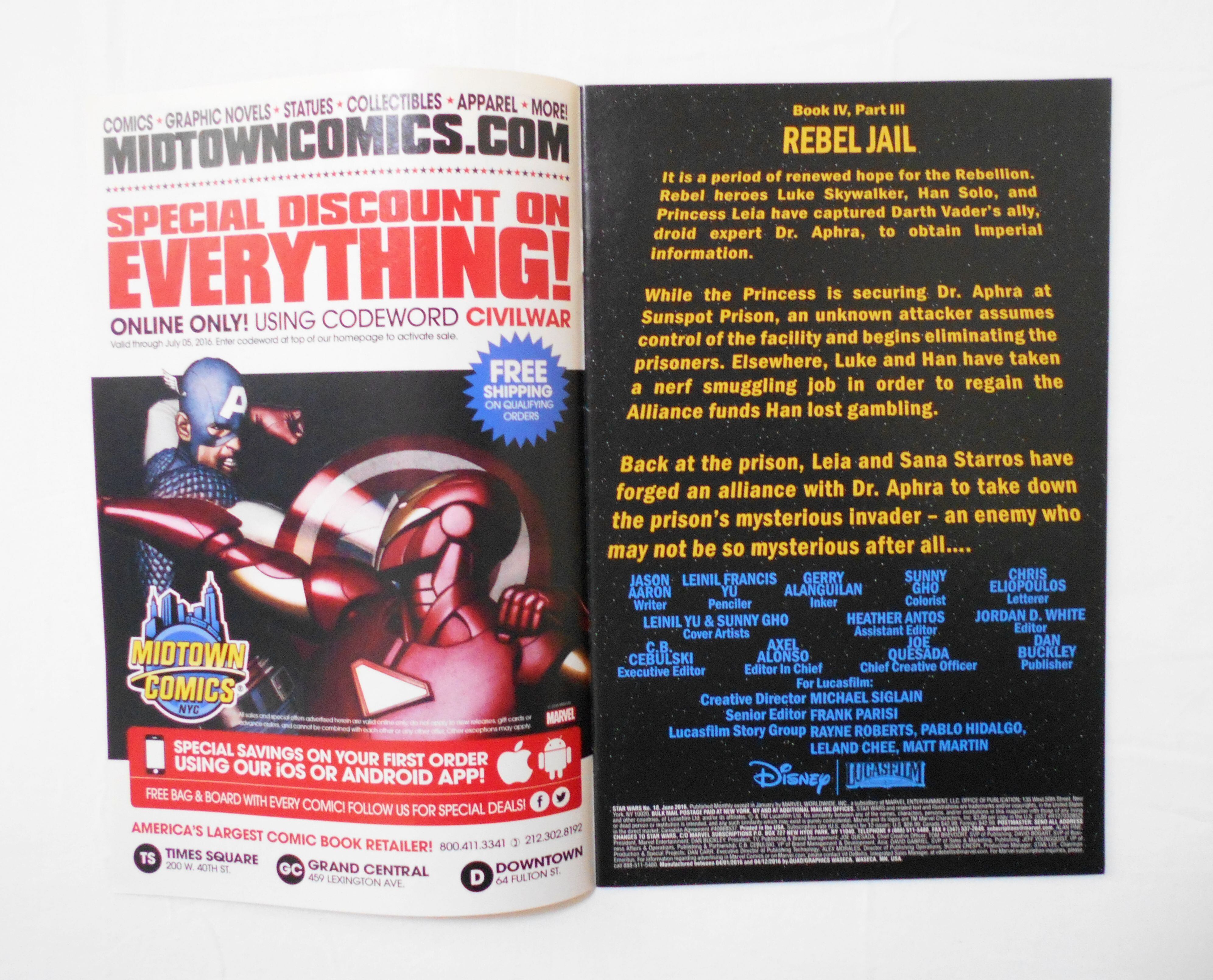 【STAR WARS】 NO.18 JUNE 2016◆BOOK IV, PART III REBEL JAIL◆28ページ+見開き広告ページ カラー 大きさ約26×17センチ◆MARVEL WORLDWIDE, INC.◆LUCASFILM LTD.