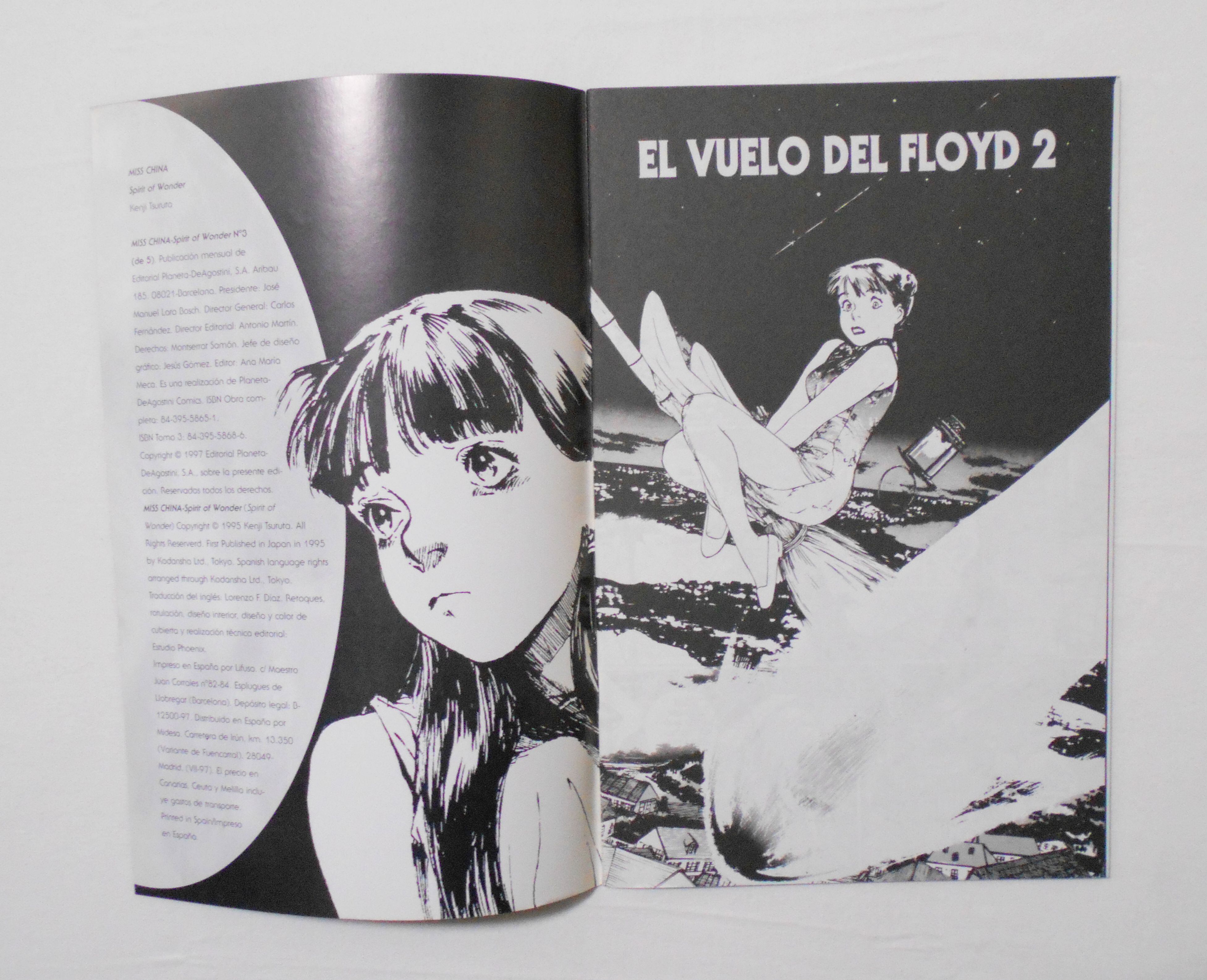 【MISS CHINA: SPIRIT OF WONDER】NO.3 DE 5 (NO.3 of L5)◆スペイン版コミック。◆鶴田謙二作品『スピリット・オブ・ワンダー:チャイナさんの願事 フロイド博士と重力遮断装置』を収録。◆スペイン語表記。左右の開きが逆になっており、それに伴い印刷も全て逆(鏡写し)です。◆32ページ 白黒 大きさ約26×17センチ。◆COPYRIGHT 1997年 by EDITORIAL PLANETA-DeAGOSTINI COMICS, COPYRIGHT 1995 by KENJI TSURUTA(鶴田謙二), FIRST PUBLISHED in JAPAN in 1995 by KOHDANSHA LTD.(講談社)