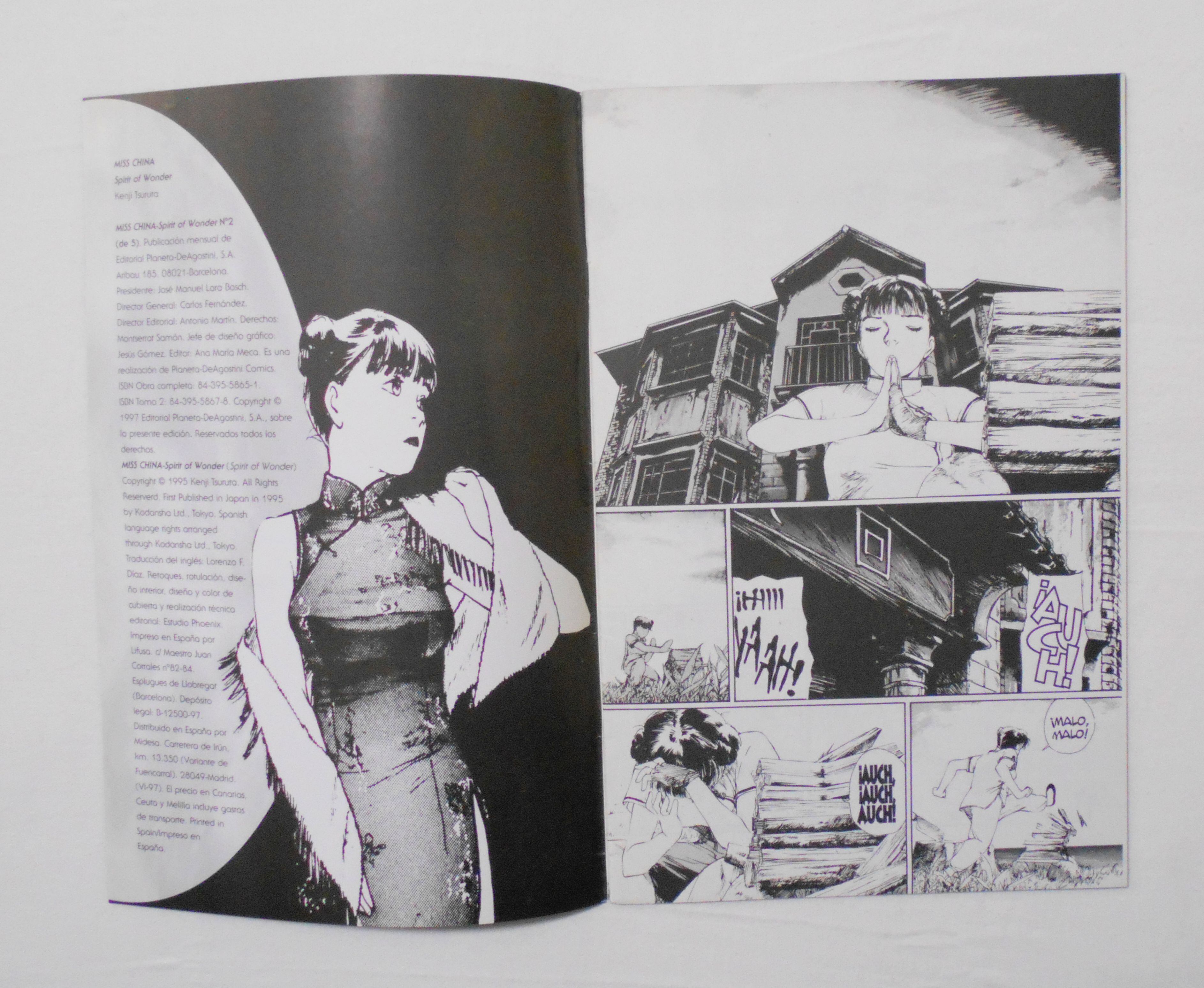 【MISS CHINA: SPIRIT OF WONDER】NO.2 DE 5 (NO.2 of L5)◆スペイン版コミック。◆鶴田謙二作品『スピリット・オブ・ワンダー:チャイナさんの憂鬱 ブレッケンリッジ博士と空間反射鏡』の後半を収録。◆スペイン語表記。左右の開きが逆になっており、それに伴い印刷も全て逆(鏡写し)です。◆32ページ 白黒 大きさ約26×17センチ。◆COPYRIGHT 1997年 by EDITORIAL PLANETA-DeAGOSTINI COMICS, COPYRIGHT 1995 by KENJI TSURUTA(鶴田謙二), FIRST PUBLISHED in JAPAN in 1995 by KOHDANSHA LTD.(講談社)