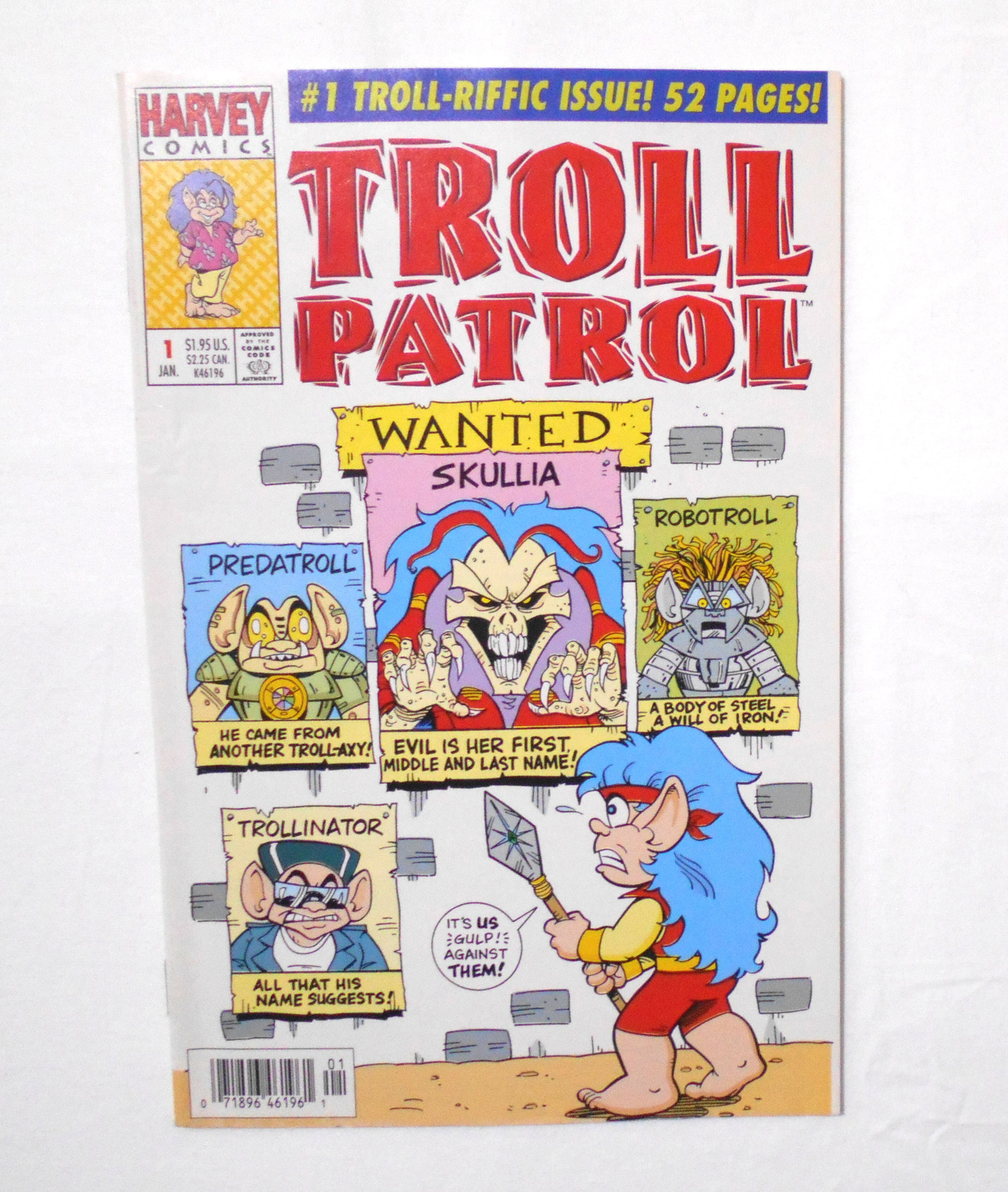 【トロール・パトロール TROLL PATROL】 JAN. 1993NO.1◆中古アメリカン・コミック。英文表記の洋書となります。◆48ページ(表紙には52ページと記載されていますが、それは表紙も含めてのページ数です。紛失ページはございません) フルカラー 大きさ約26×17センチ◆HARVEY COMICS