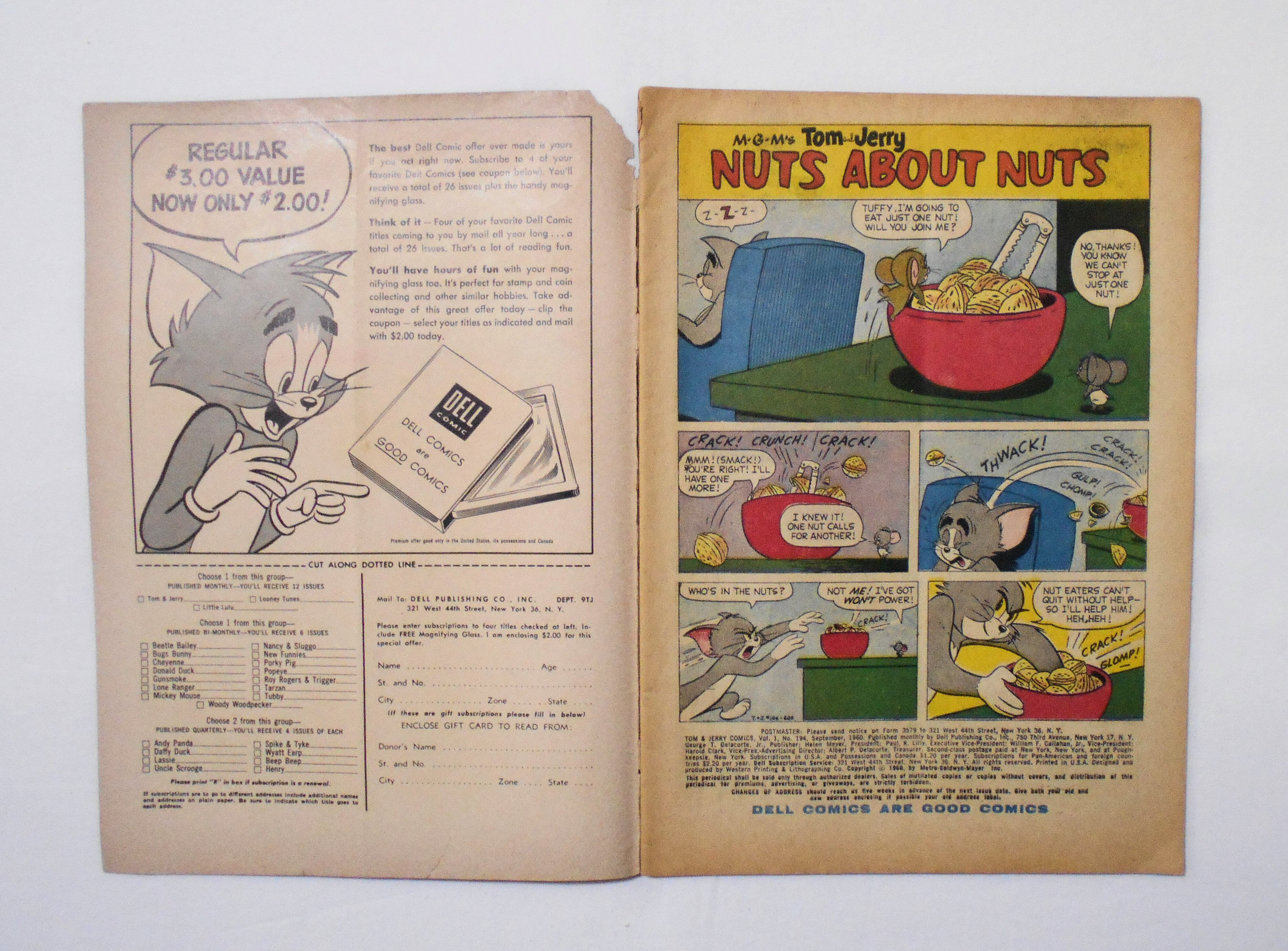 【MGM'S TOM AND JERRY COMICS トム&ジェリー/トムとジェリー】 VOL.1 NO.194 SEPT. 1960◆中古アメリカン・コミック。英文表記の洋書となります。◆32ページ フルカラー 大きさ約26×18.5センチ。◆COPYRIGHT 1960 by METRO-GOLDWYN-MAYER, INC.◆DELL PUBLISHING CO., INC.◆WESTERN PRINTING & LITHOGRAPHING CO.