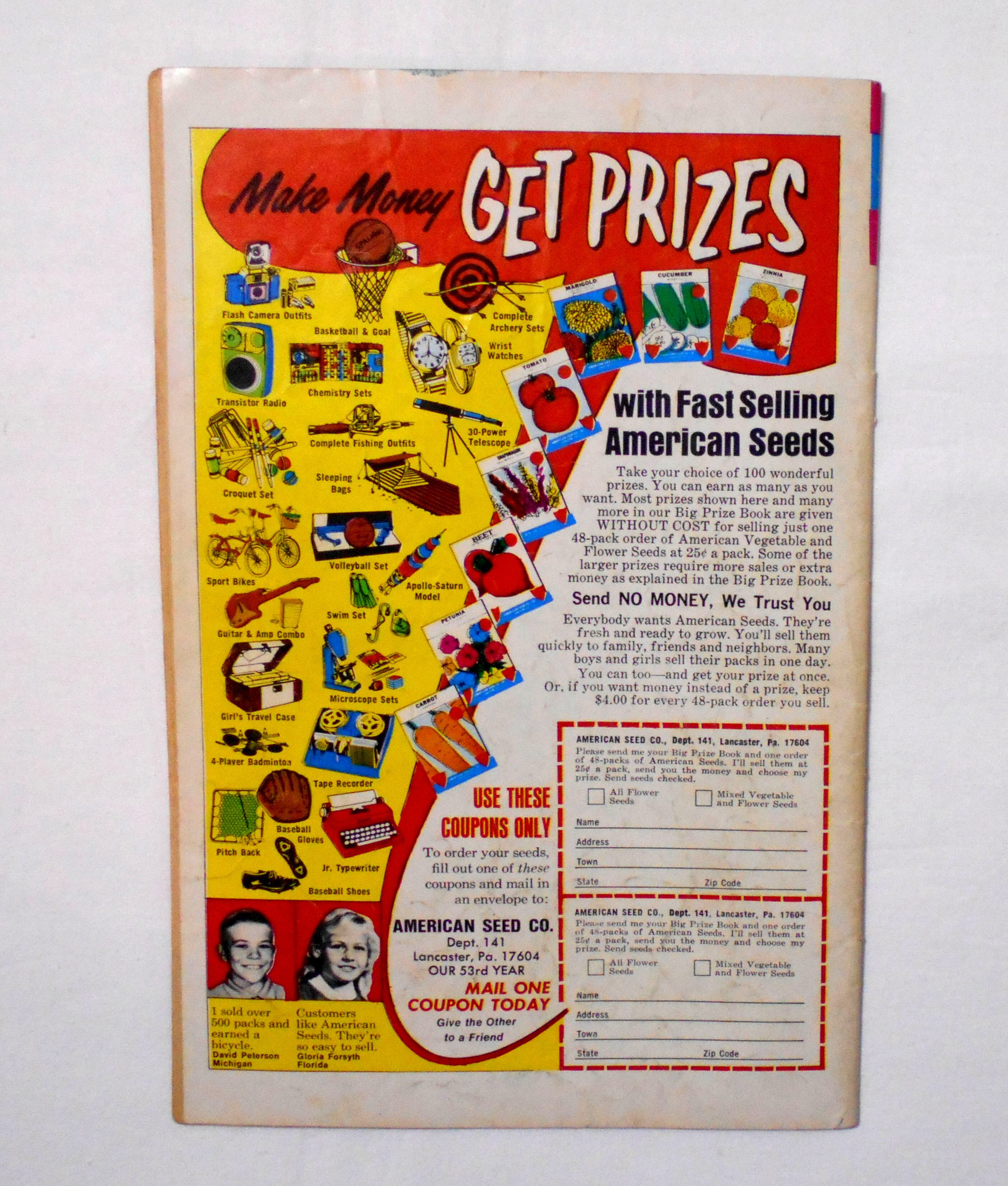 多少の擦れやシワ、黄ばみ、角や端の傷みや折れ、微破れ等があり、表紙の折れやシワが目立ち、経年に伴う使用感はやや強めと言えますが、1970年代の輸入中古コミックですので、その点を考慮頂ければと思います。中は目立った汚れやシミ等はなく、おおむねきれいな状態ですので、読むのに支障はございません。新品同様の美品をお求めの方や、古書にご理解を頂けない方、また古い本特有の匂いもしますので気になる方にはお薦め致しかねます。何卒ご了承くださいませ。