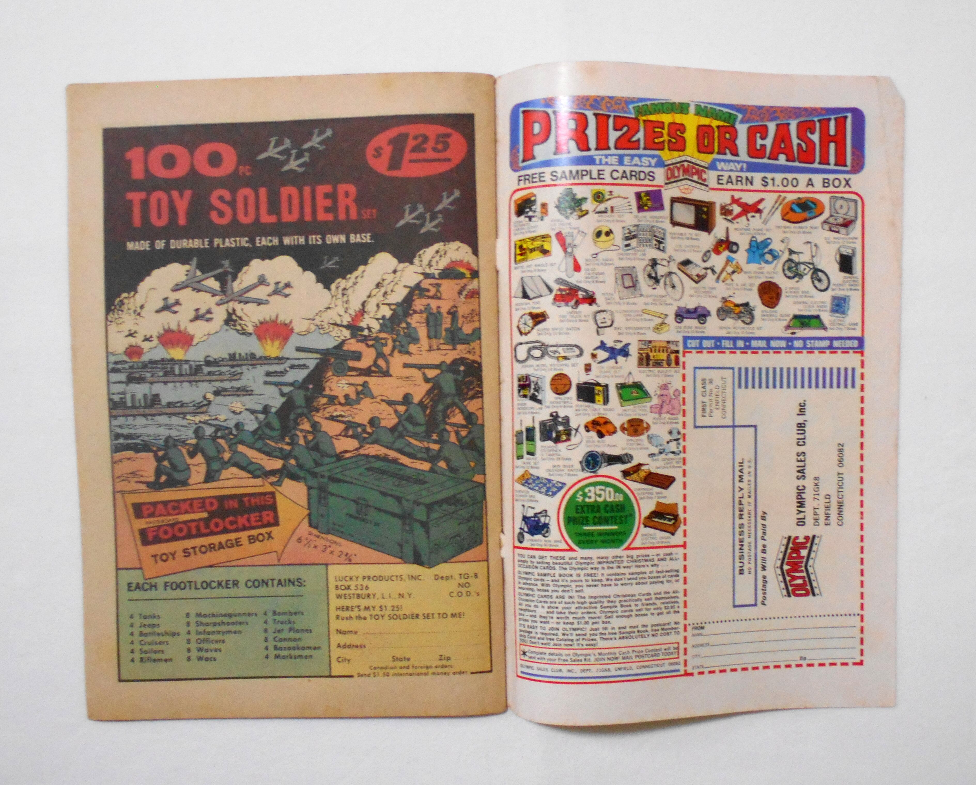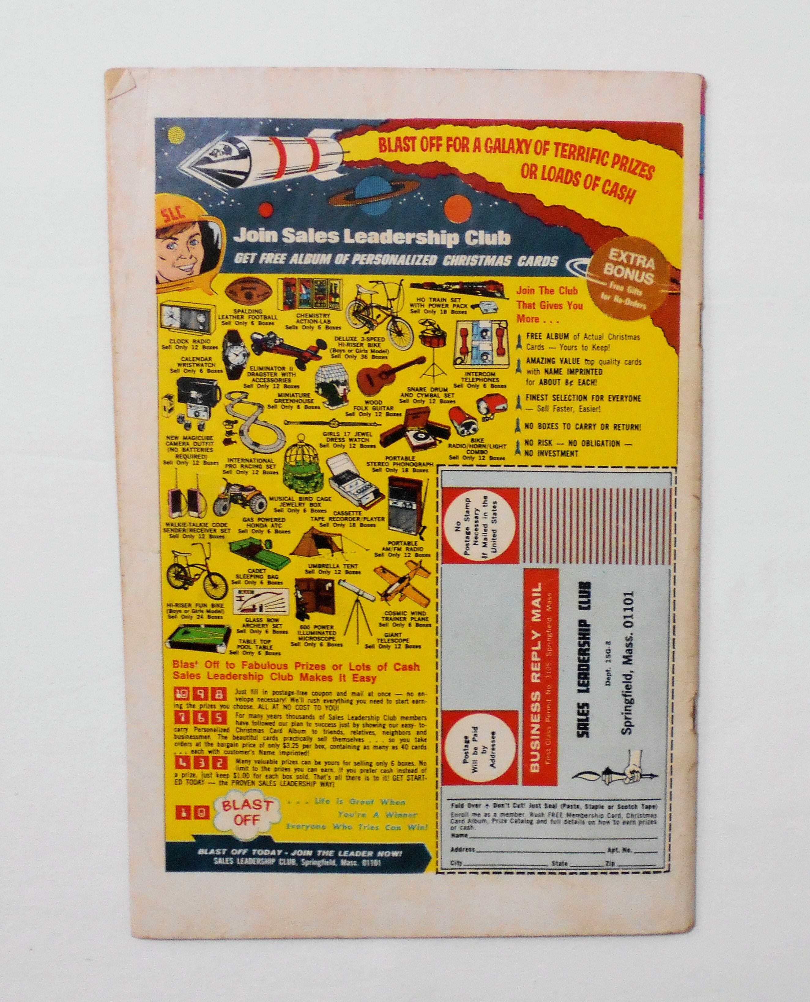 背から内側へ約0.5センチ縦方向に折れ目が付いています。表紙の上下ホッチキス部分が少し破れており、今は表紙と本体が付いていますが、そのうちに外れてしまうと思います。他、多少の擦れやシワ、黄ばみ、角や端の傷みや折れ、微破れ等があり、表紙の傷みが目立ち、経年に伴う使用感はやや強めと言えますが、1970年代の輸入中古コミックですので、その点を考慮頂ければと思います。中は黄ばんでいますが、目立った汚れやシミ等はなく、おおむねきれいですので、読むのに支障はございません。新品同様の美品をお求めの方や、古書にご理解を頂けない方、また古い本特有の匂いもしますので気になる方にはお薦め致しかねます。何卒ご了承くださいませ。