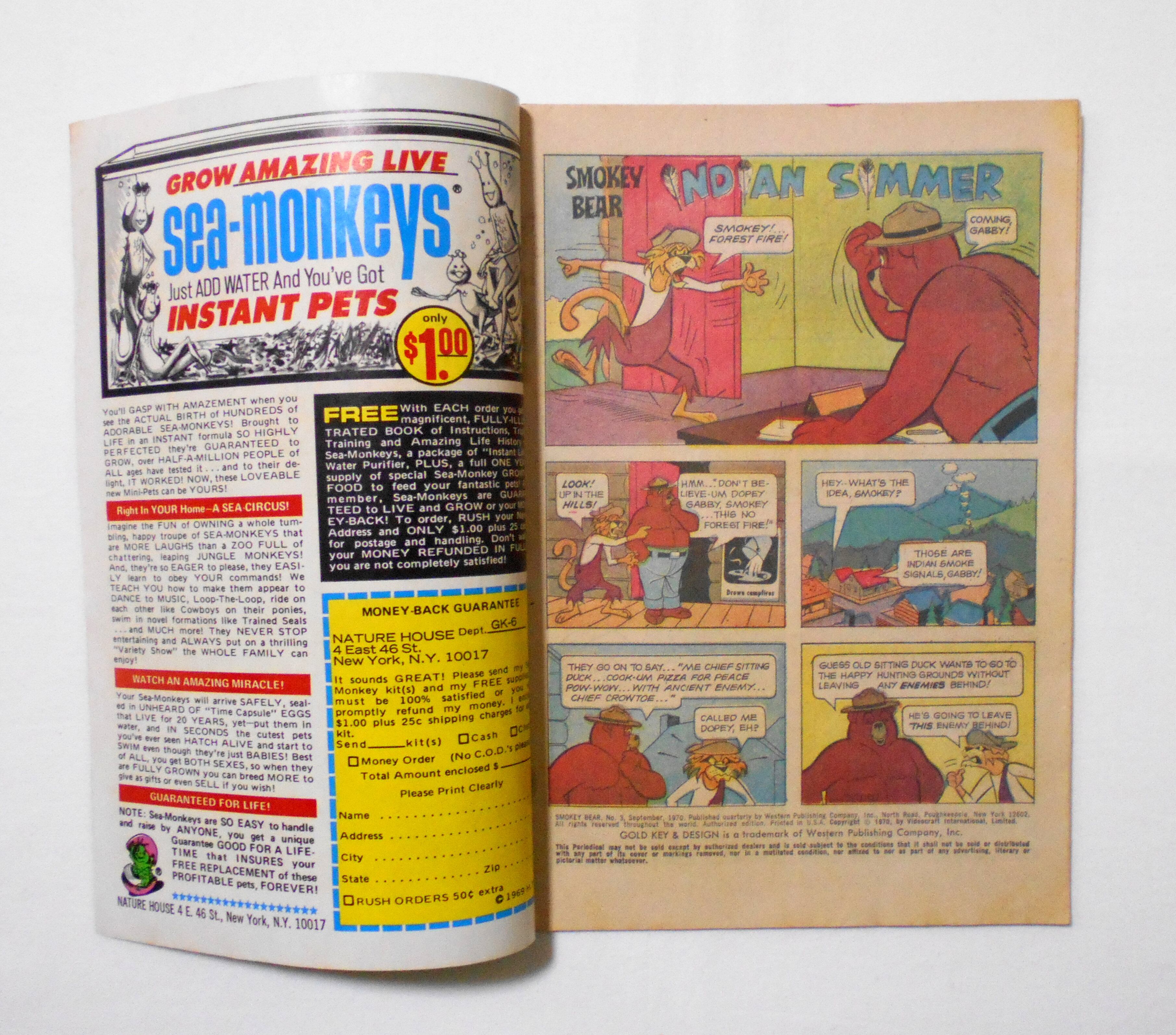 【スモーキーベア SMOKEY BEAR】 NO.3 SEPT. 1970◆中古アメリカン・コミック。英文表記の洋書となります。◆32ページ フルカラー 大きさ約26×17センチ◆COPYRIGHT 1970 by VIDEOCRAFT INTERNATIONAL, LIMITED◆WESTERN PUBLISHING COMPANY, INC.
