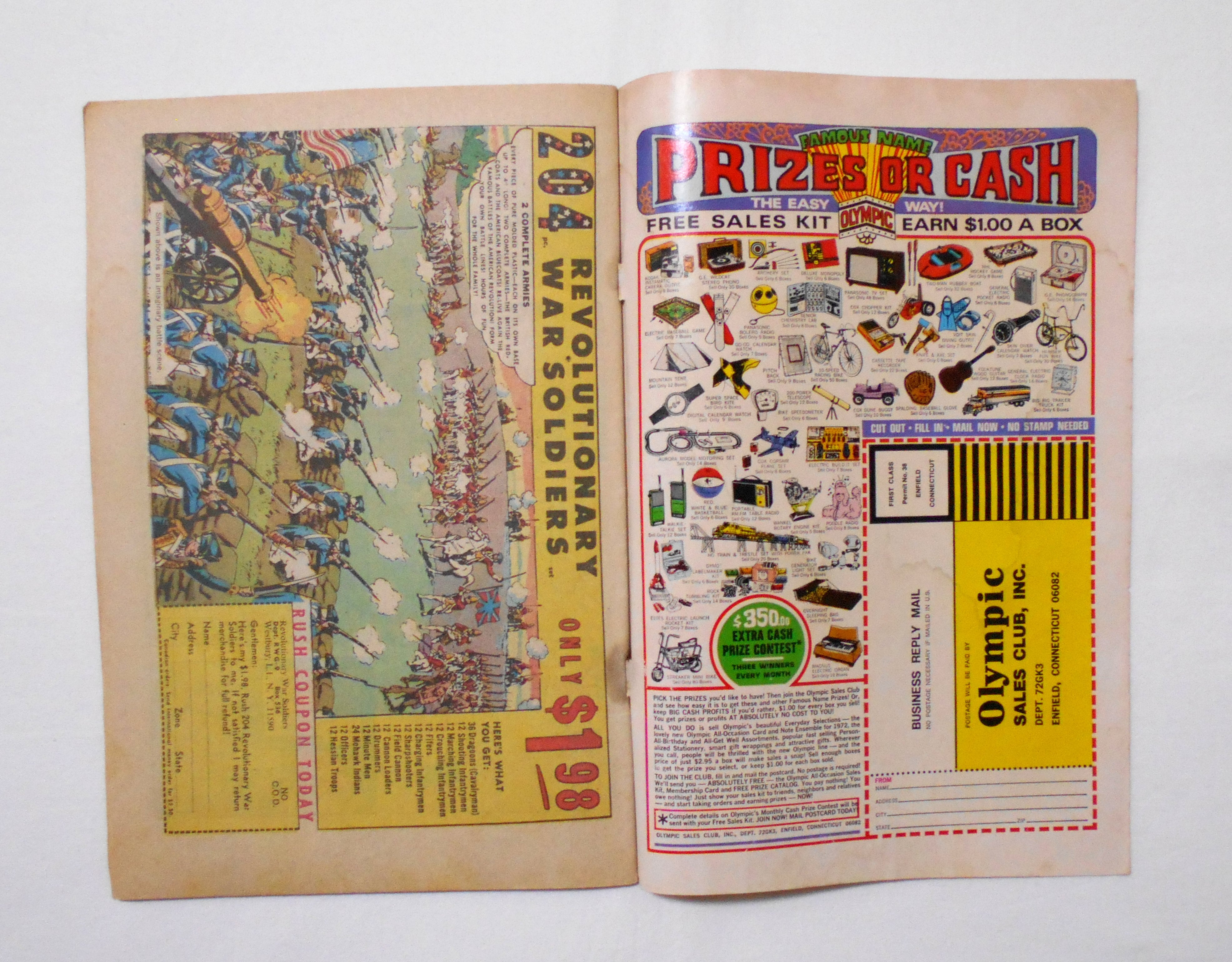背が湿気た(濡れた???)為か、ホッチキスの錆が周りに染み出し、黒く染まっています。表紙と小口側に薄く濡れジミ跡があります。表紙の背近くと下端が擦れ、表面のペイントが剥がれています。他、多少の擦れやシワ、黄ばみ、紙ジミ、角や端の傷みや折れ等があり、経年に伴う使用感は否めませんが、1970年代の輸入中古コミックですので、その点を考慮頂ければと思います。中は黄ばんでいますが、目立った汚れやシミ等は無く、読むのに支障はございません。新品同様の美品をお求めの方や、古書にご理解を頂けない方、また古い本特有の匂いもしますので気になる方にはお薦め致しかねます。何卒ご了承くださいませ。