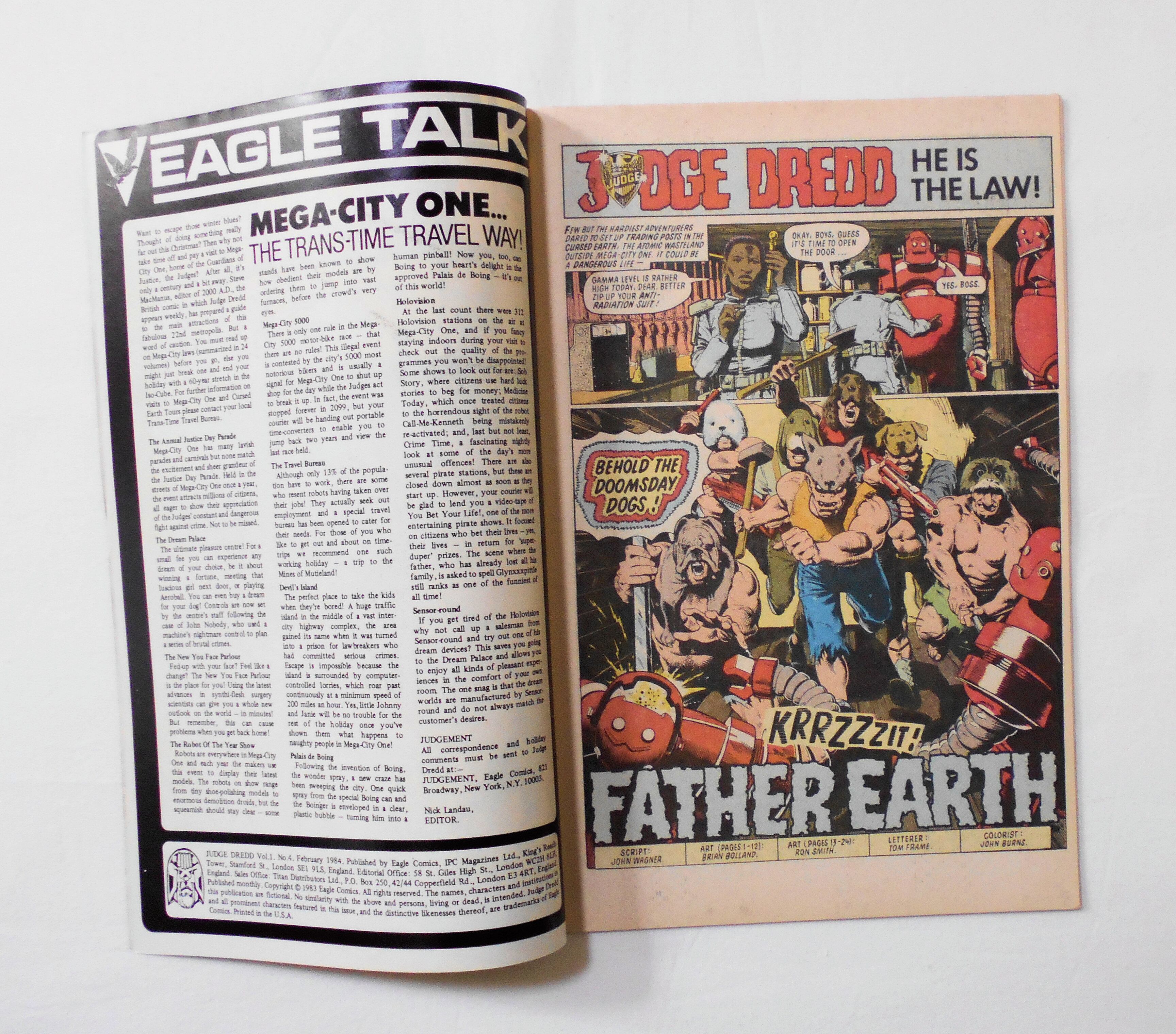 【JUDGE DREDD ジャッジ・ドレッド】VOL.1 NO.4 FEB. 1984◆中古アメリカン・コミック。英文表記の洋書となります。◆32ページ フルカラー 大きさ約26×17センチ◆EAGLE COMICS, IPC MAGAZINES LTD.◆TITAN DISTRIBUTORS LTD.