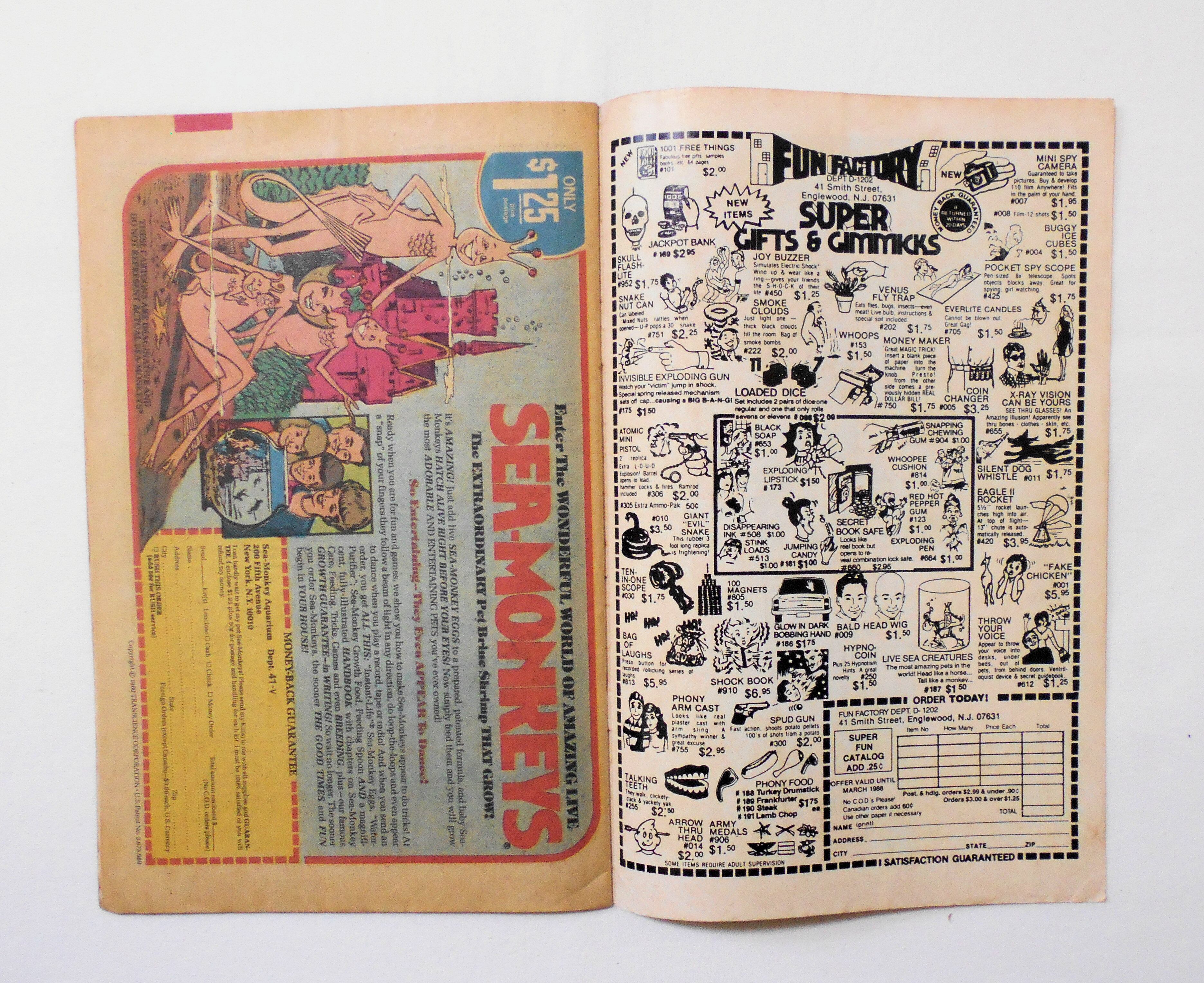 多少の擦れやシワ、黄ばみ、紙ジミ、角や端の傷みや折れ、微破れ等があり、経年に伴う使用感はやや強めと言えますが、1980年代の輸入中古コミックですので、その点を考慮頂ければと思います。中は黄ばんでいますが、目立った汚れやシミ等はなく、読むのに支障はございません。新品同様の美品をお求めの方や、古書にご理解を頂けない方にお薦めは出来ません。