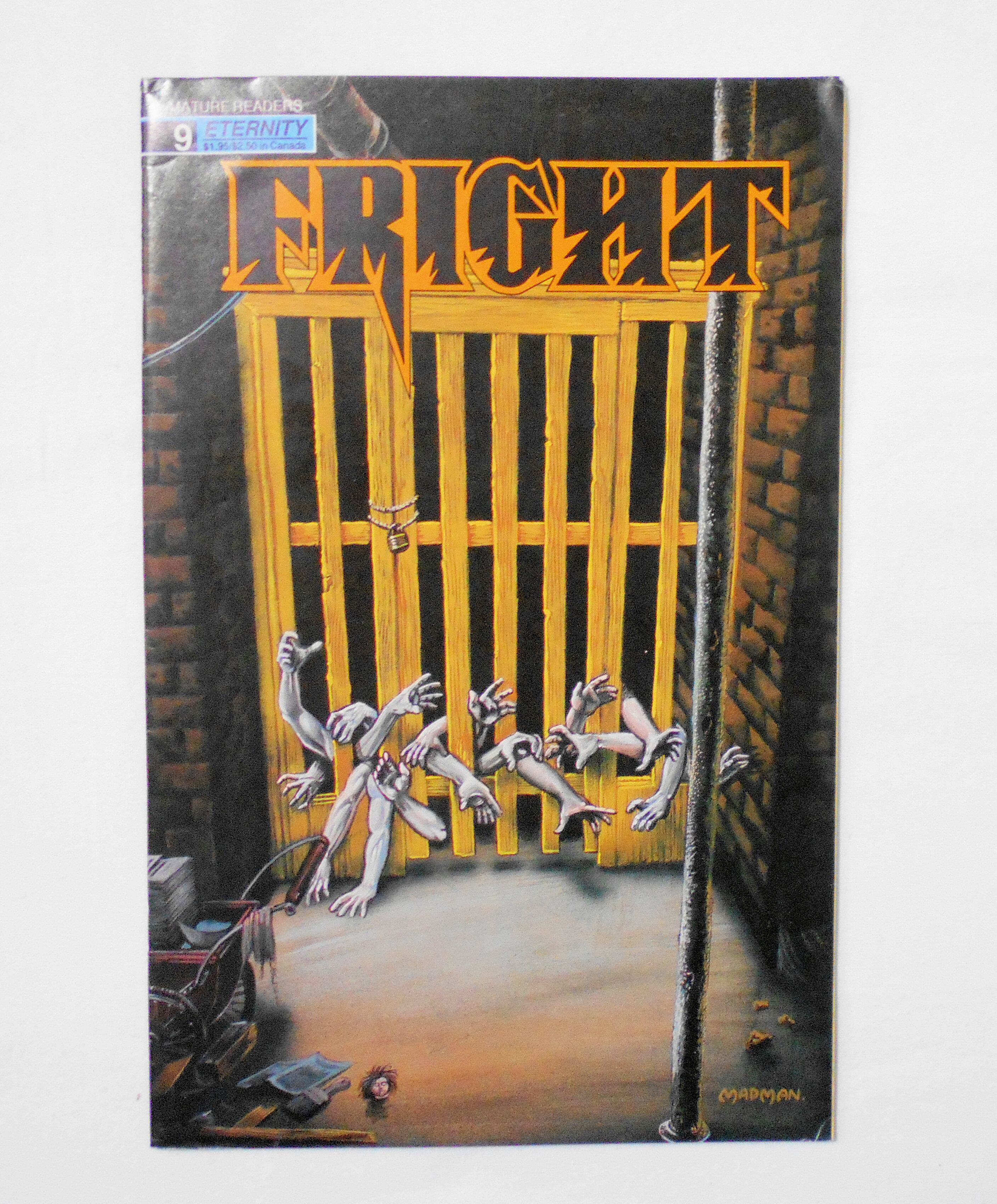 【FRIGHT】 #9 APRIL 1989◆中古アメリカン・コミック。英文表記の洋書となります。◆32ページ 白黒 大きさ約26×17センチ◆ETERNITY COMICS/MALIBU GRAPHICS◆MATURE READERS◆収録タイトル: THE BUTCHERED AT EARTH'S CORE!!!, SNAKEWIZARD!, MESSRS, CRYPTS AND GRAVES: UNDERTAKERS, THE BLACK ORCHIDS