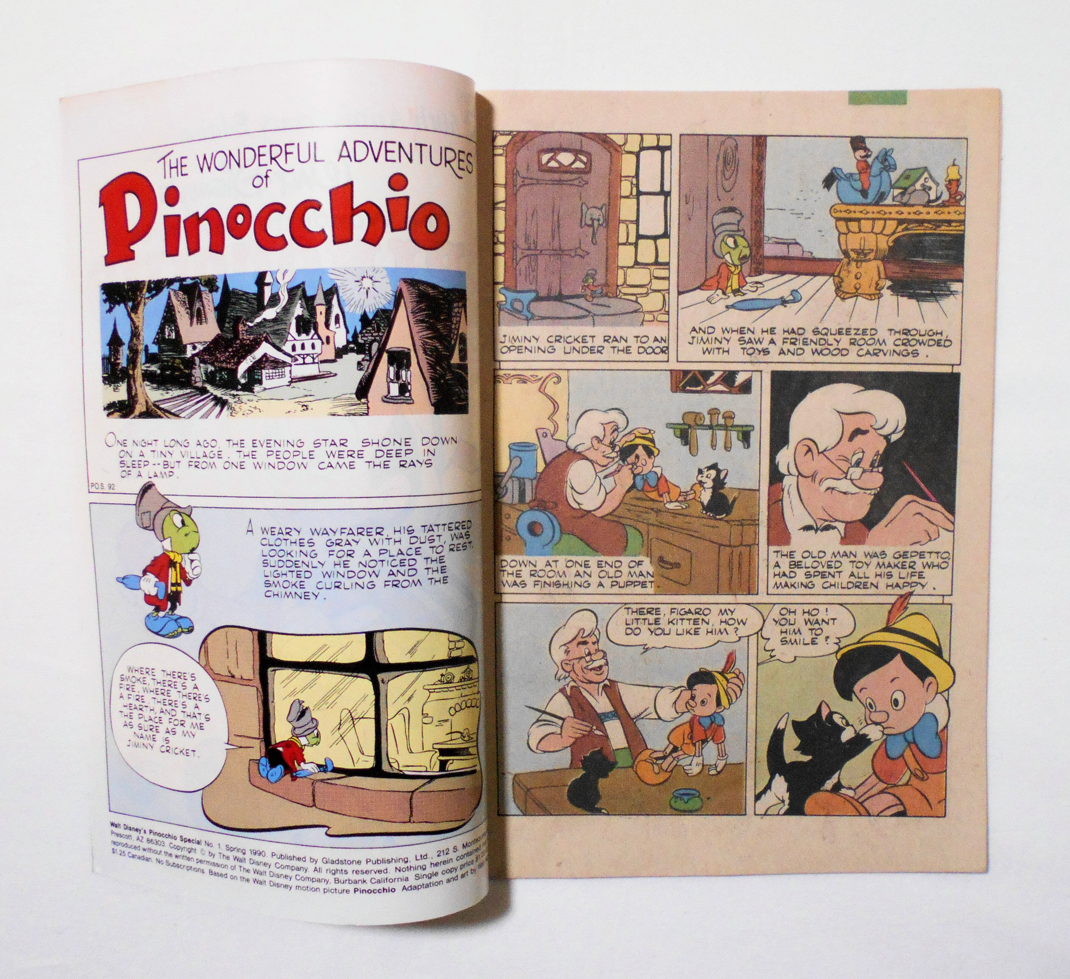 【WALT DISNEY'S THE WONDERFUL ADVENTURES OF PINOCCHIO - 50th ANNIVERSARY EDITION】 NO.1 SPRING 1990◆中古アメリカン・コミック。英文表記の洋書となります。◆32ページ フルカラー 大きさ約26×17センチ◆GLADSTONE PUBLISHING, LTD◆THE WALT DISNEY COMPANY