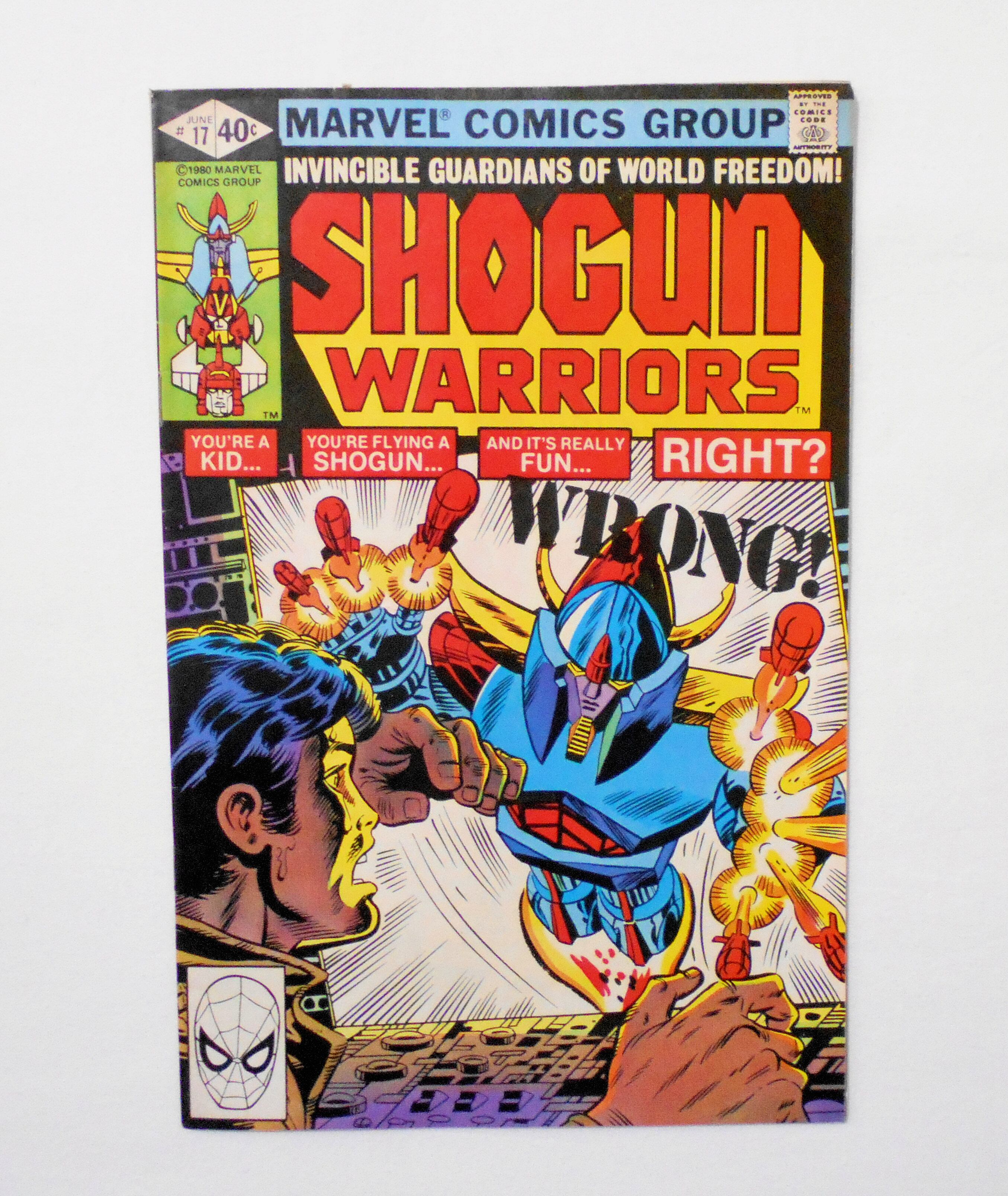 【SHOGUN WARRIORS ショーグン・ウォリアーズ】 VOL.1 NO.17 JUNE 1980◆中古アメリカン・コミック。英文表記の洋書となります。◆32ページ カラー 大きさ約26×17センチ◆MARVEL COMIC GROUP◆HIROMI PRO/TOEI(東映)◆REIJI MATSUMOTO(松本零士)/TOEI ANIMATION(東映アニメーション)◆TOHOKUSHINSHA(東北新社)◆MATTEL,INC.◆米トイ・メーカー<マテル社>から発売された超合金シリーズ『ショーグン・ウォリアーズ』の人気にあやかり、マーベルより出版されたコミック・シリーズ。『惑星ロボ ダンガードA』、『勇者ライディーン』、『超電磁ロボ コン・バトラーV』が登場しますが、日本のアニメとは設定等が大幅に変更されたオリジナル・ストーリーです。