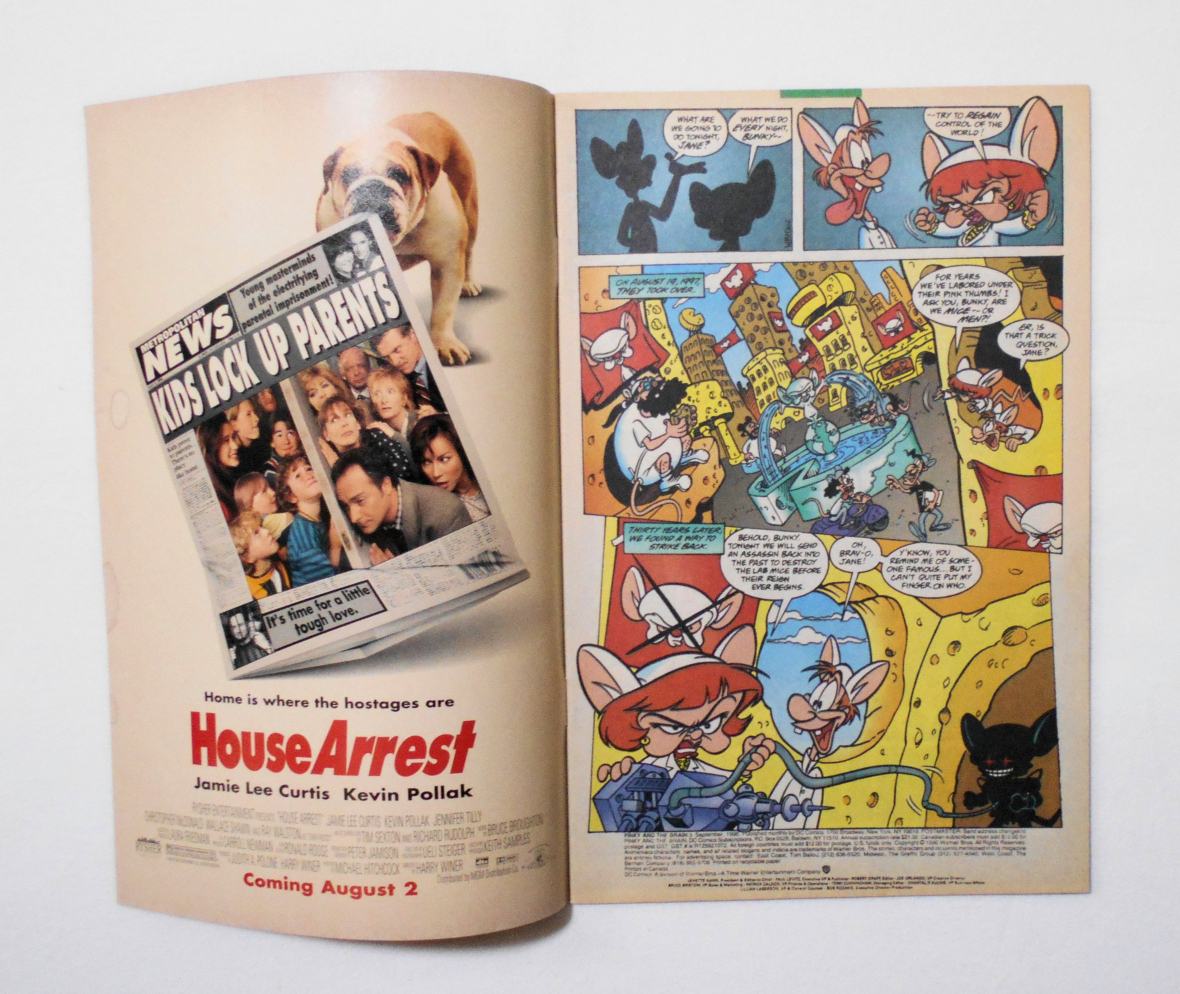 【PINKY AND THE BRAIN ピンキー&ブレイン】 #3 SEPT. 1996◆中古アメリカン・コミック。英文表記の洋書となります。◆32ページ フルカラー 大きさ約26×17センチ◆WARNER BROS. INC. - A TIME WARNER ENTERTAINMENT COMPANY◆DC COMICS