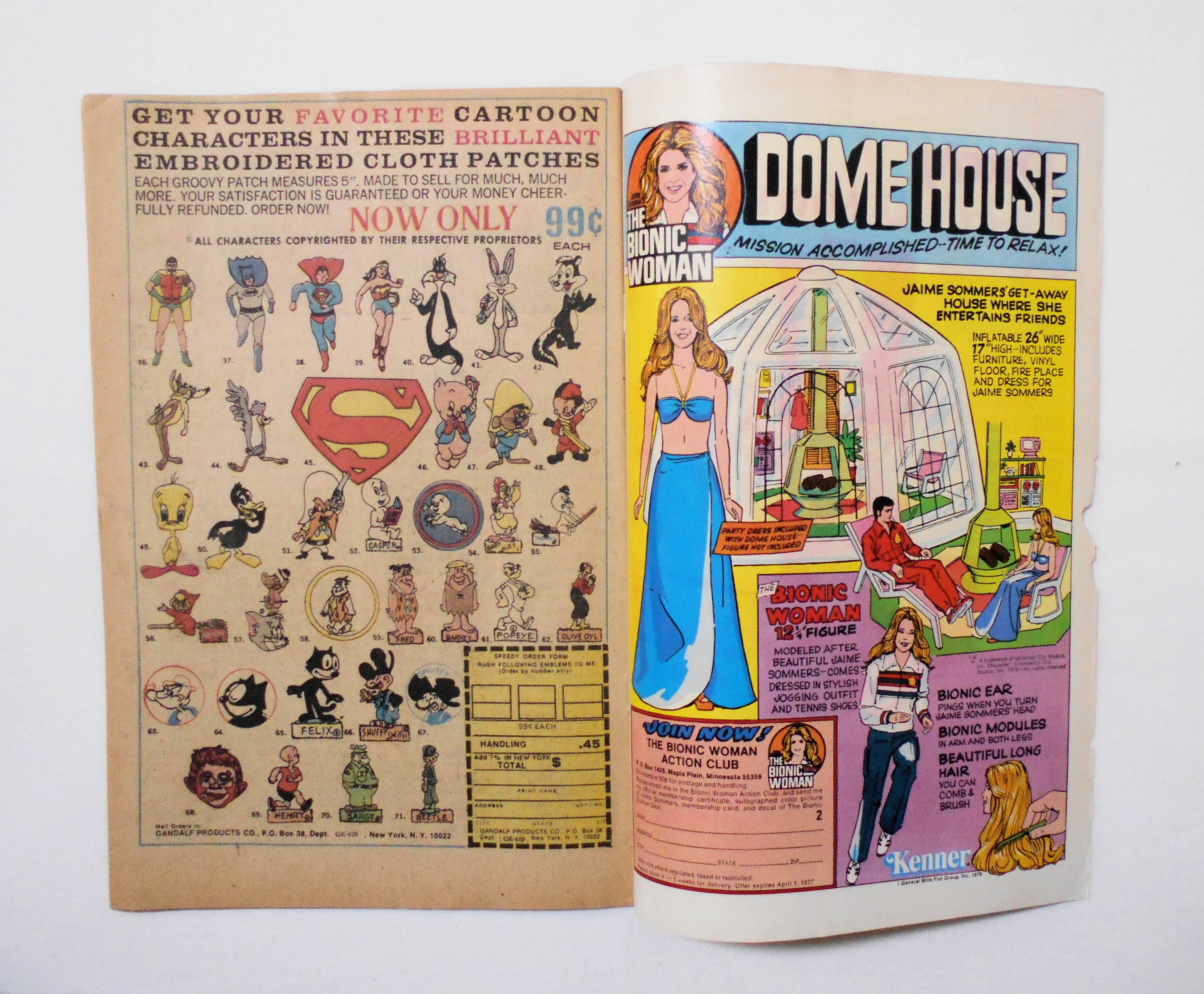 表紙の下端がボロボロ、ビリビリに破れています。他、多少の擦れやシワ、黄ばみ、角や端の傷みや折れ、微破れ等があり、経年に伴う使用感は強めと言え、保存状態は良くありません。1970年代の輸入中古コミックですので、その点を考慮頂ければと思います。中は黄ばんでいますが、目立った汚れやシミ等はなく、読むのに支障はございません。新品同様の美品をお求めの方や、古書にご理解を頂けない方にお薦めは出来ません。