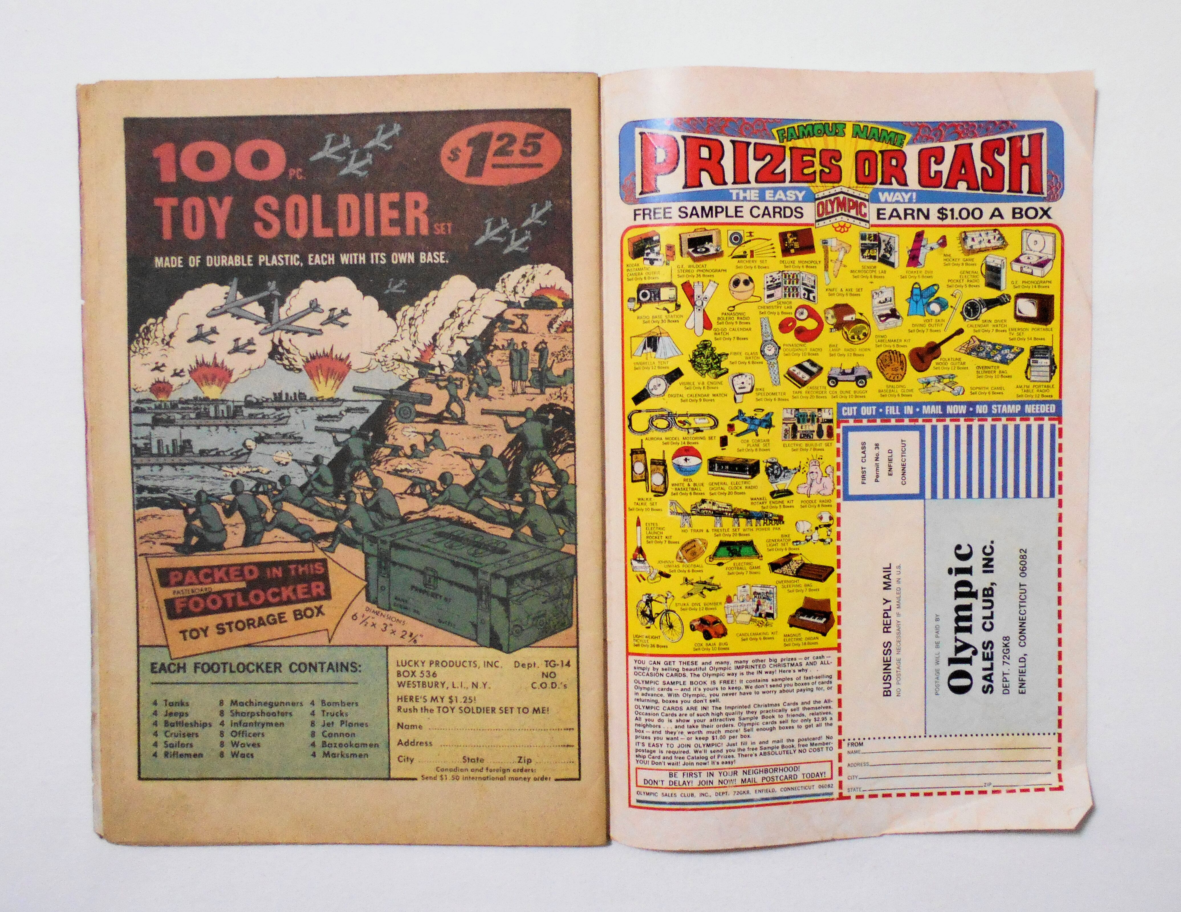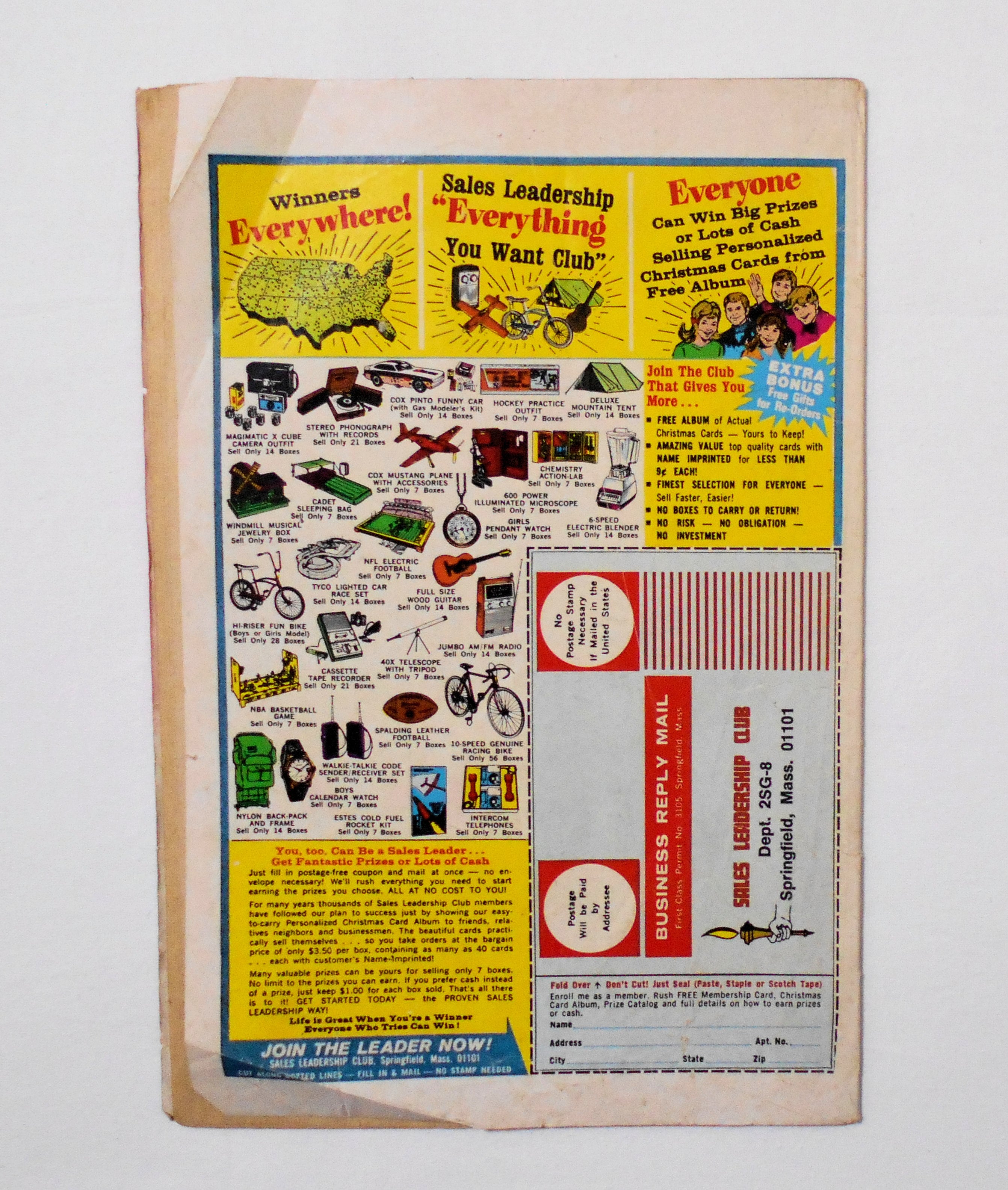 背の中心が数ミリ前寄りにズレており、その為本全体に歪みが生じています。表紙の上下ホッチキス部分が破れそうで、今は本体と付いていますが、そのうちに外れてしまいそうです。他、多少の擦れやシワ、黄ばみ、角や端の傷みや折れ、微破れ等があり、経年に伴う使用感は強めと言え、保存状態はあまり良くありませんが、1970年代の輸入中古コミックですので、その点を考慮頂ければと思います。中は目立った汚れやシミ等はなく、おおむねきれいな状態ですので、読むのに支障はございません。新品同様の美品をお求めの方や、古書にご理解を頂けない方にお薦めは出来ません。