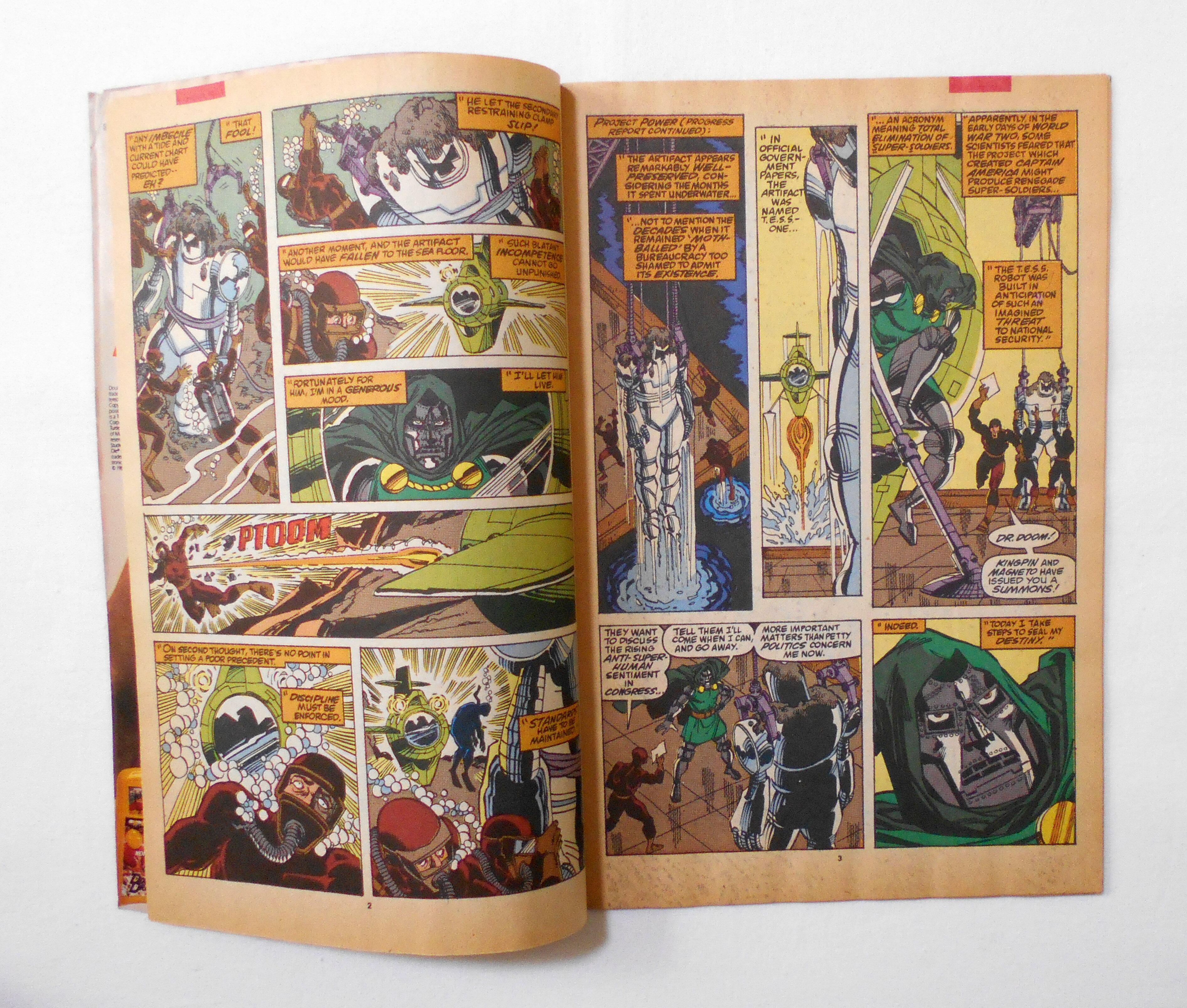コミックの上下端の方が一度湿気たようで、やや波打つシワになっており、他よりも多少黄ばんでいます。シミ汚れはありません。他、多少の擦れやシワ、黄ばみ、紙ジミ、角や端の傷みや微折れ等があり、経年に伴う使用感は否めませんが、1990年代の輸入中古コミックですので、その点を考慮頂ければ、普通程度~おおむねきれいな状態だと思います。中は多少黄ばんでいますが、目立った汚れやシミ等なく、読むのに支障はございません。新品同様の美品をお求めの方や、中古品にご理解が頂けない方にはお薦め出来ません。